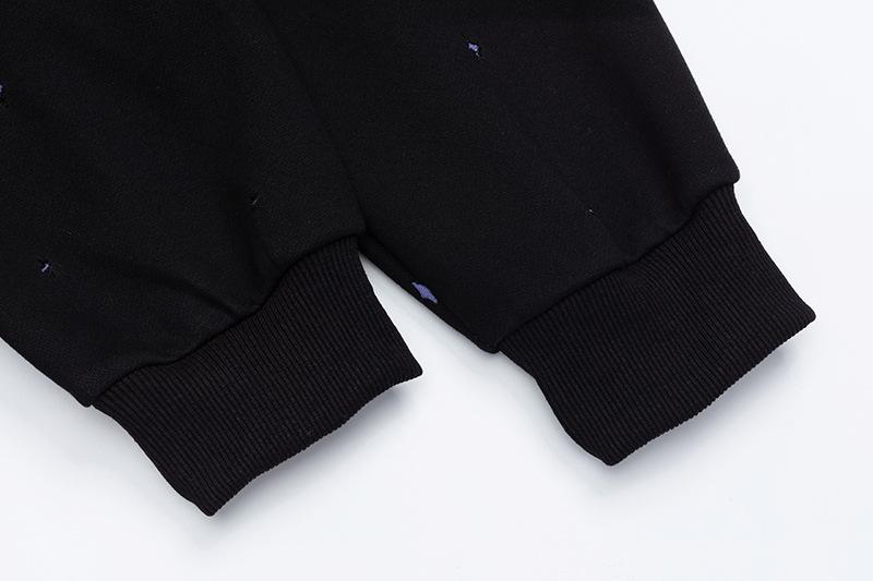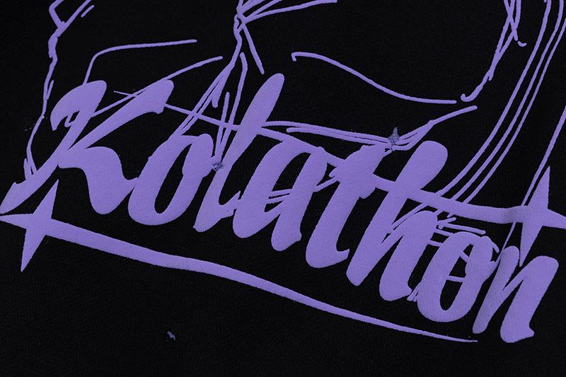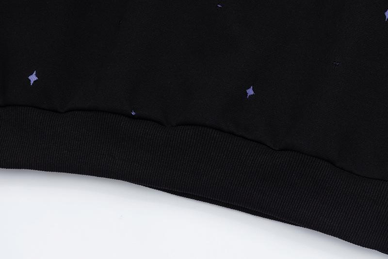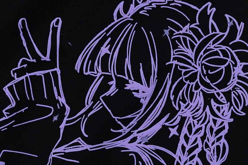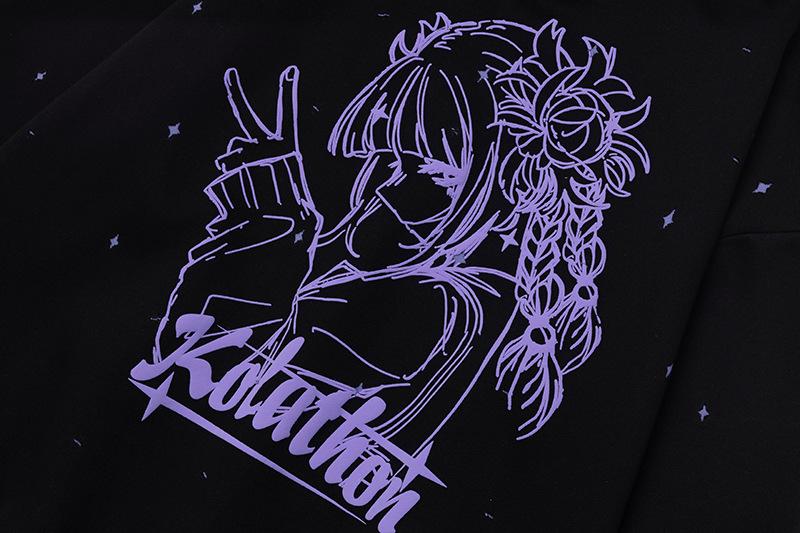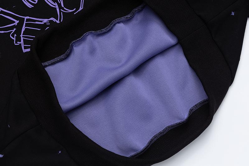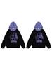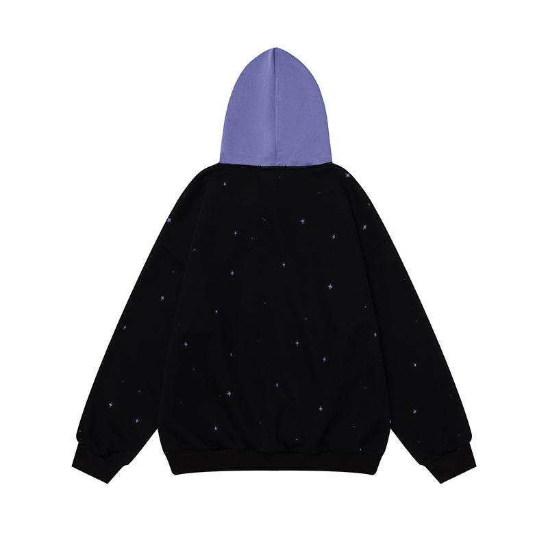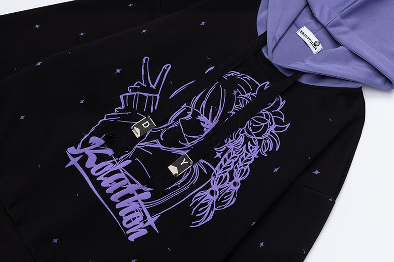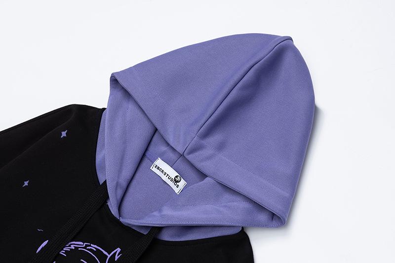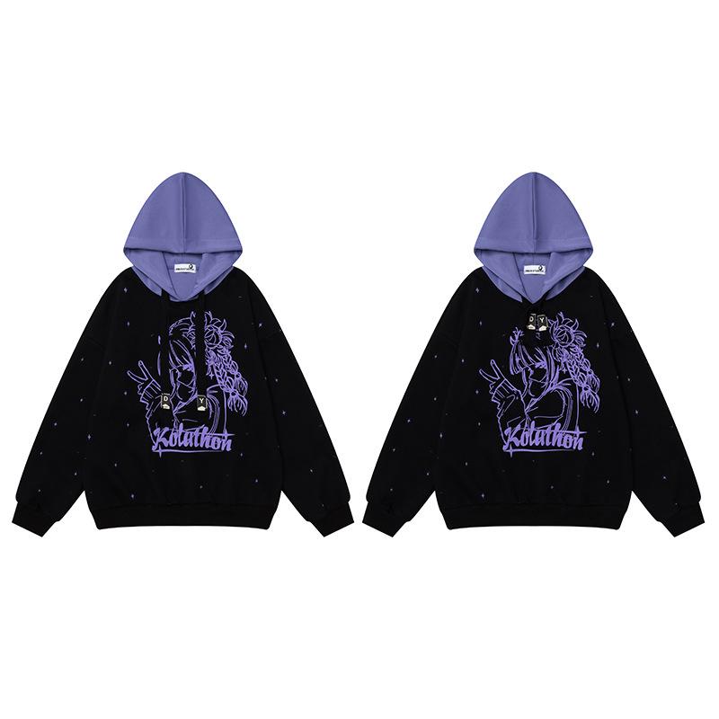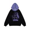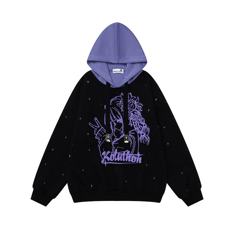 Sudadera con capucha con estampado estilo caricatura americano para mujer 2025 Otoño Nuevo Bloque de color Púrpura Negro Suelta Casual Sudadera con capucha