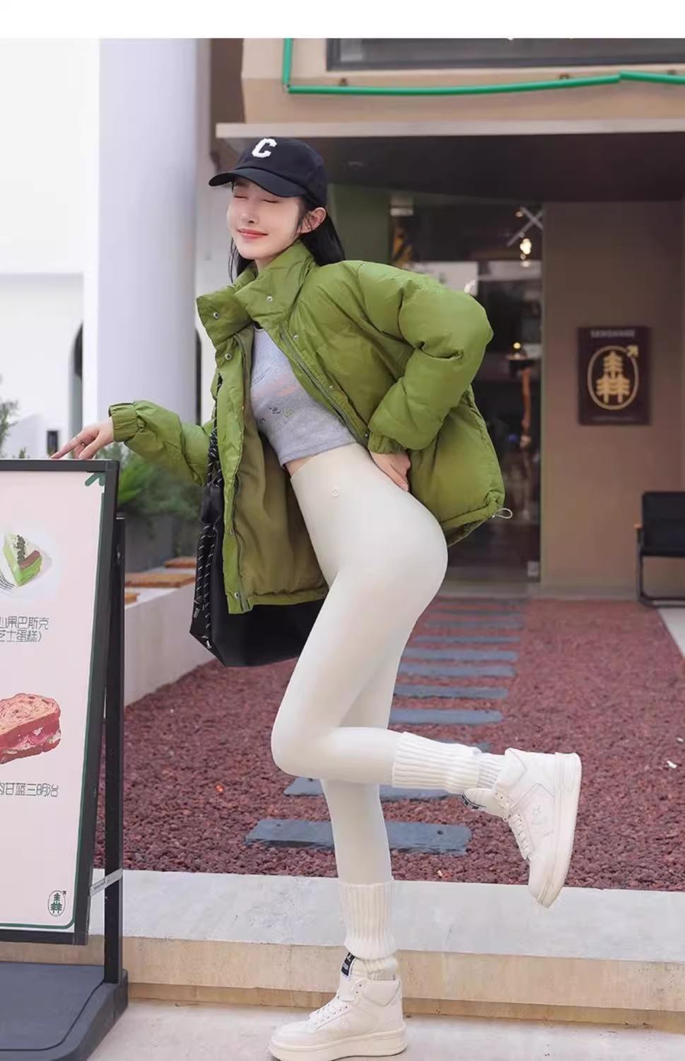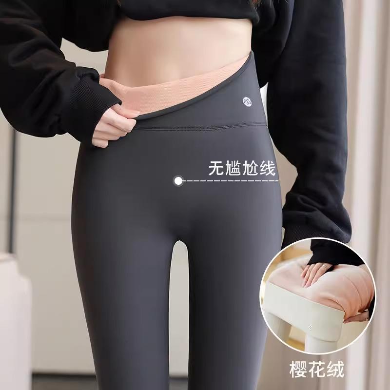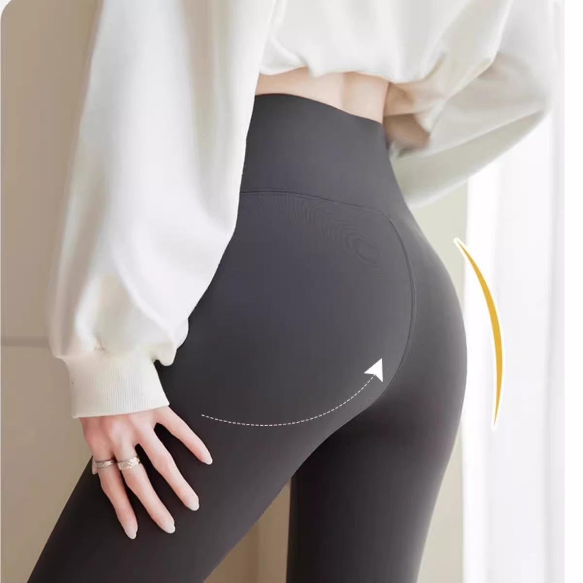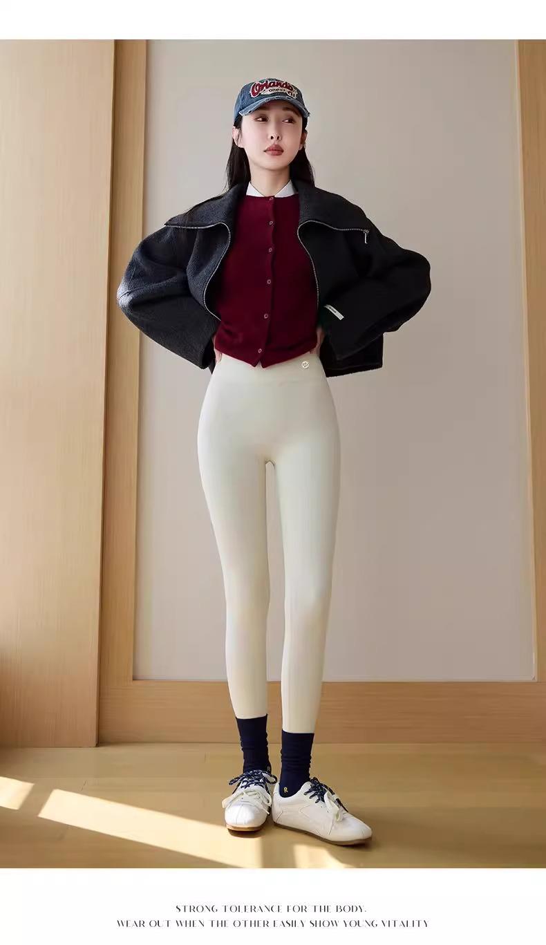 Pantalones de Tiburón Blanco Leche para Mujer Primavera y Otoño Nuevos Cintura Alta Elásticos Ajustados con Forro Polar Yoga Barbie Moldeadores de Piernas