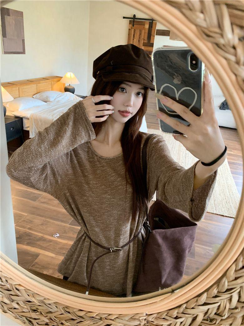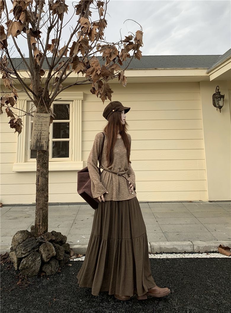 Brown top with belt [Flower Blossom Selection], Brown Half Skirt【Flower Duo Selected】, Brown top with belt + b...
