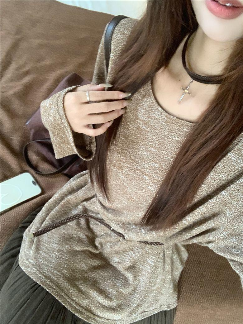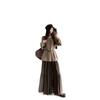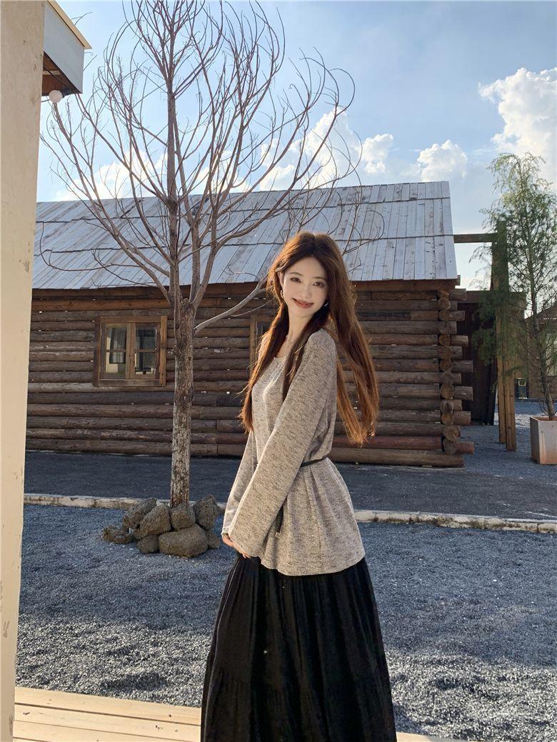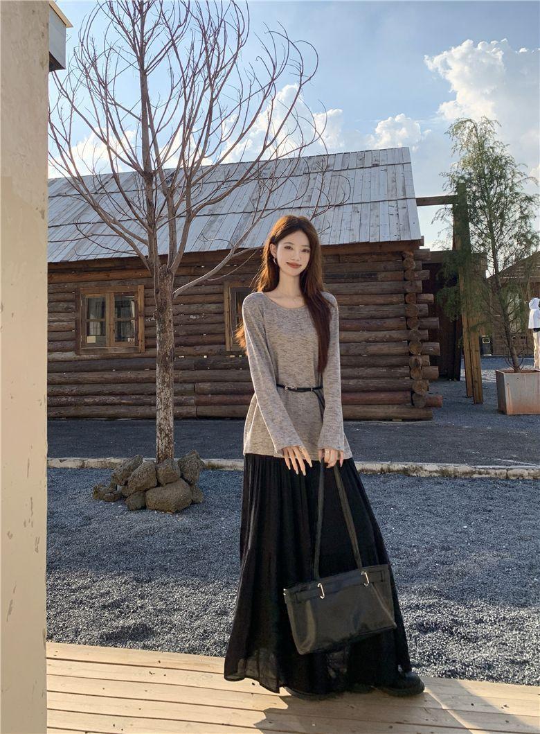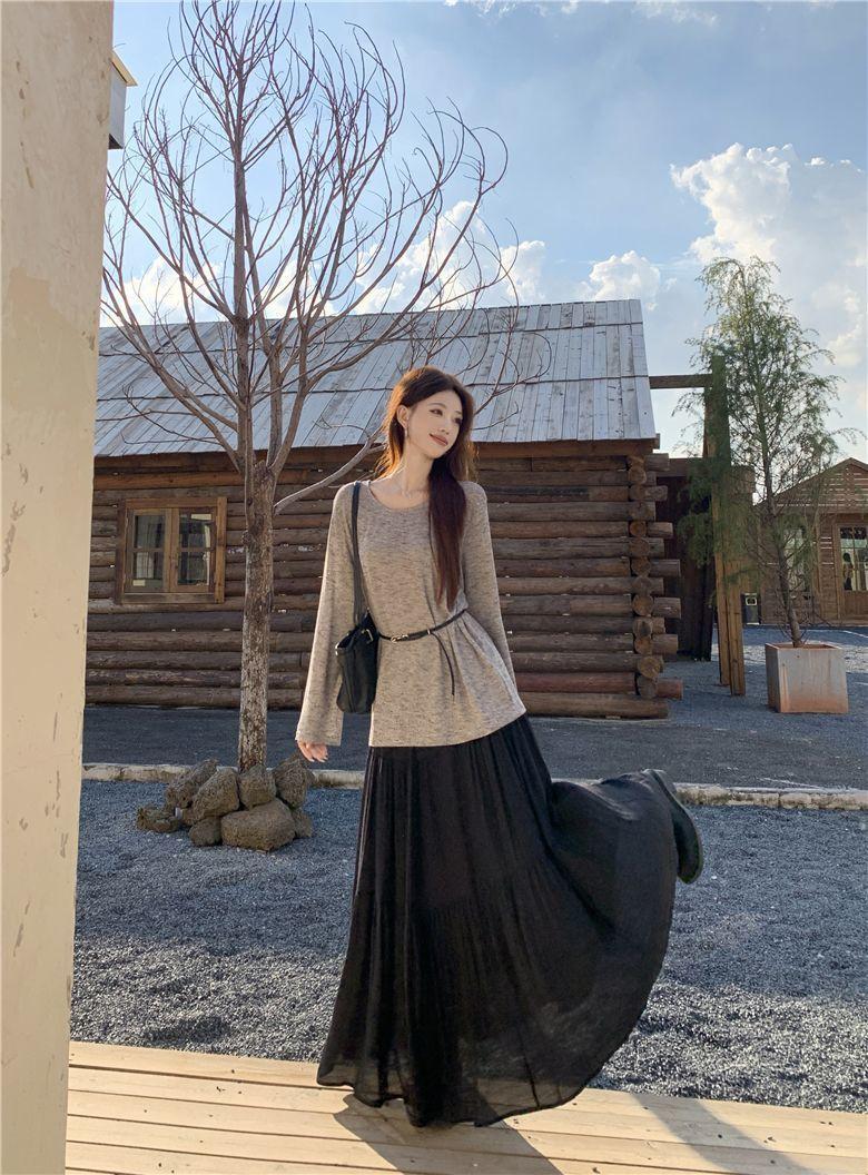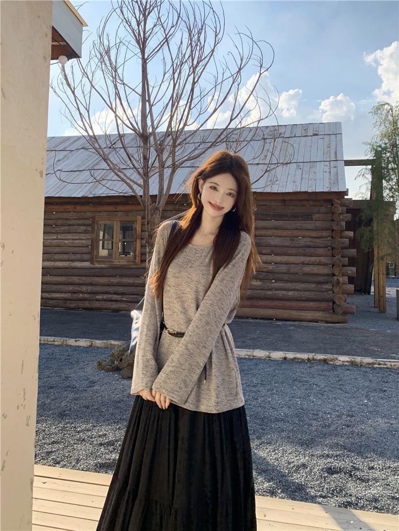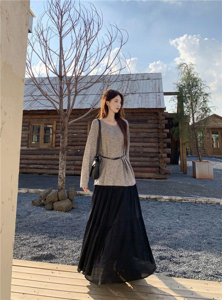 Conjunto de Ropa Maelard Talla Grande Mujer Otoño Estilo Holgazán Top Manga Larga MM Gordo Falda Midi Cintura Alta Conjunto de Dos Piezas
