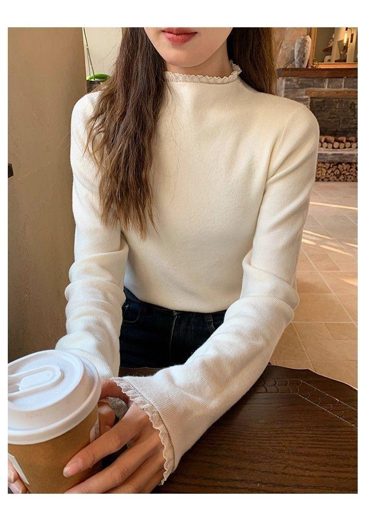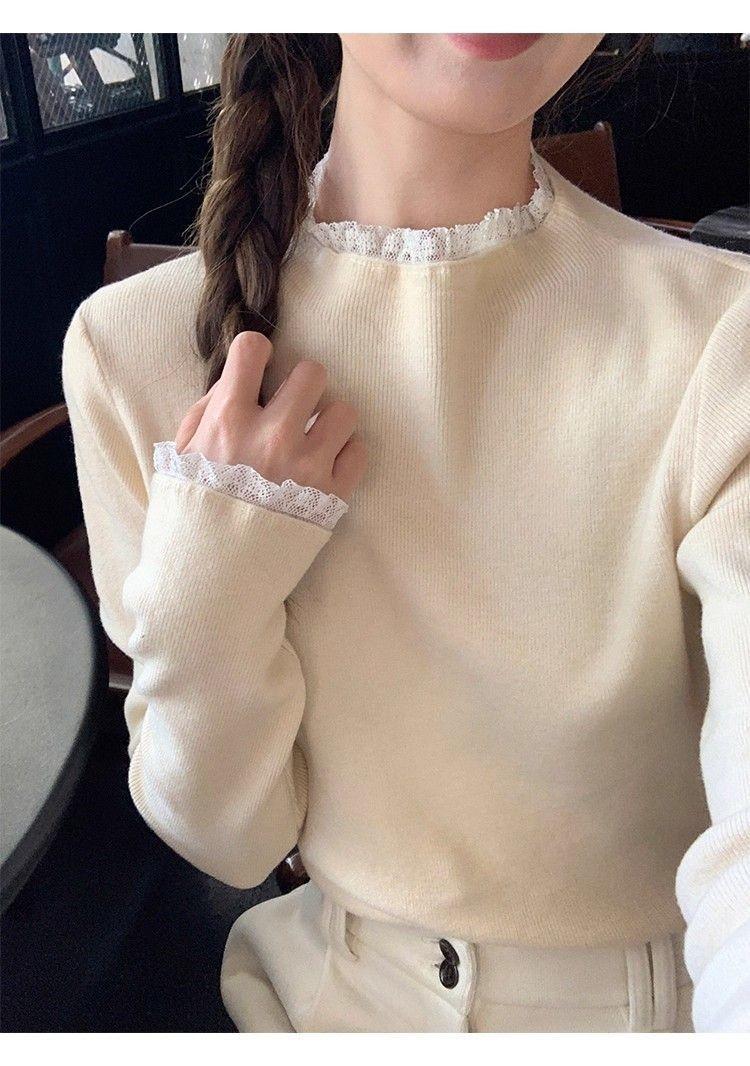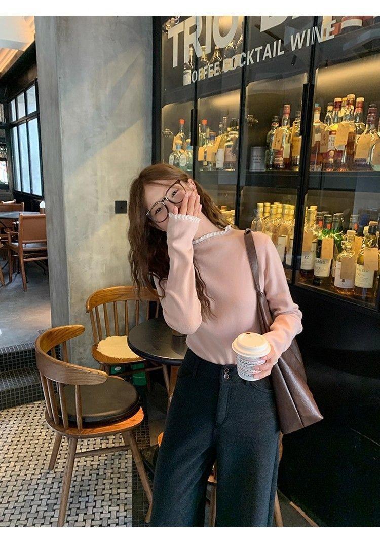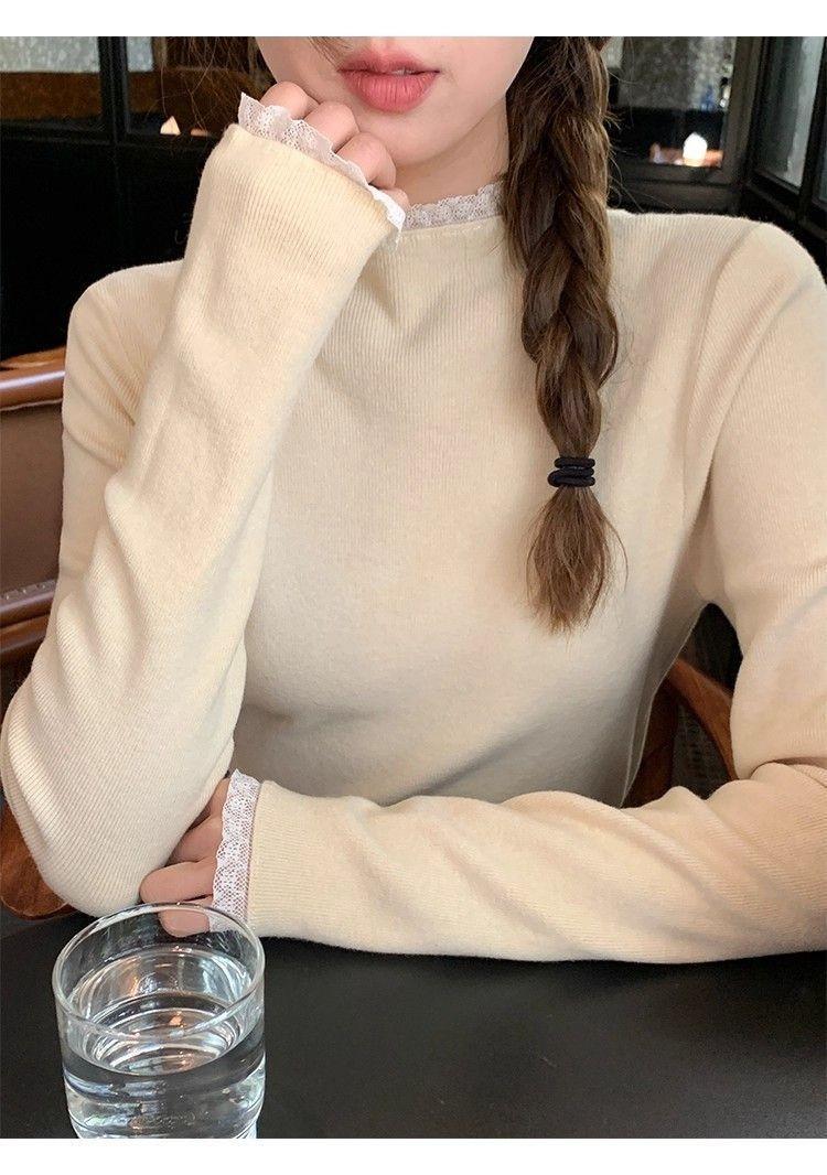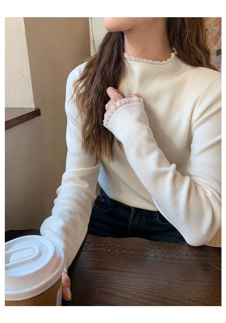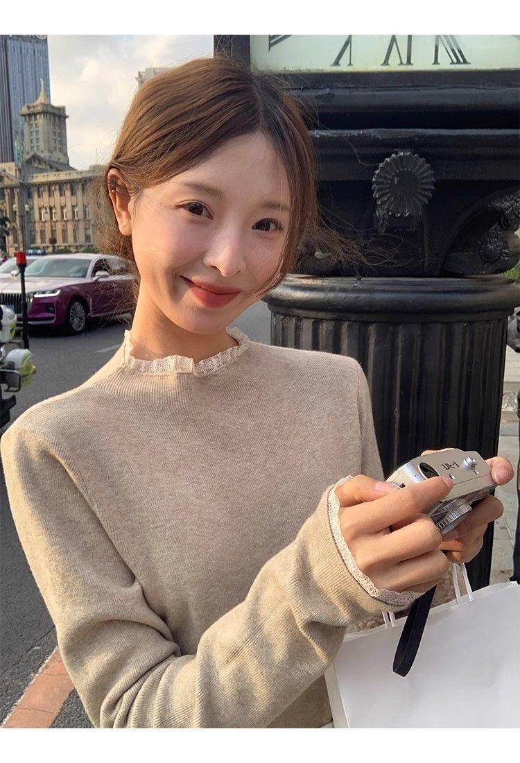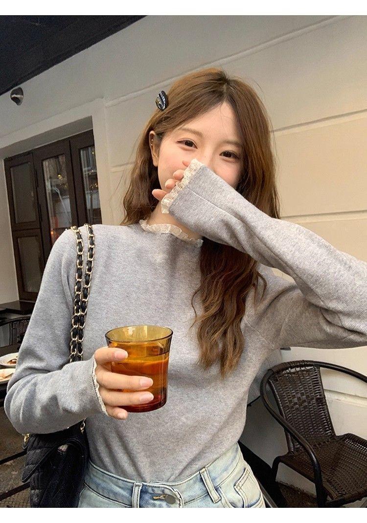 Camisa básica de punto con cuello de encaje suave y versátil estilo ins coreano 2025 otoño nuevo temperamento adelgazante top interior
