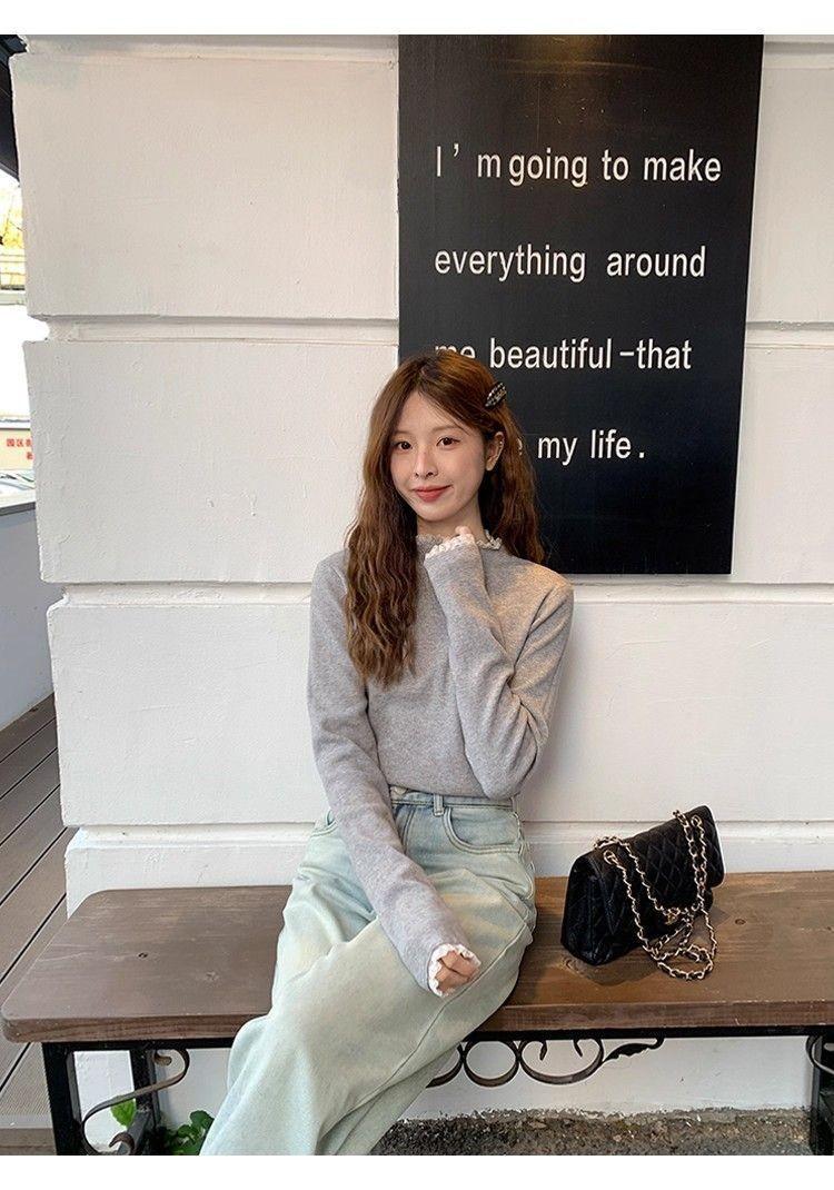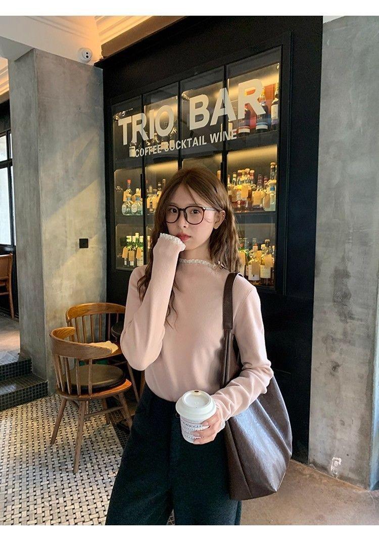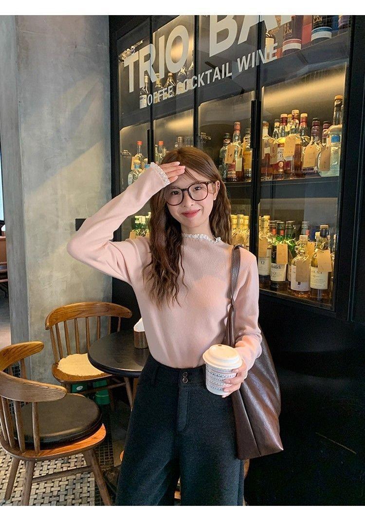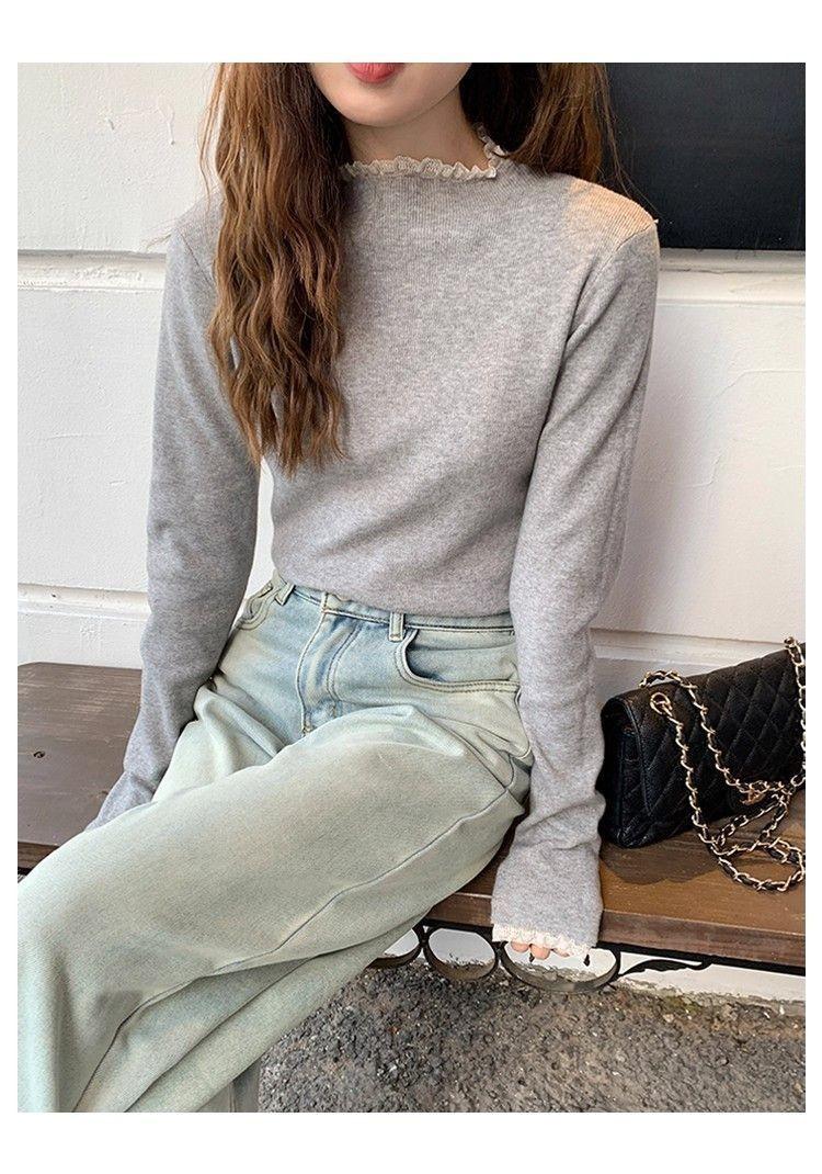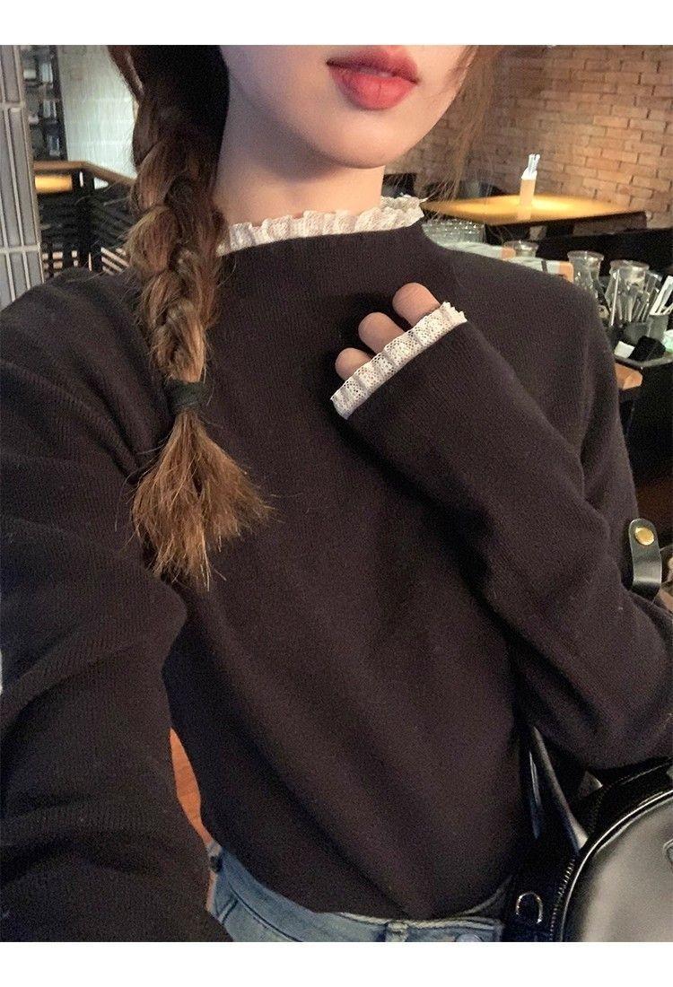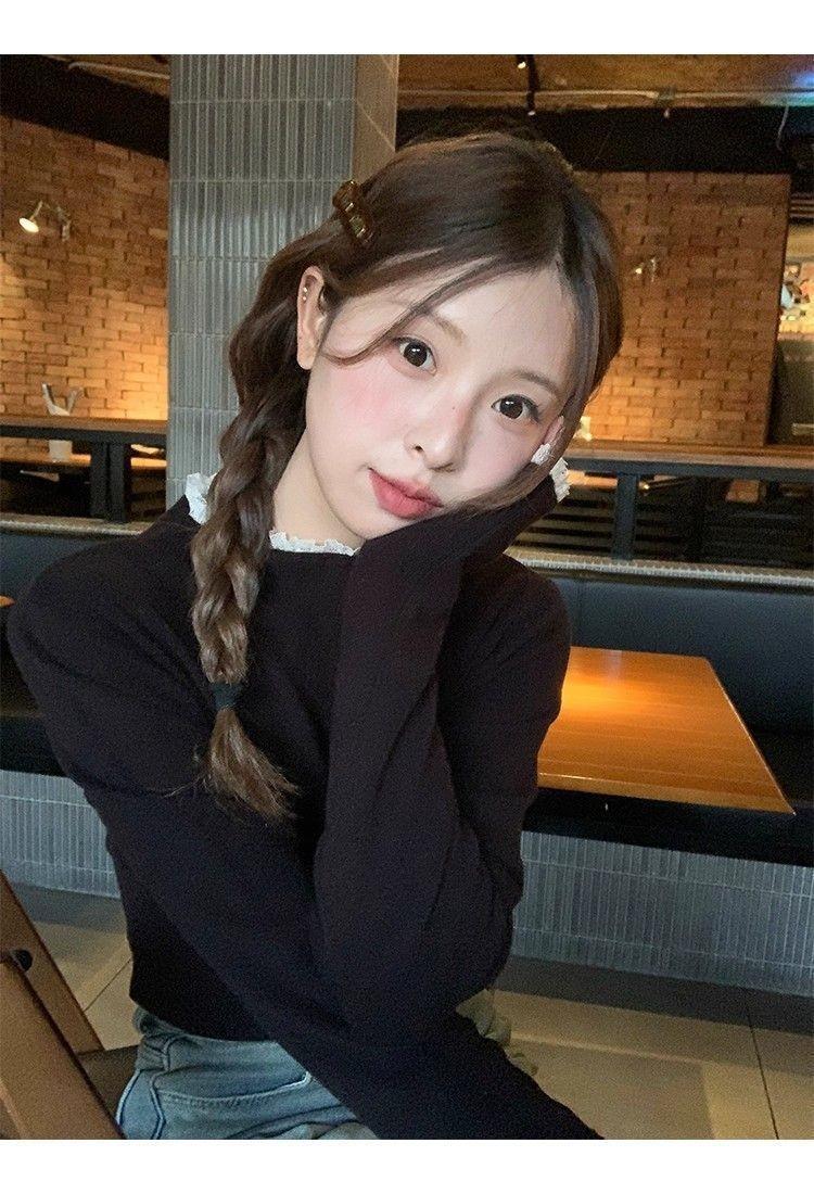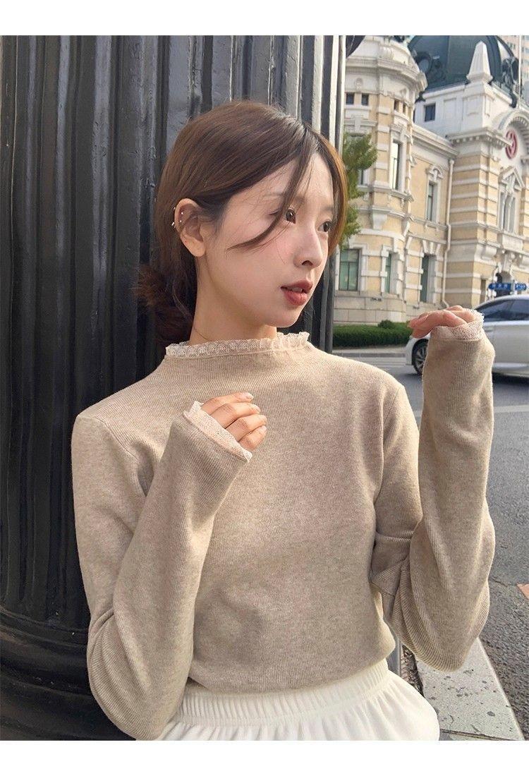 Camisa básica de punto con cuello de encaje suave y versátil estilo ins coreano 2025 otoño nuevo temperamento adelgazante top interior