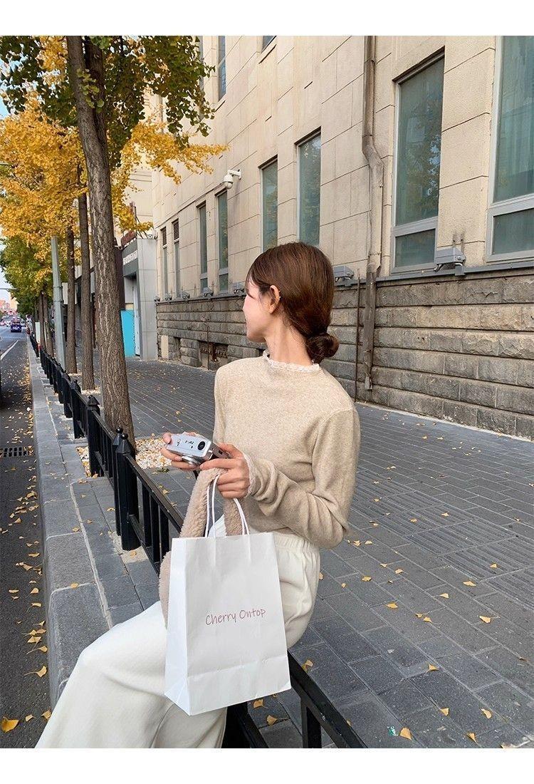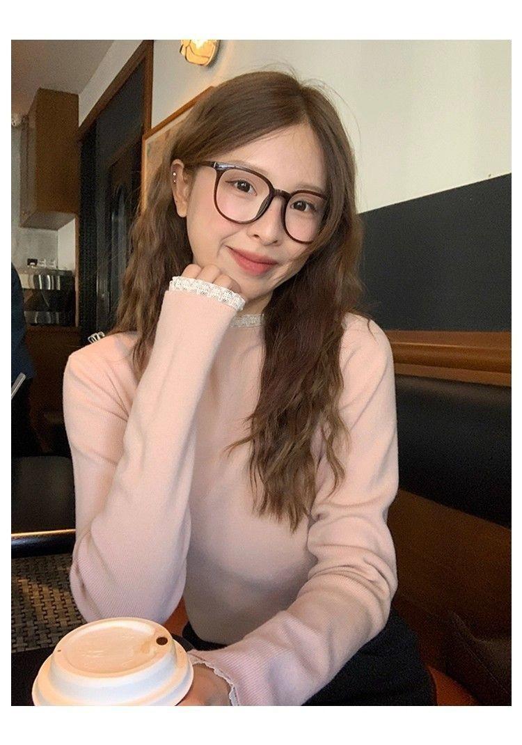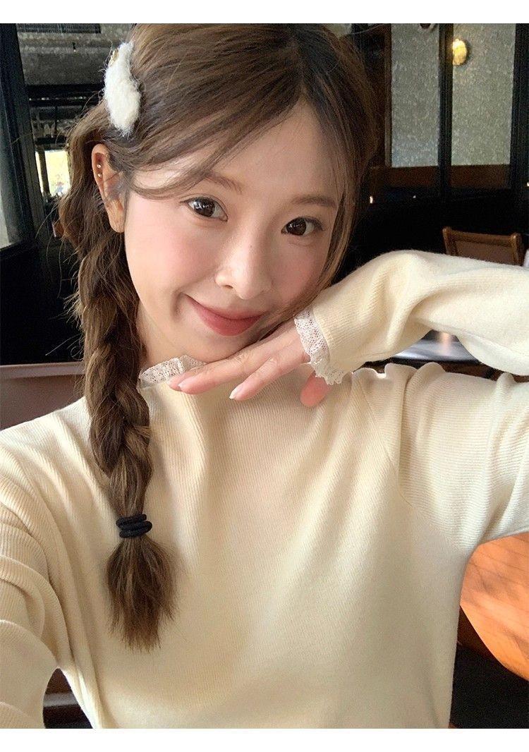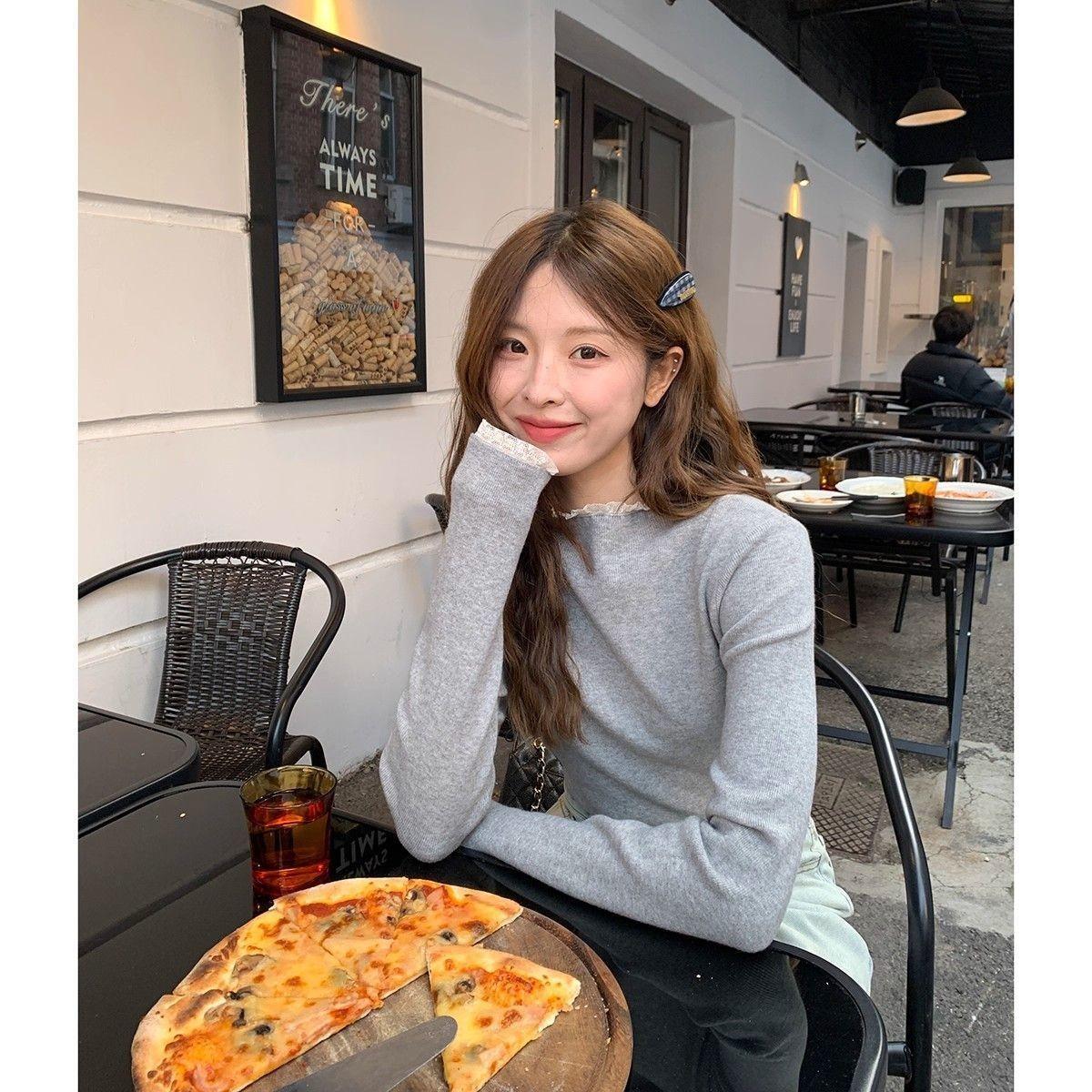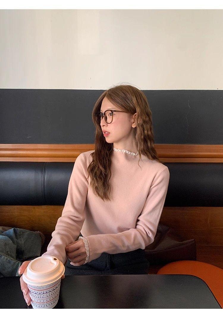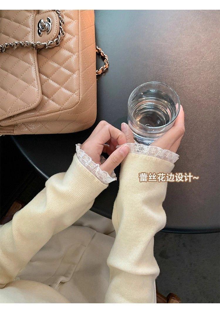 Camisa básica de punto con cuello de encaje suave y versátil estilo ins coreano 2025 otoño nuevo temperamento adelgazante top interior
