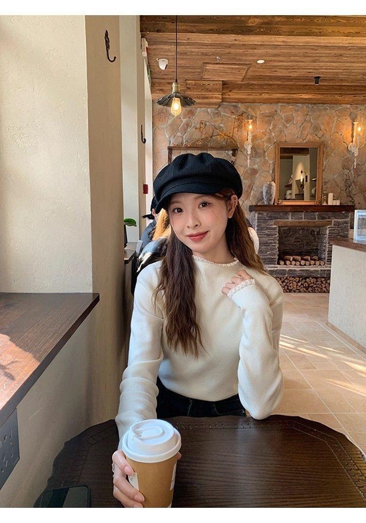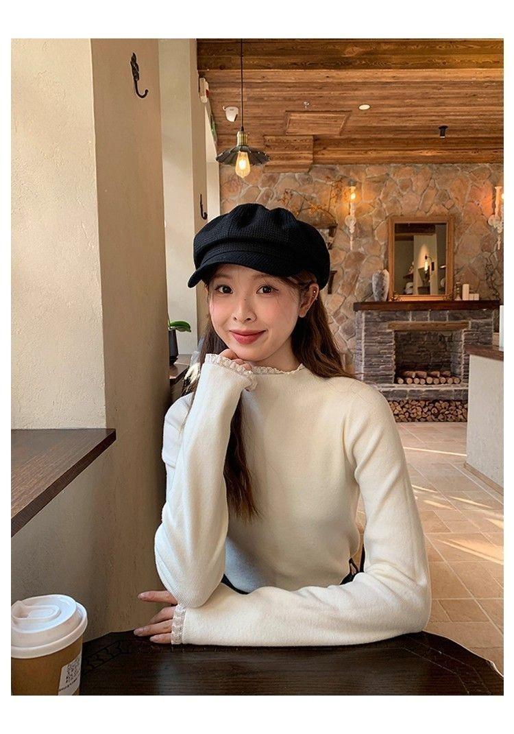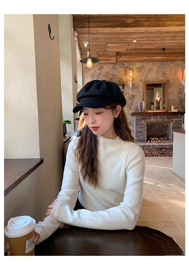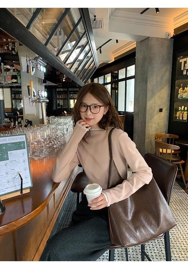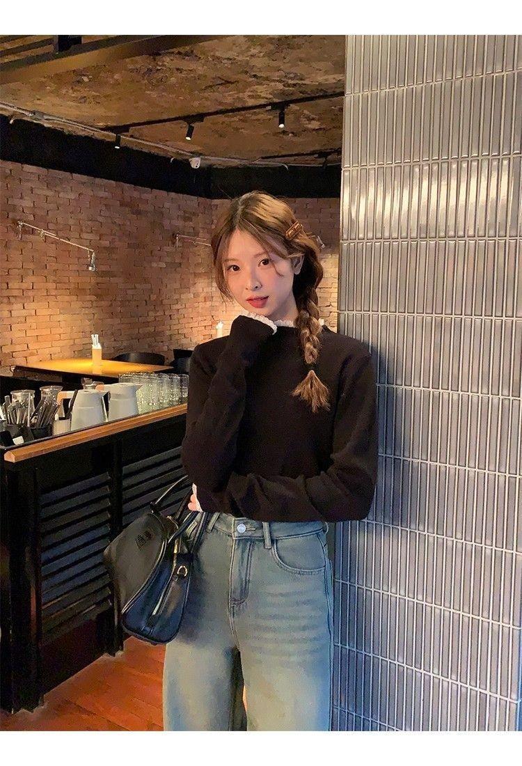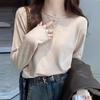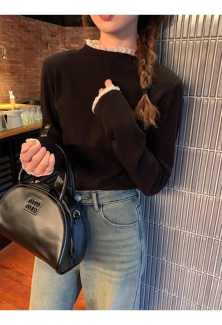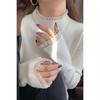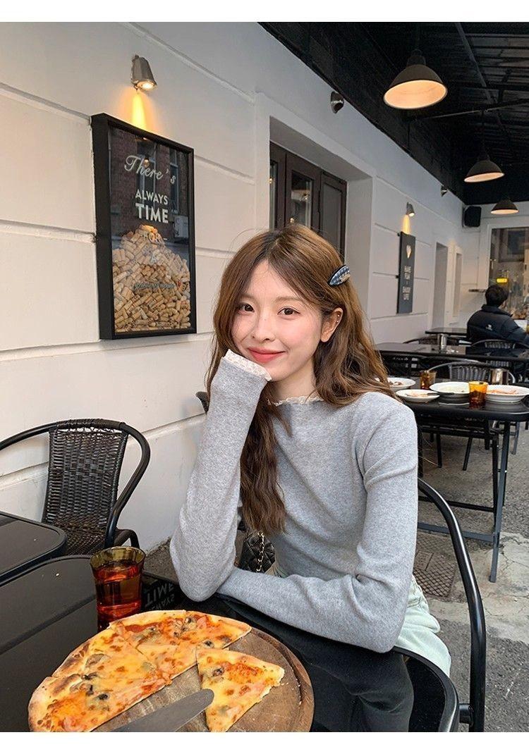 Camisa básica de punto con cuello de encaje suave y versátil estilo ins coreano 2025 otoño nuevo temperamento adelgazante top interior