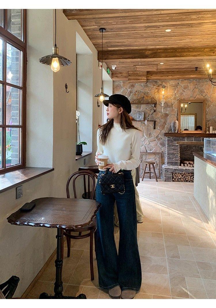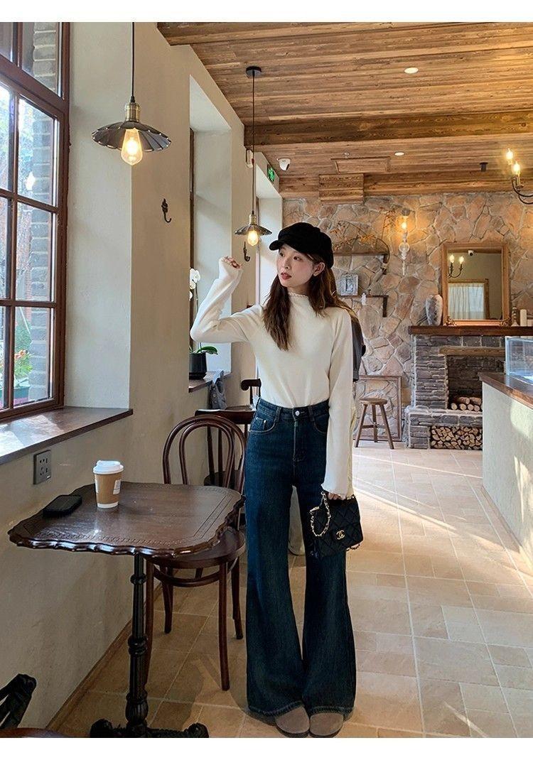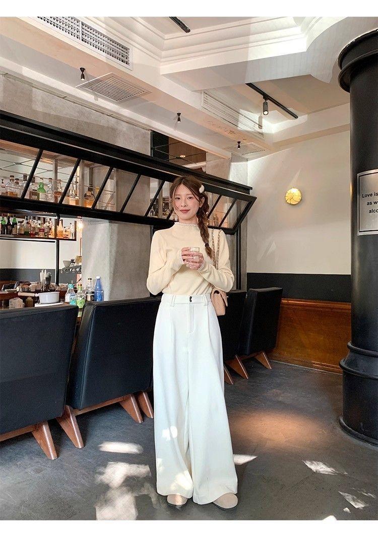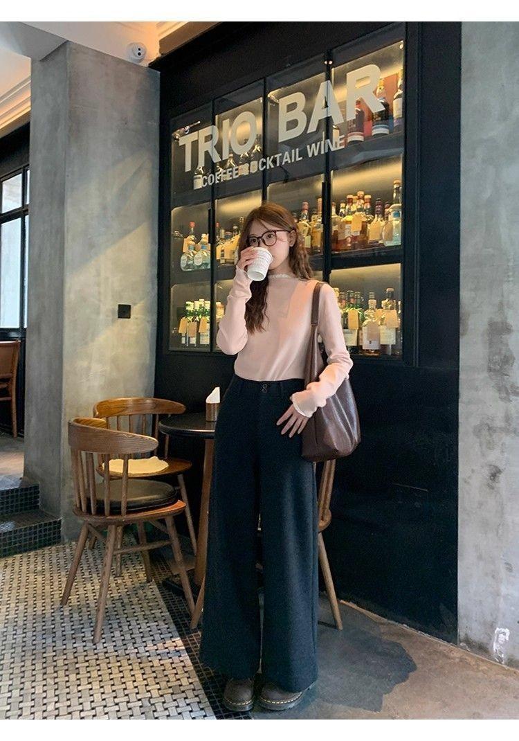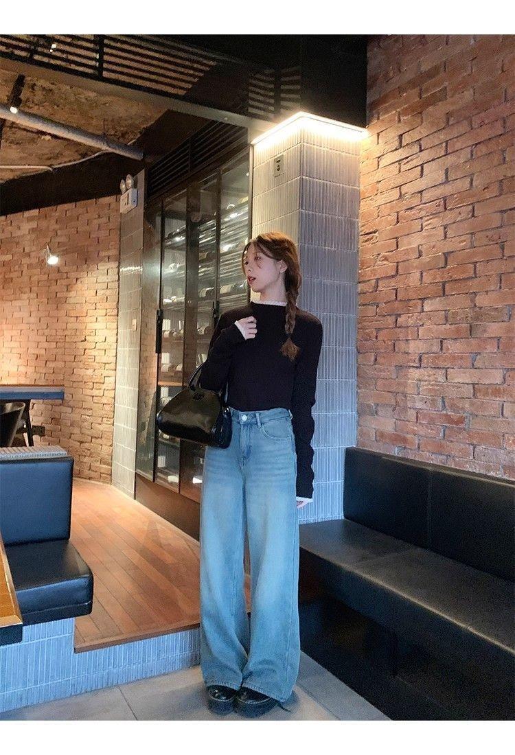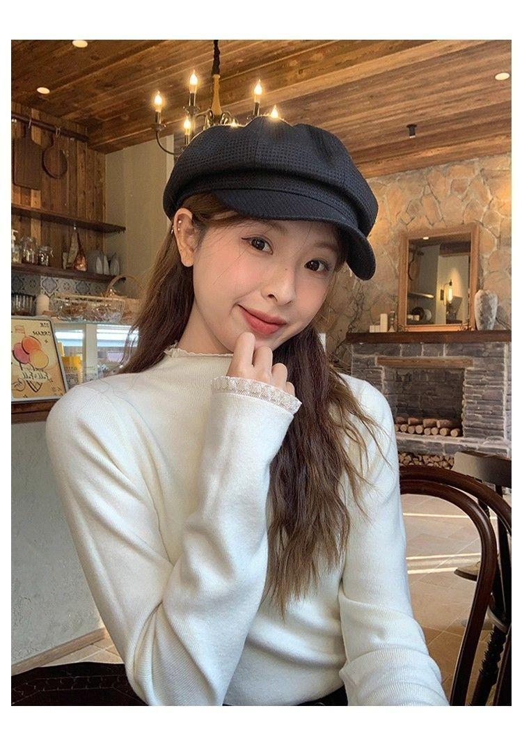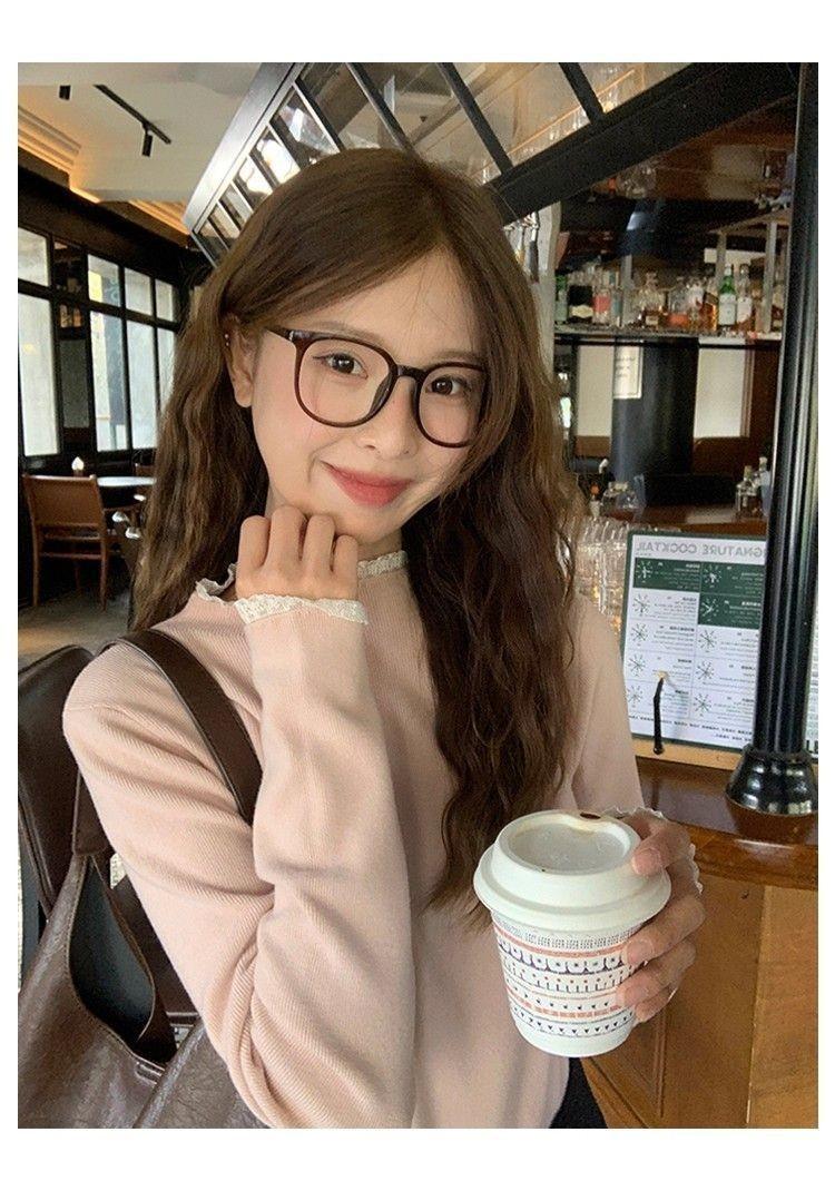 Camisa básica de punto con cuello de encaje suave y versátil estilo ins coreano 2025 otoño nuevo temperamento adelgazante top interior