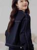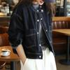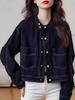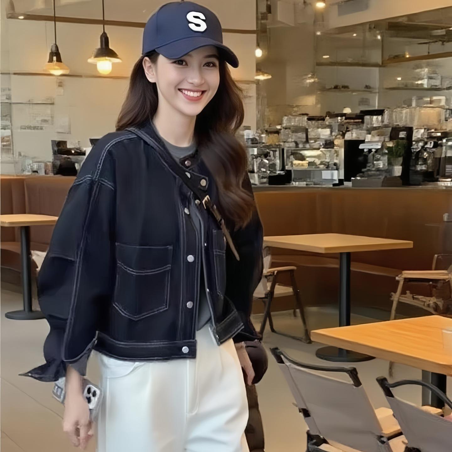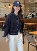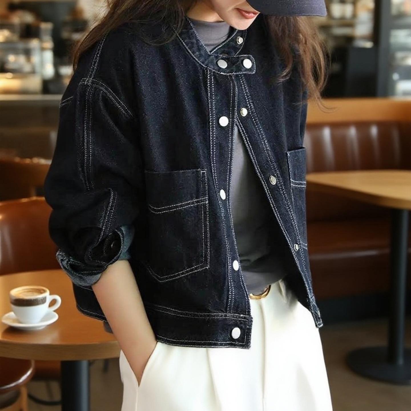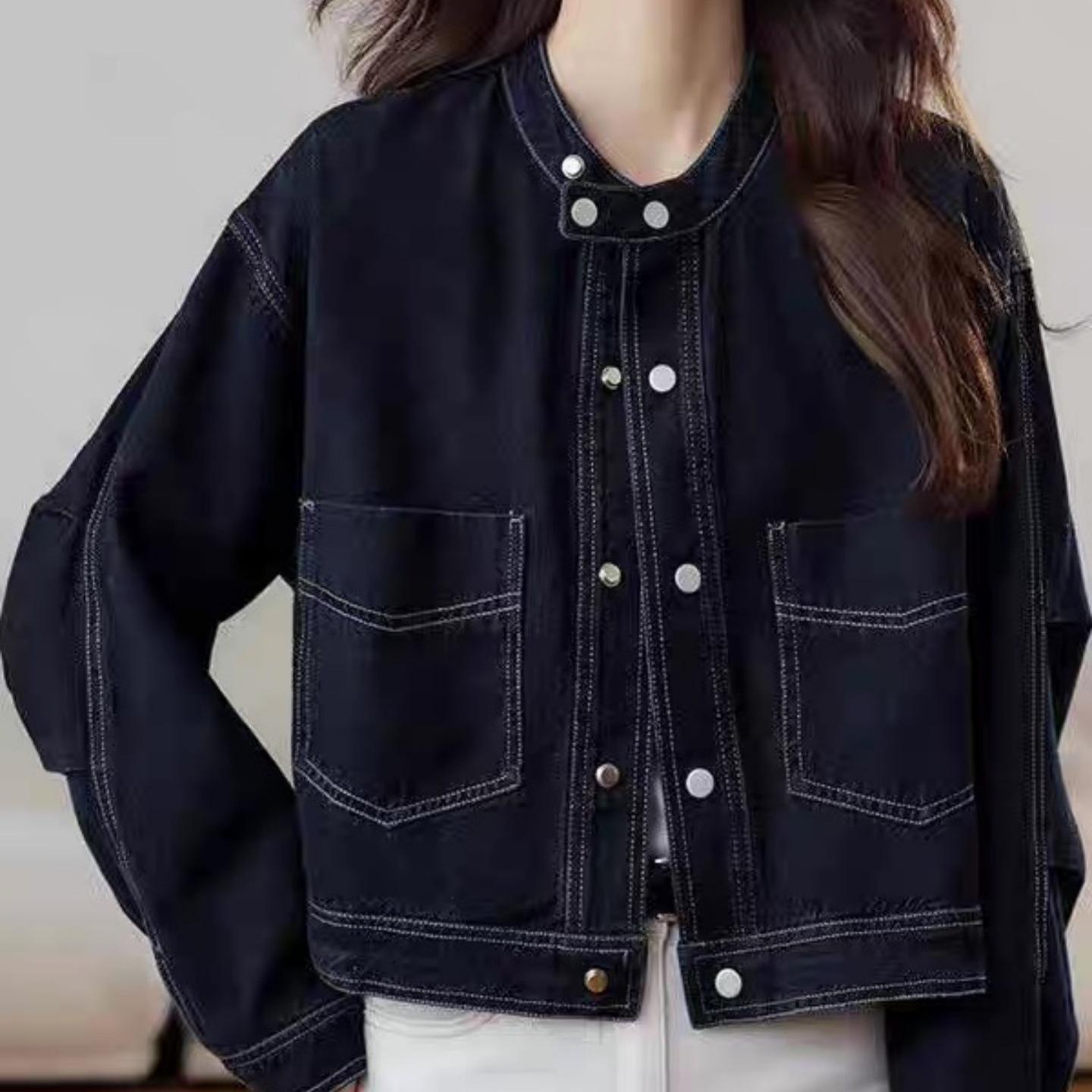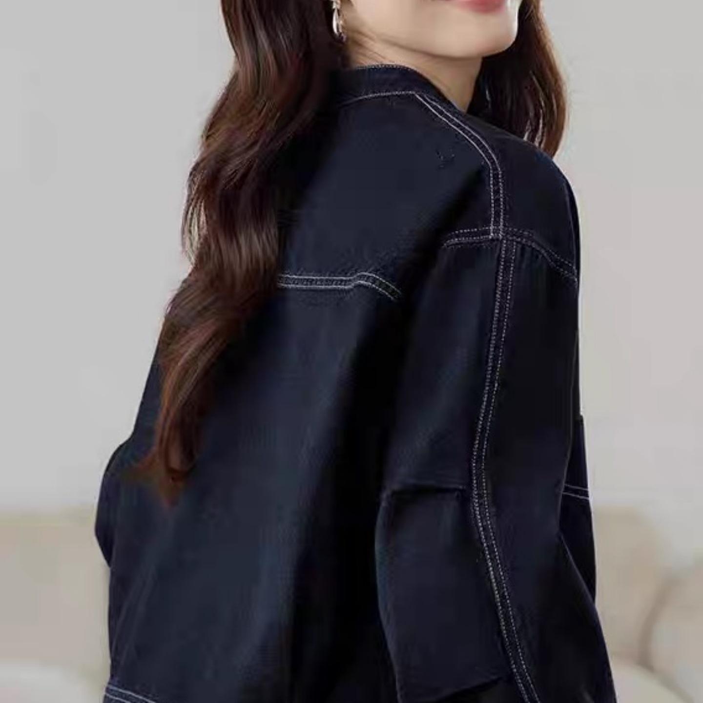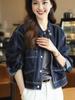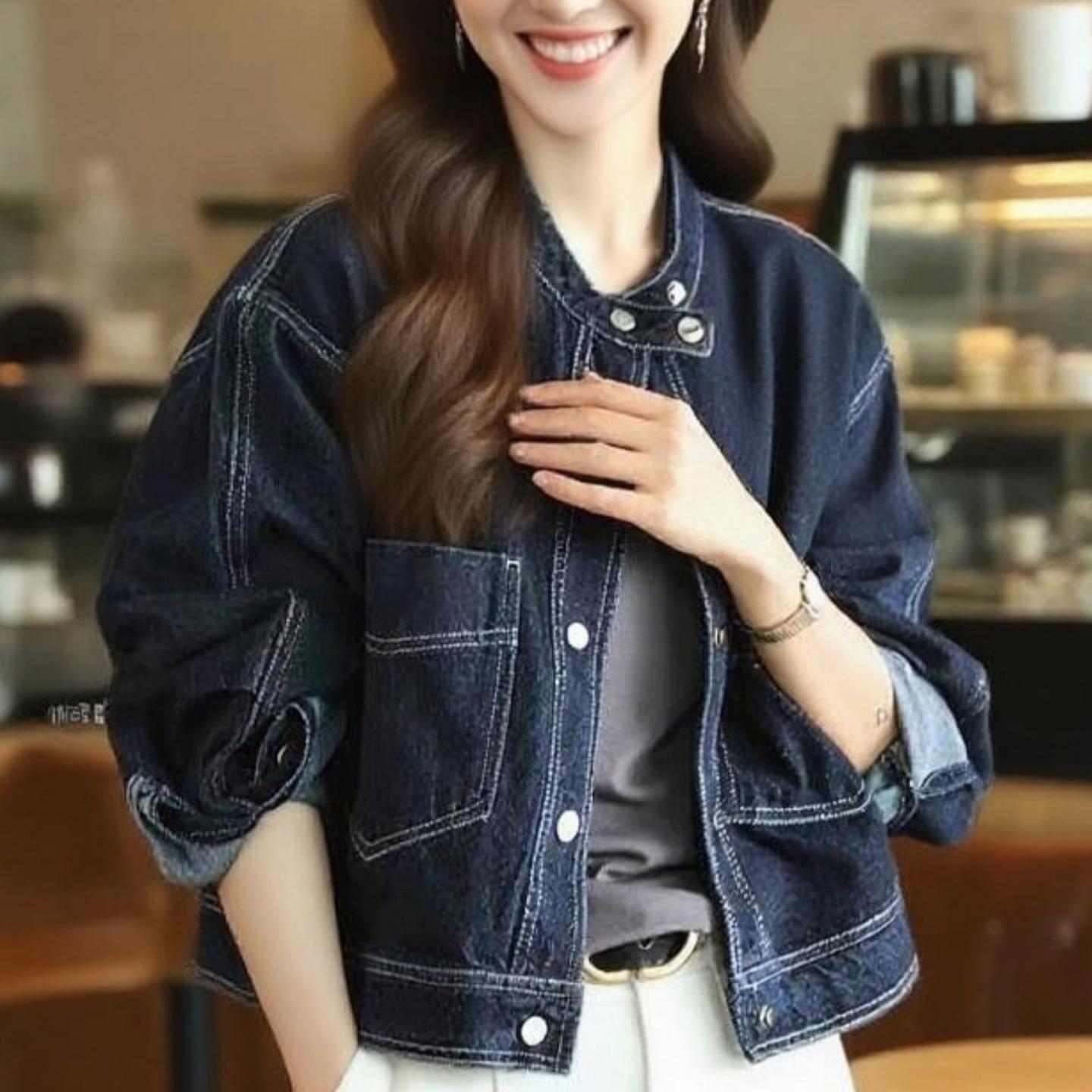 Chamarra de mezclilla azul oscuro para mujer nueva otoño/invierno 2025 estilo coreano retro holgada petite top 7596