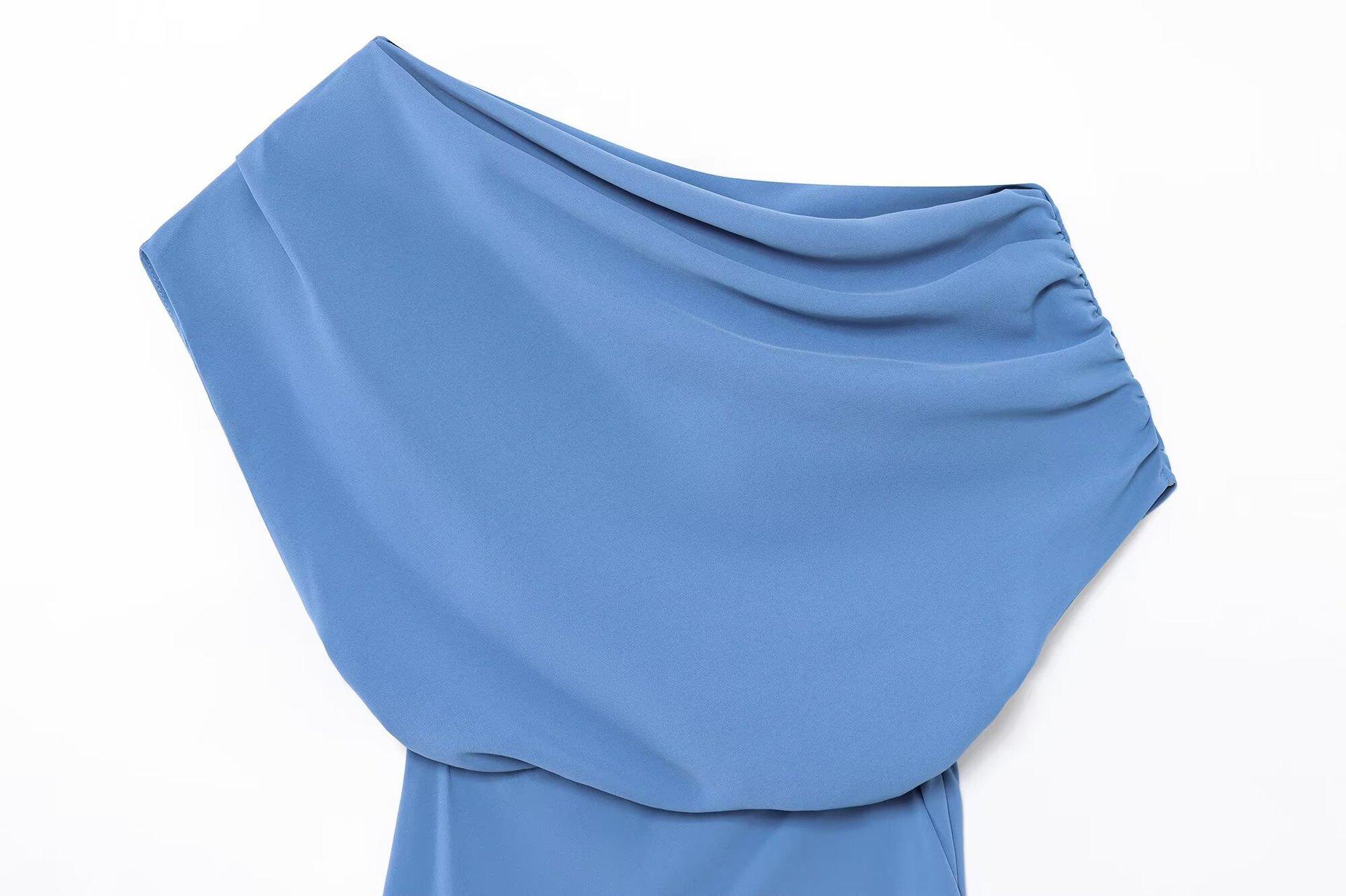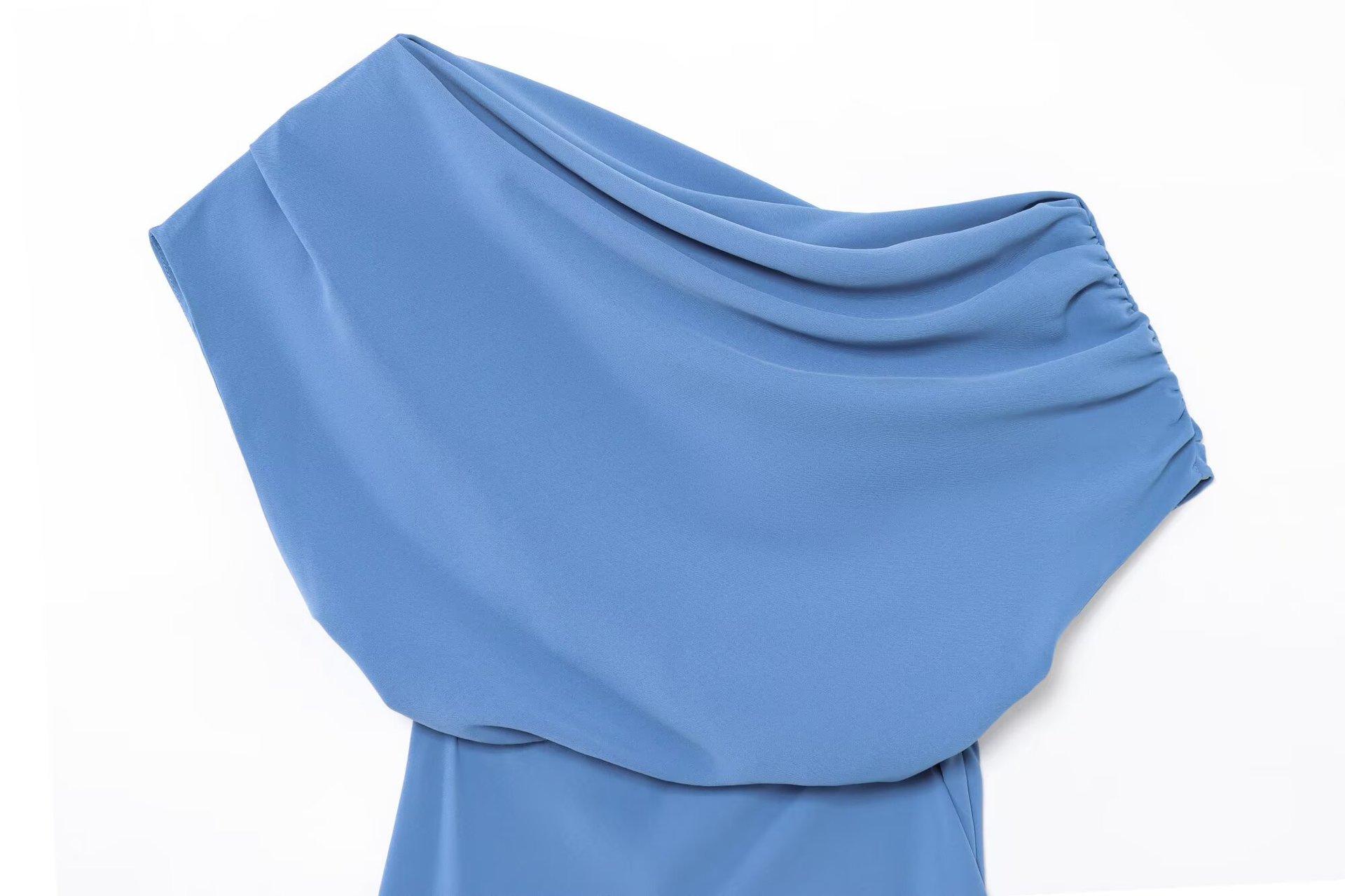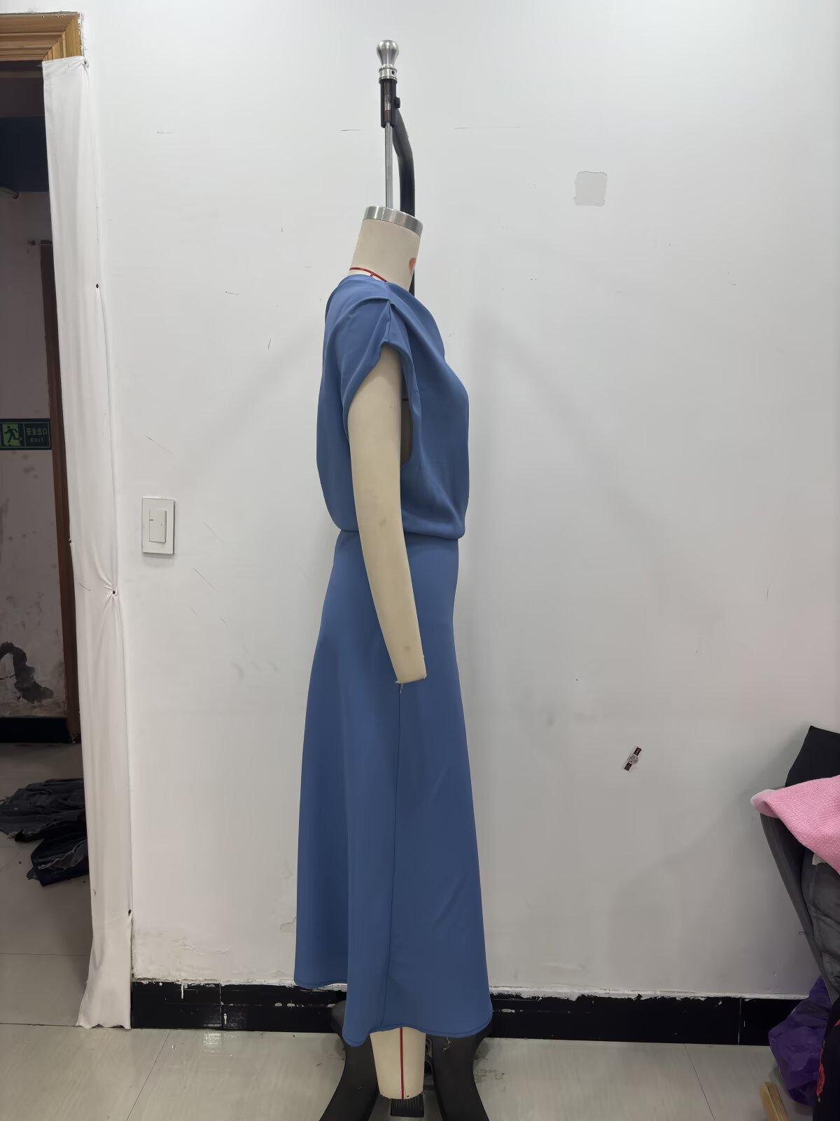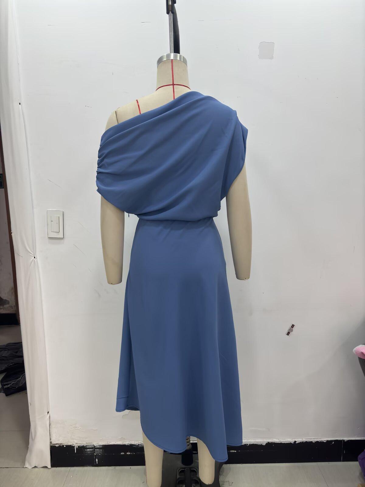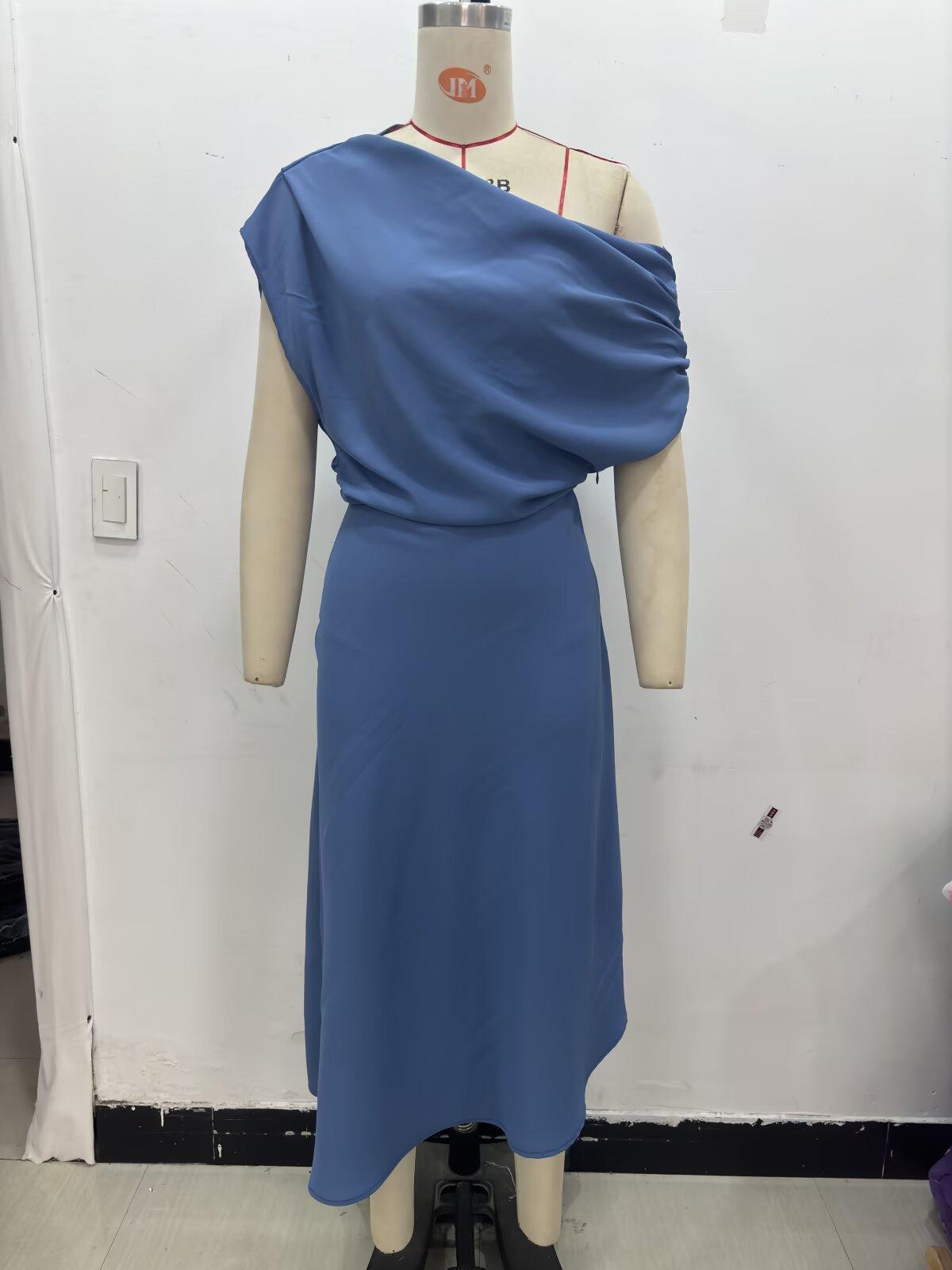 Estilo Europeo y Americano Transfronterizo Aliexpress Comercio Exterior Ropa de Mujer Zr Asimétrico Hombro Inclinado Cintura Falda Larga Simple Ropa Elegante