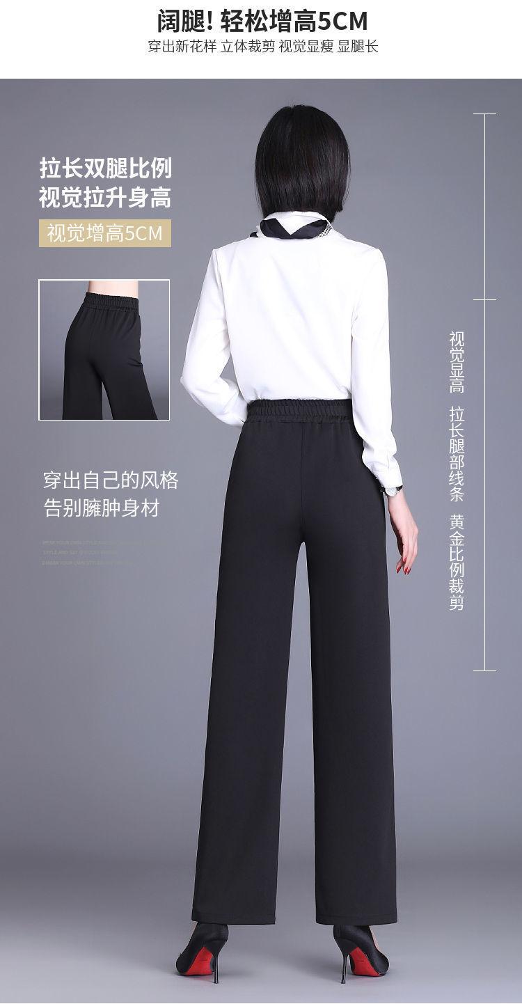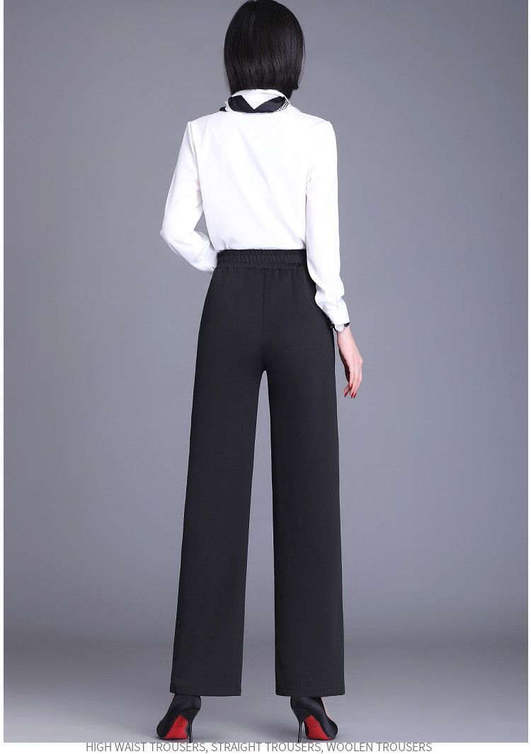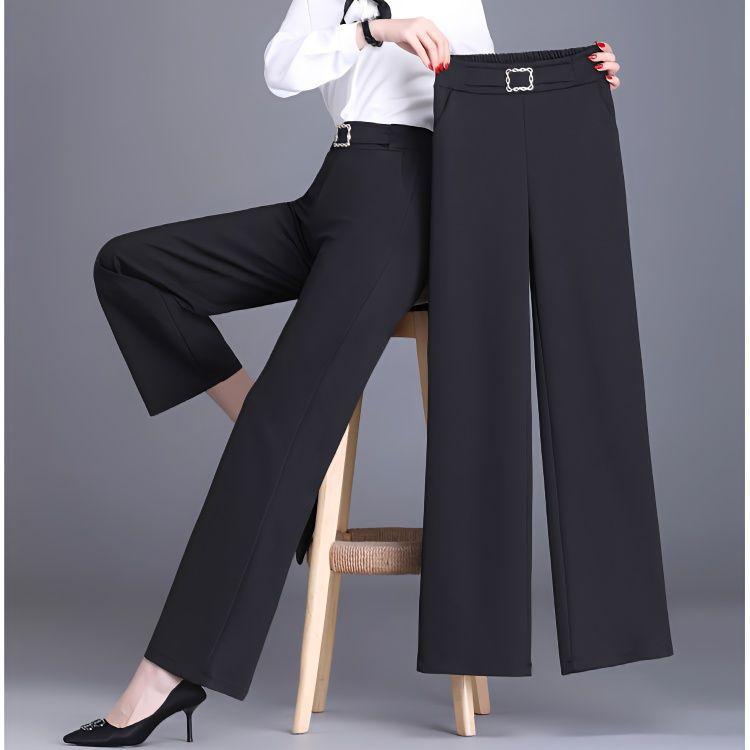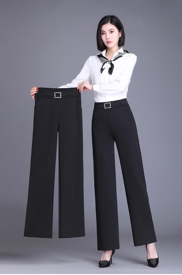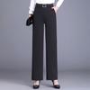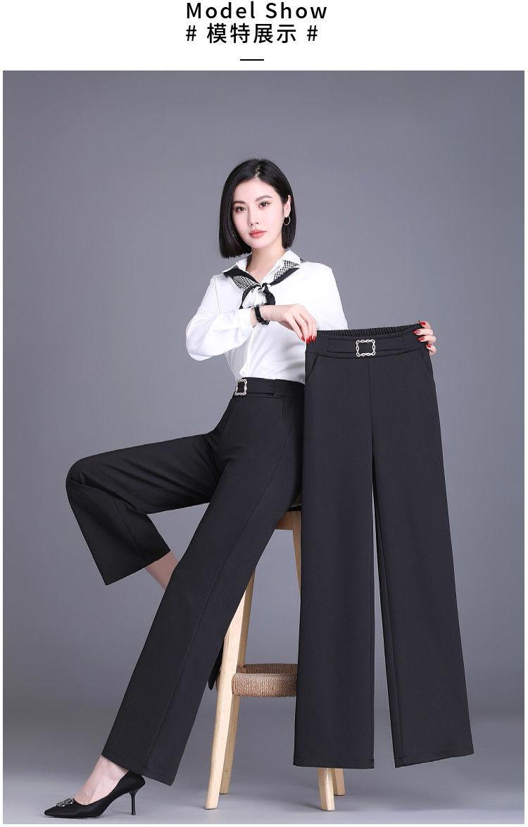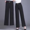 Traje Nuevo de Verano Pantalones de Pierna Ancha Cintura Alta Recortados Pantalones de Mujer Caída de Alta Gama Adelgazantes Pierna Recta Negro