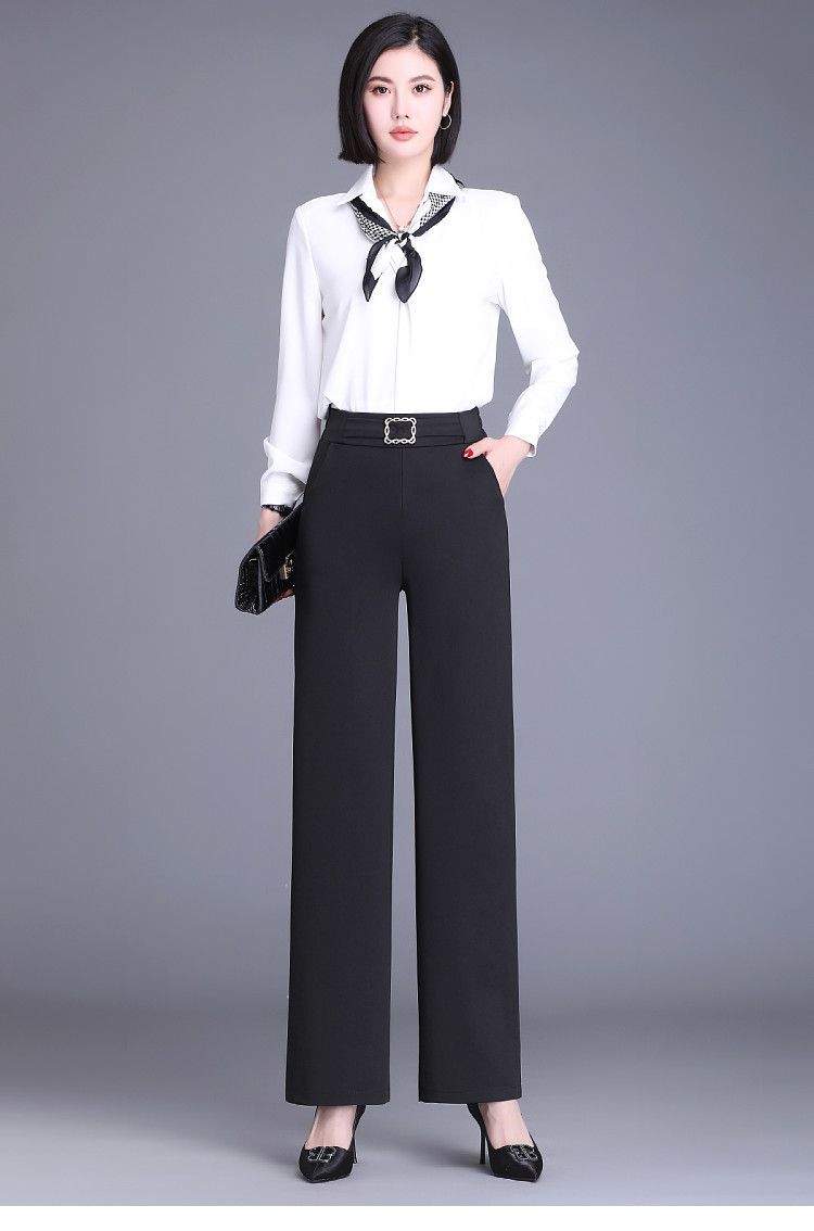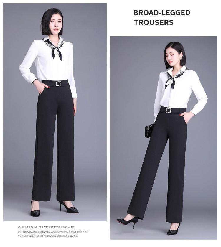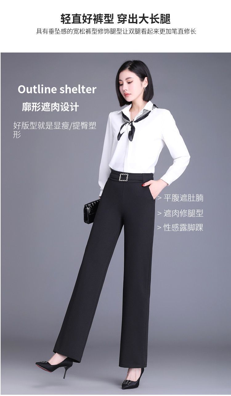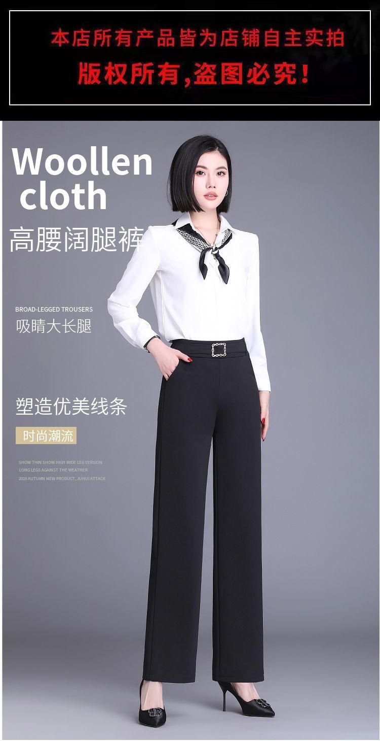 Traje Nuevo de Verano Pantalones de Pierna Ancha Cintura Alta Recortados Pantalones de Mujer Caída de Alta Gama Adelgazantes Pierna Recta Negro