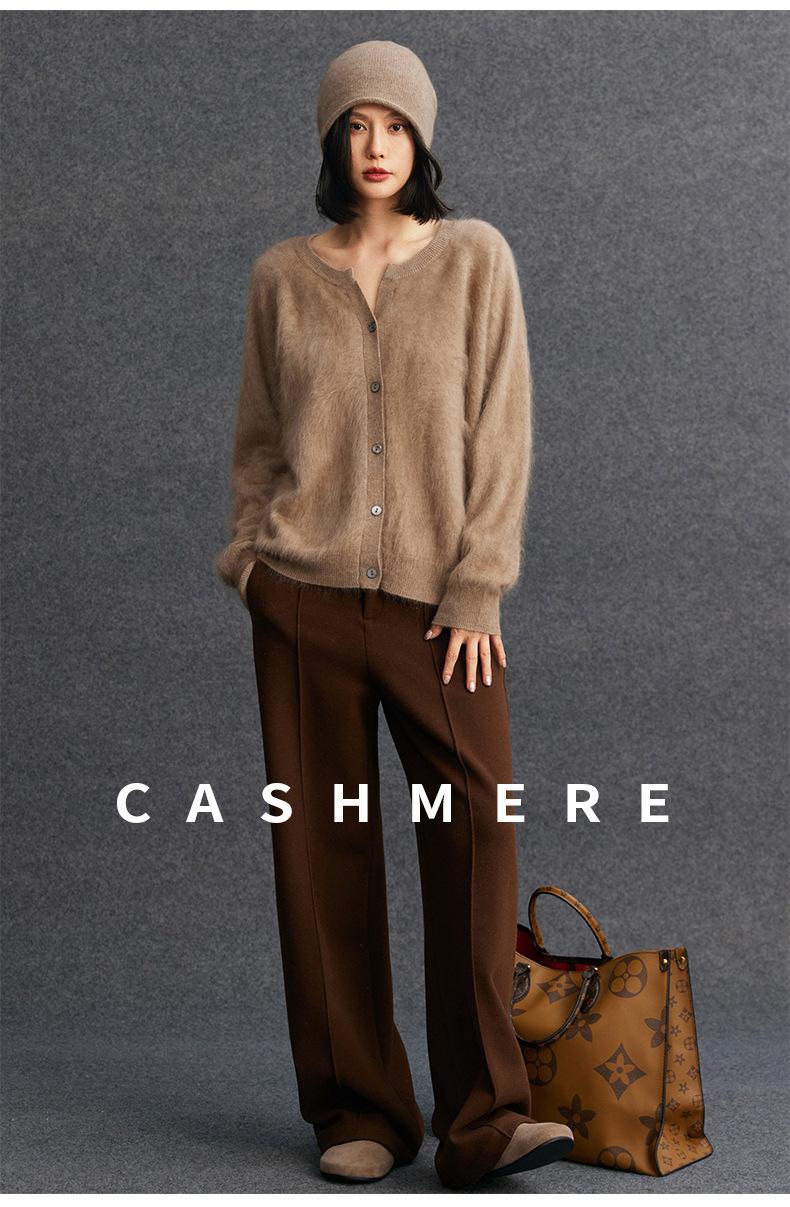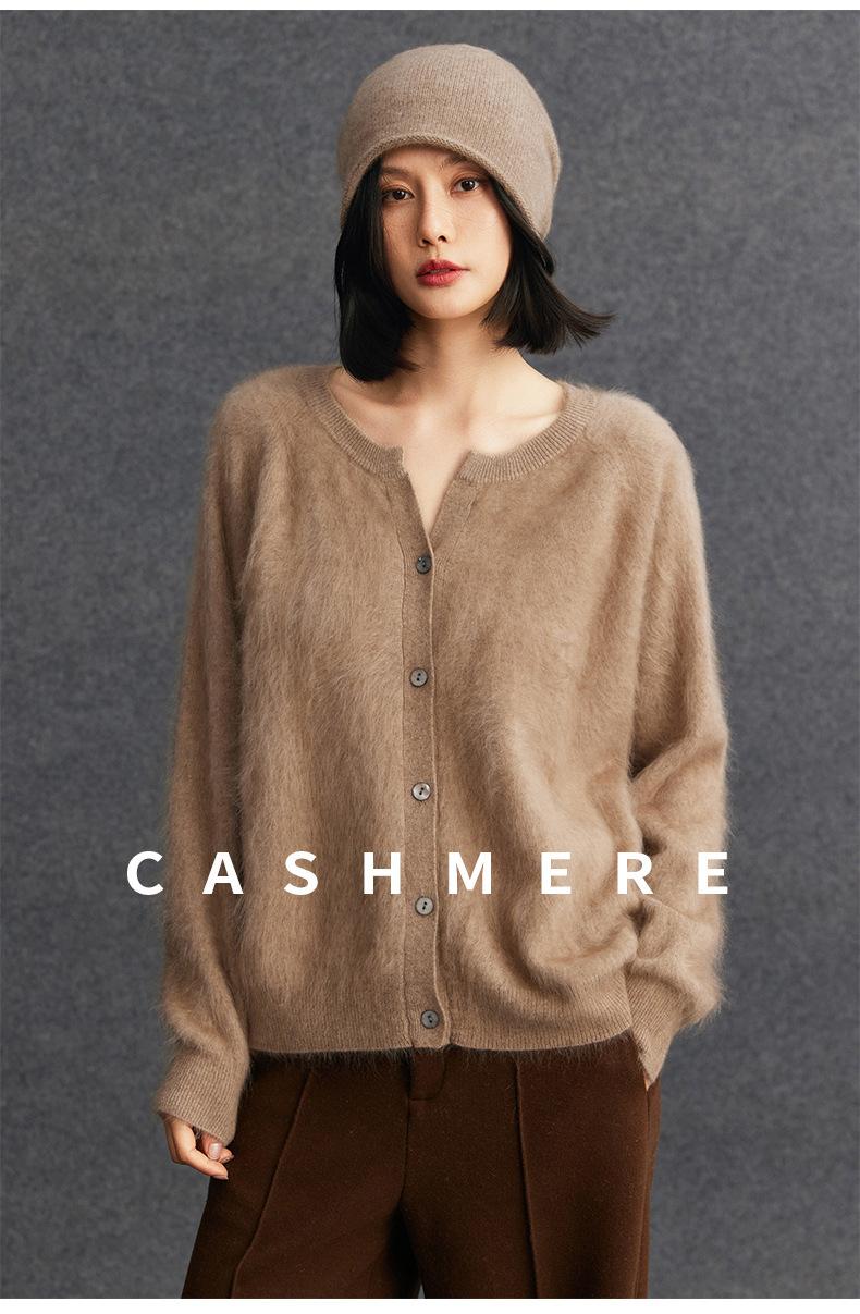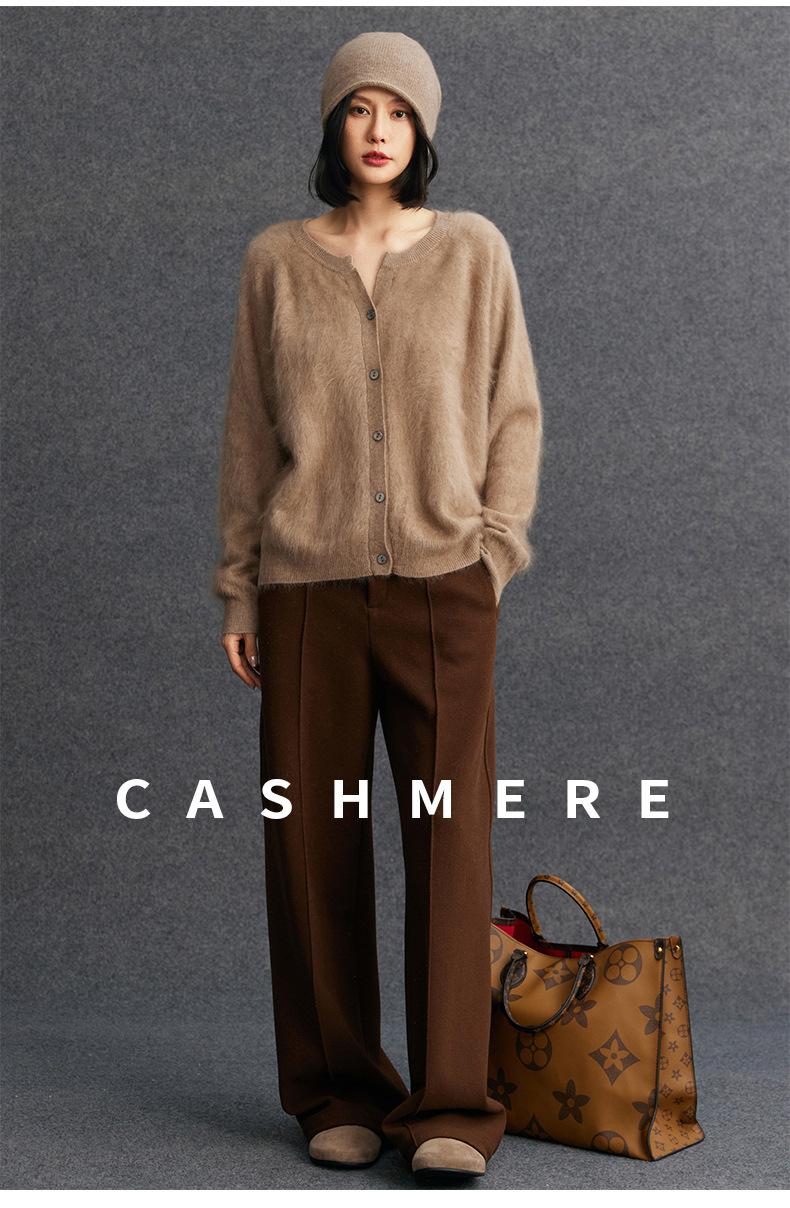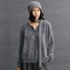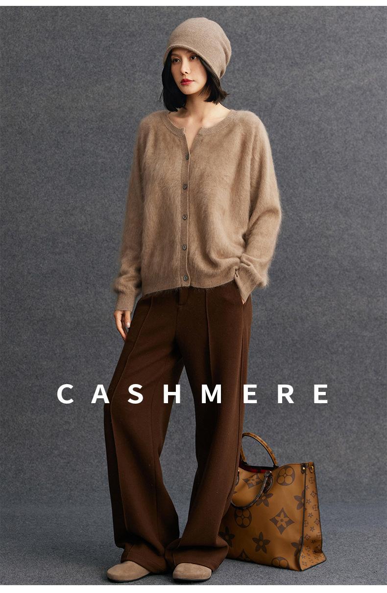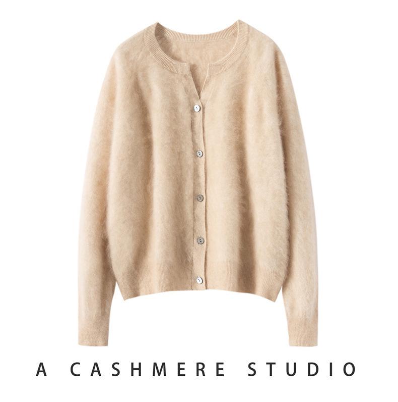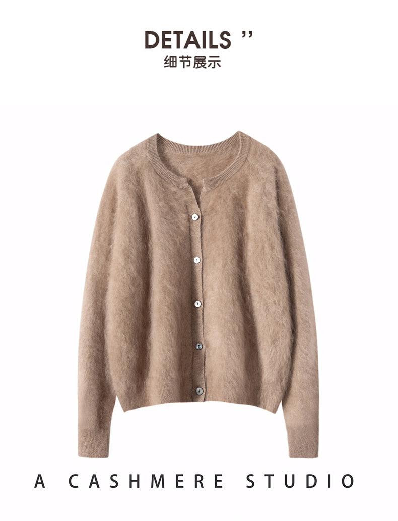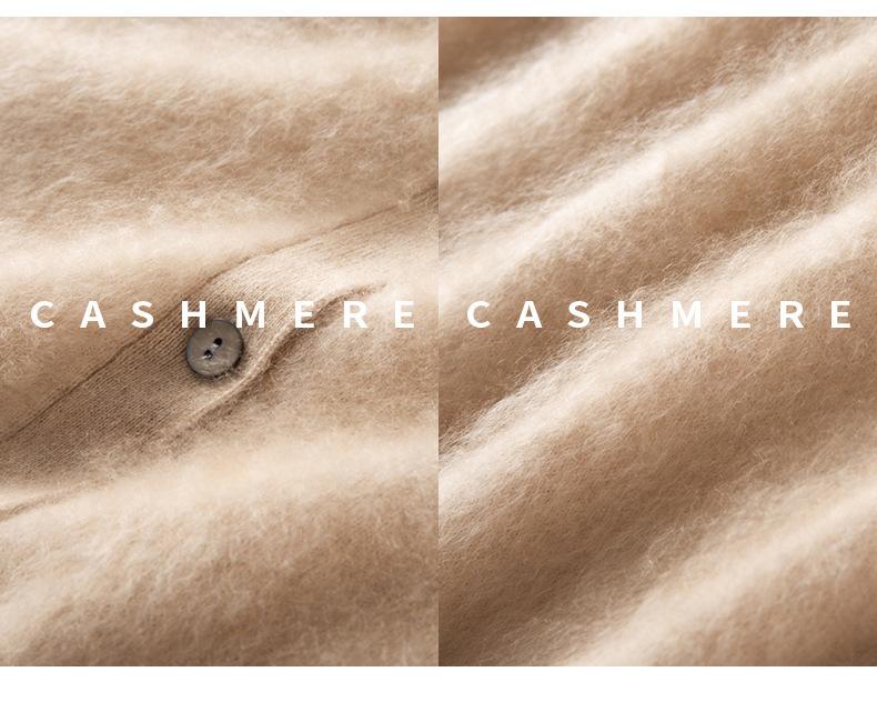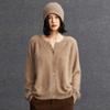 Cachemira Simple Suelto Nuevo Abrigo Cuello Redondo Cárdigan Tejido Puro Mujer Moda Gentil Otoño Invierno Cepillado