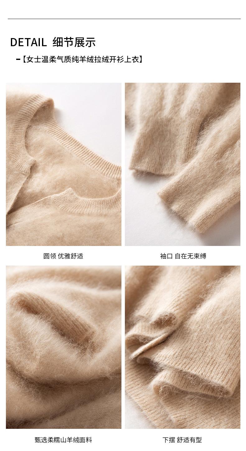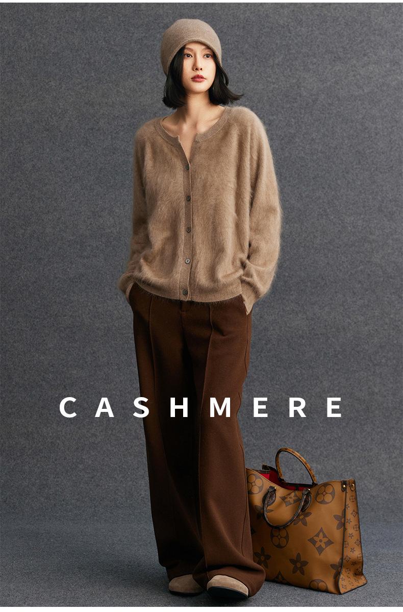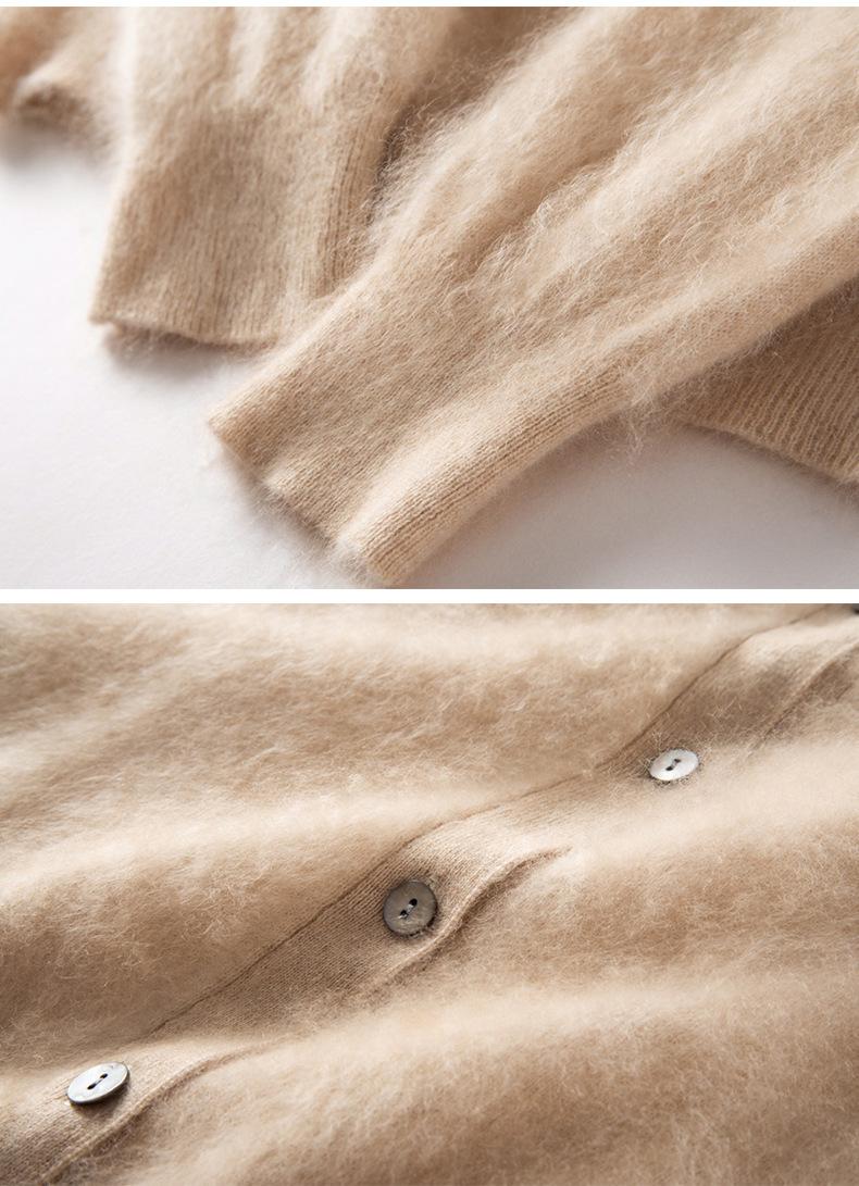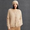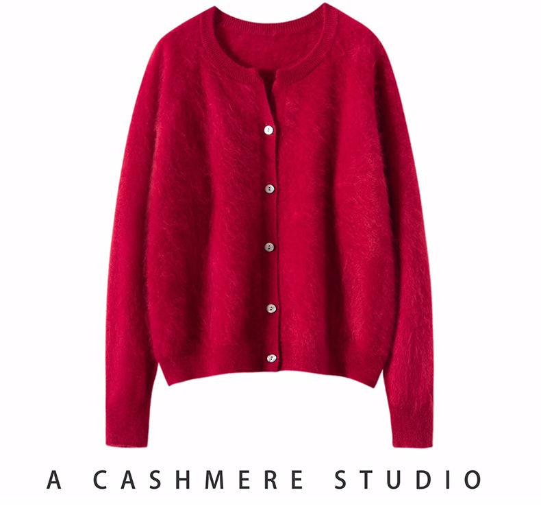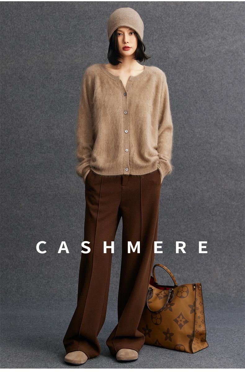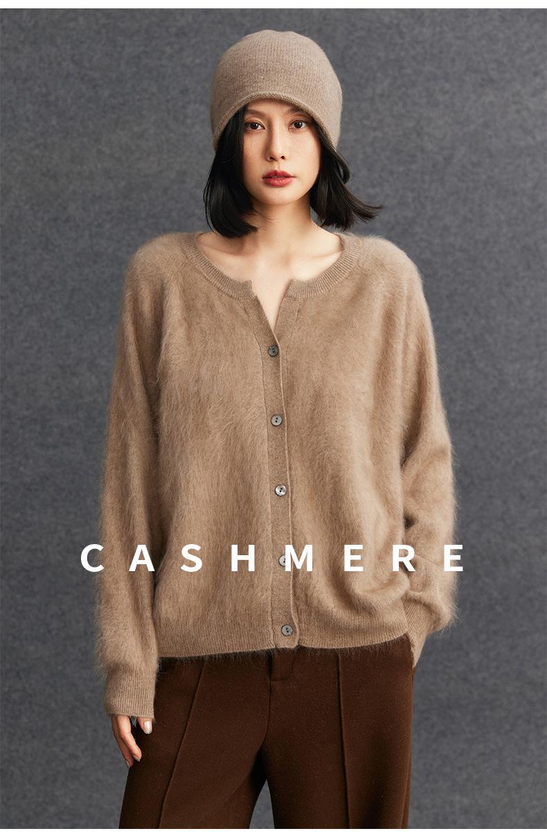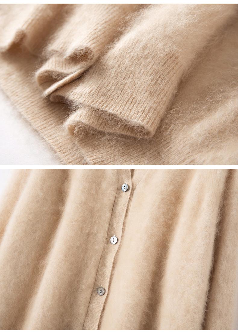 Cachemira Simple Suelto Nuevo Abrigo Cuello Redondo Cárdigan Tejido Puro Mujer Moda Gentil Otoño Invierno Cepillado