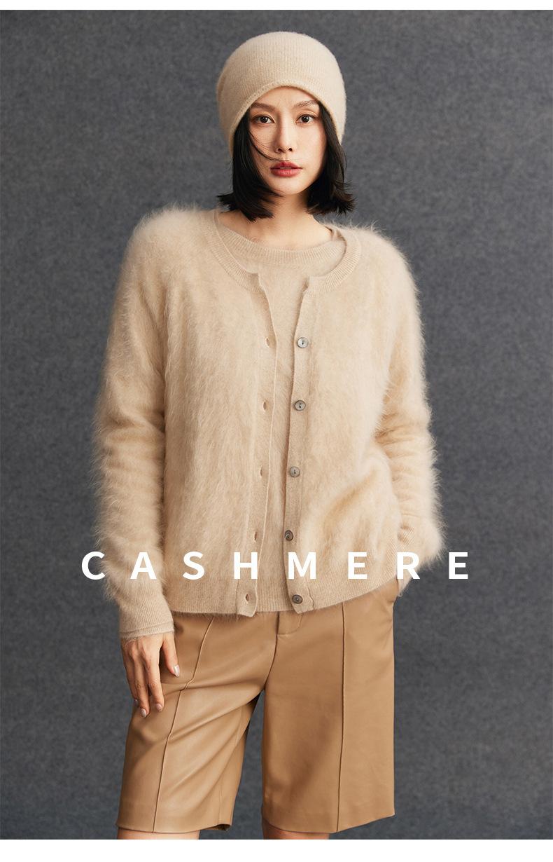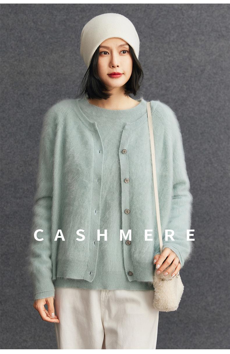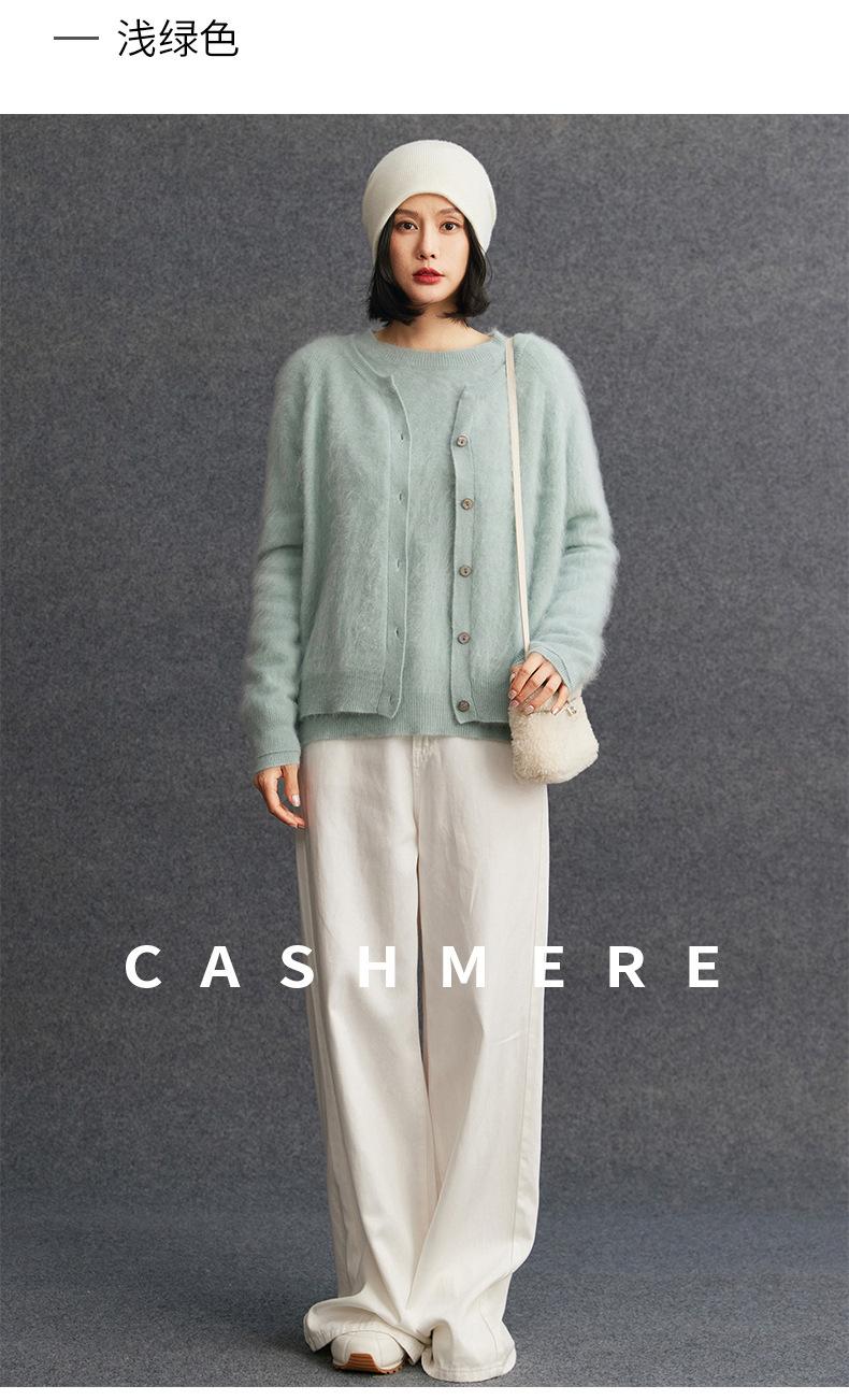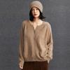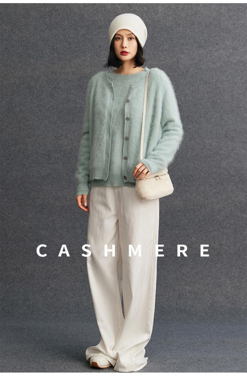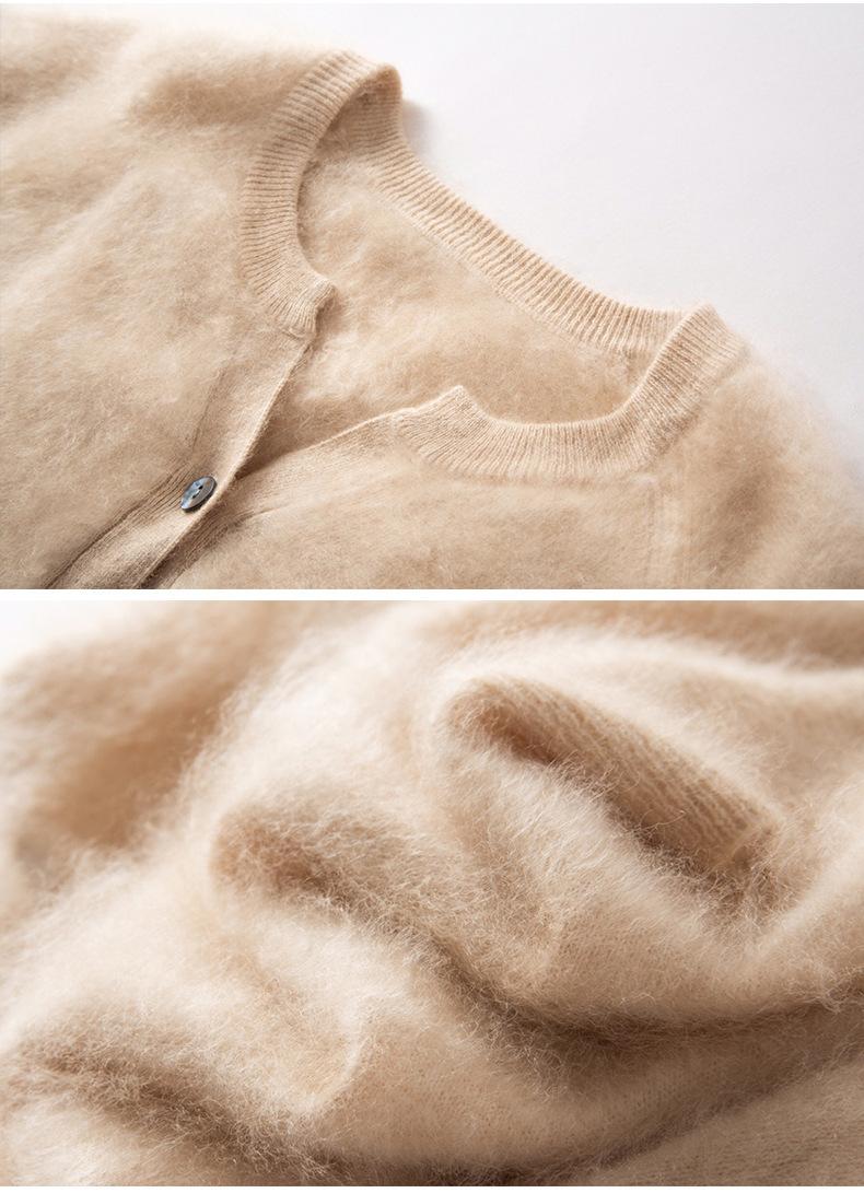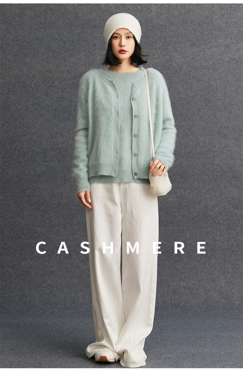 Cachemira Simple Suelto Nuevo Abrigo Cuello Redondo Cárdigan Tejido Puro Mujer Moda Gentil Otoño Invierno Cepillado
