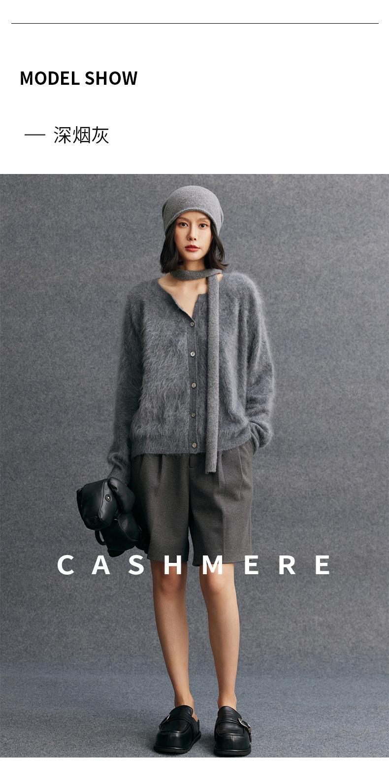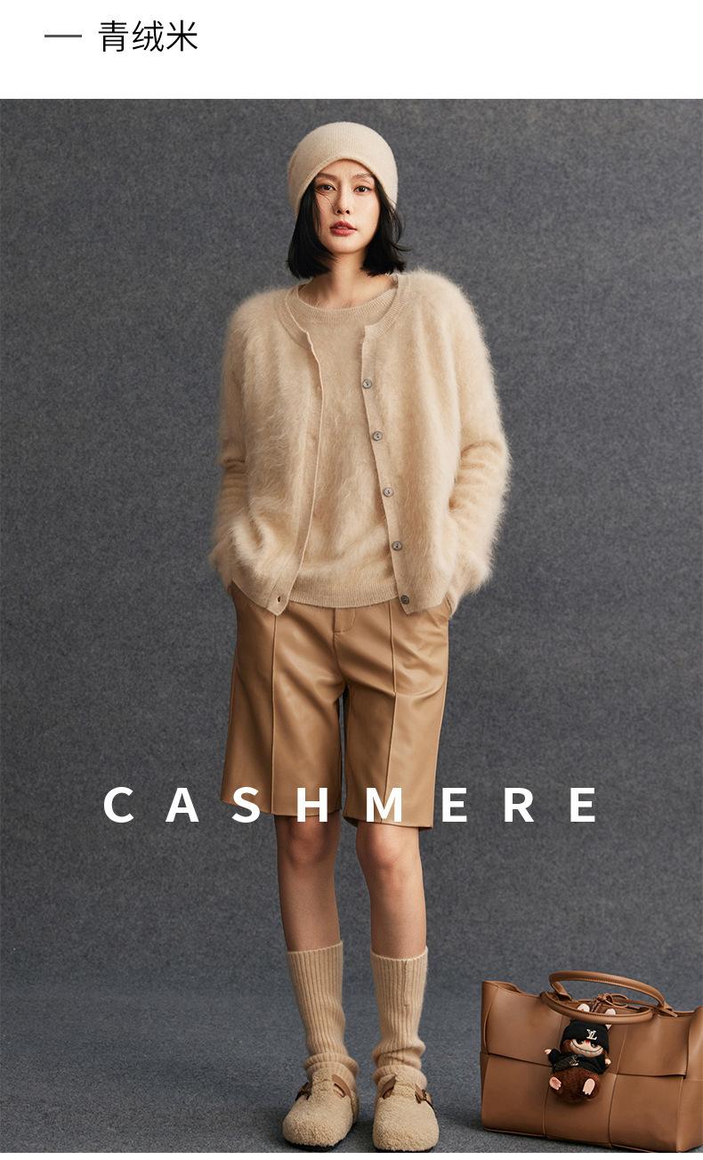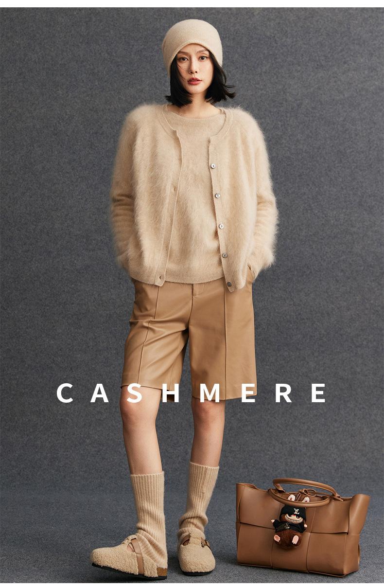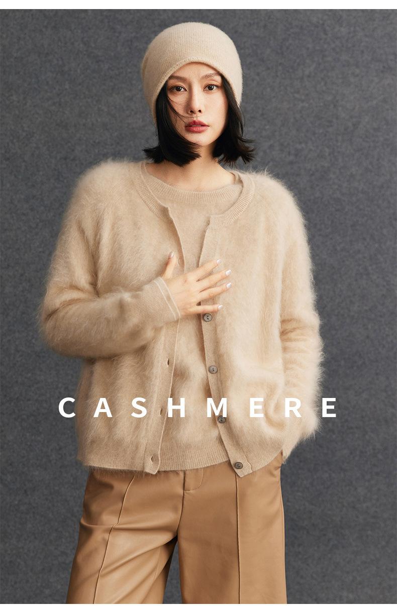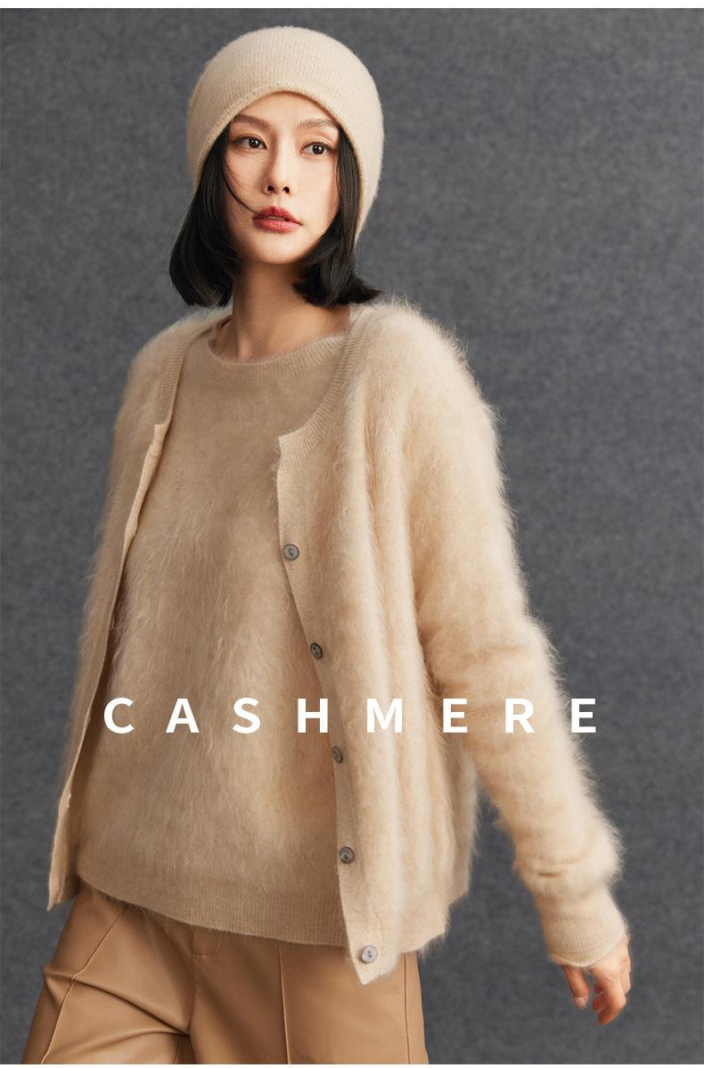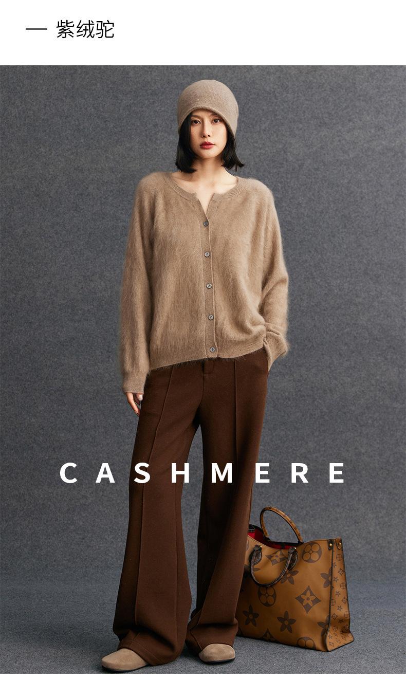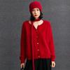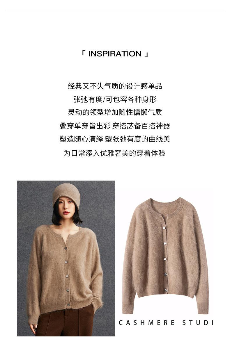 Cachemira Simple Suelto Nuevo Abrigo Cuello Redondo Cárdigan Tejido Puro Mujer Moda Gentil Otoño Invierno Cepillado