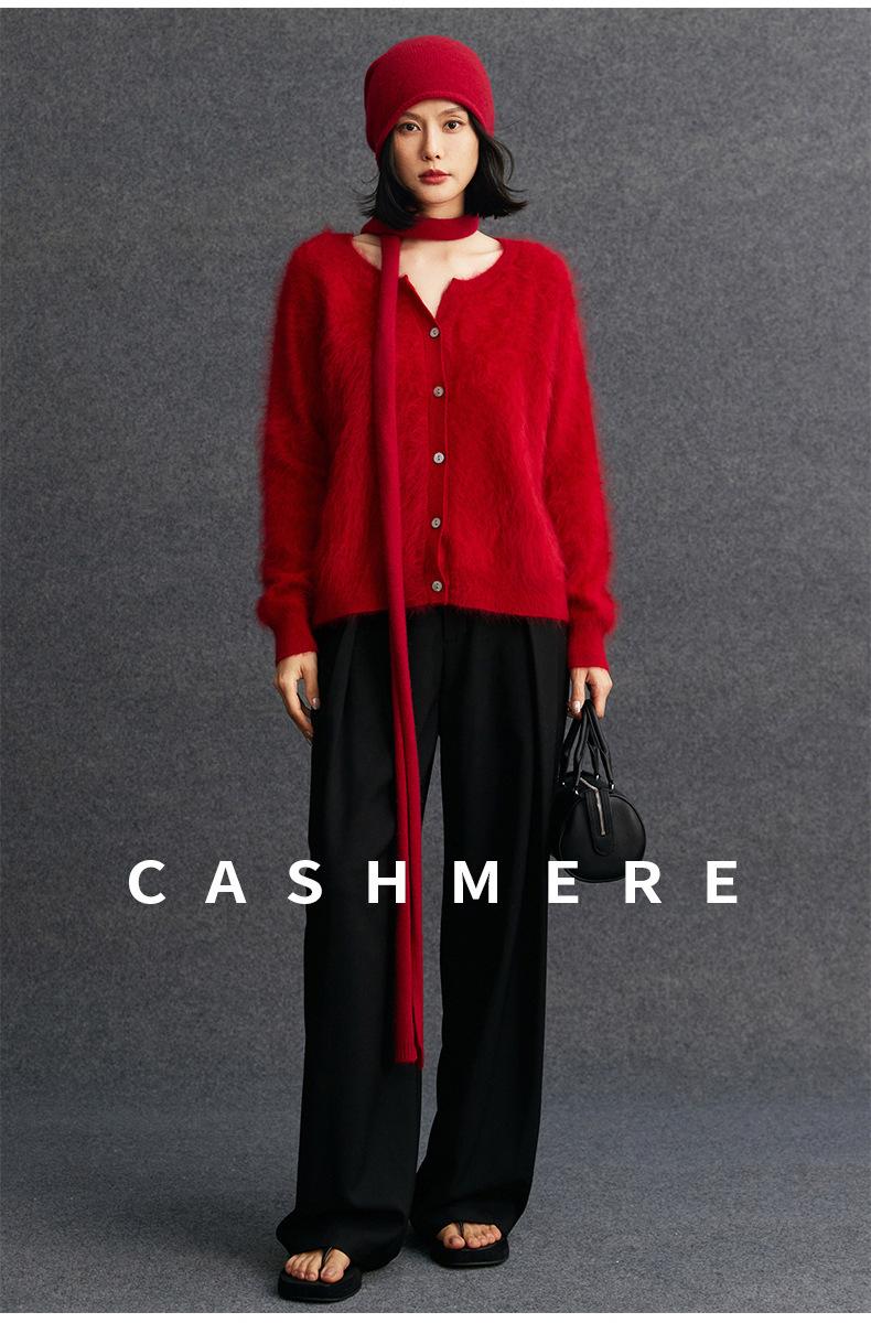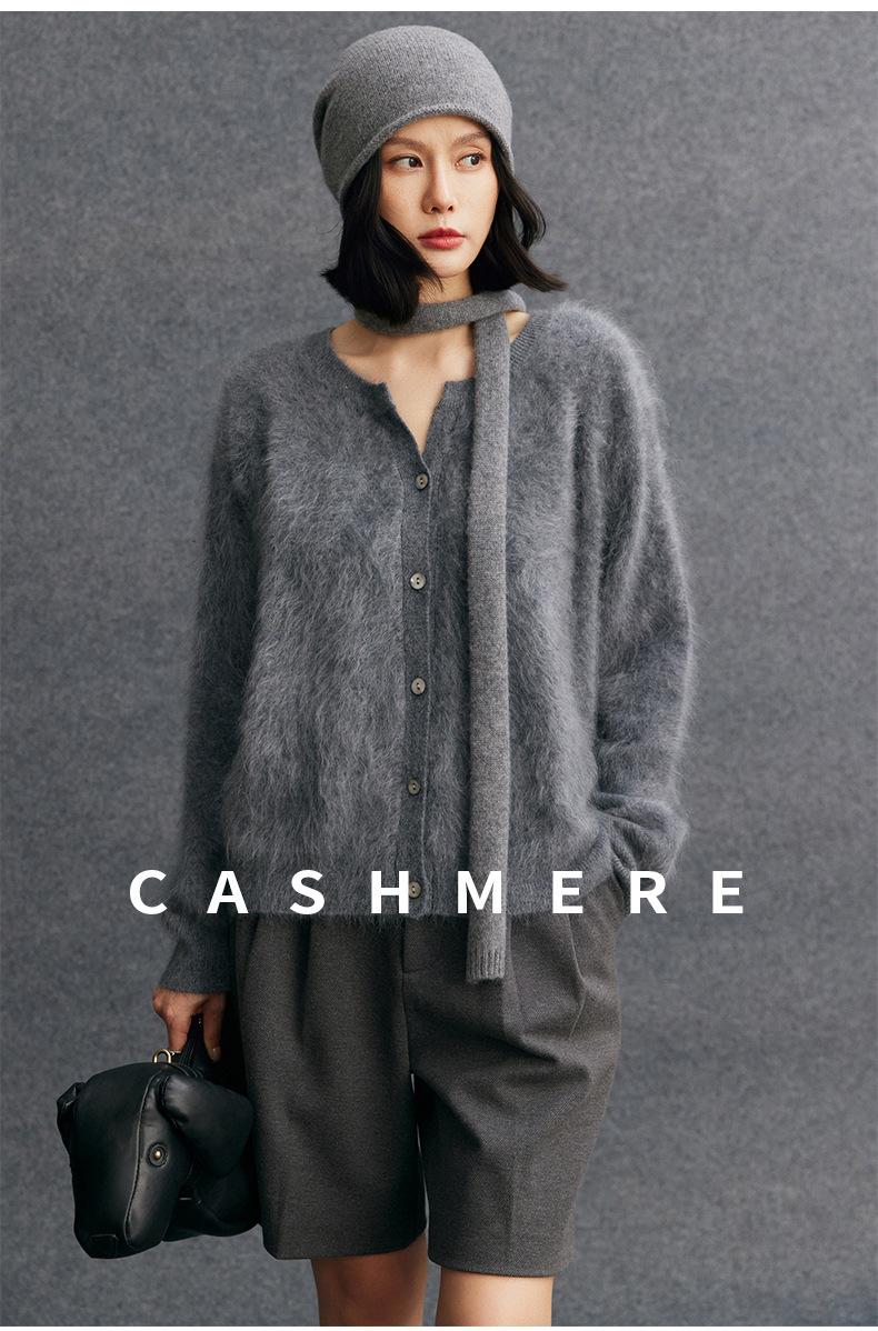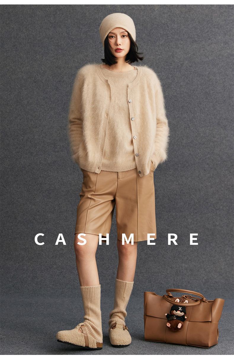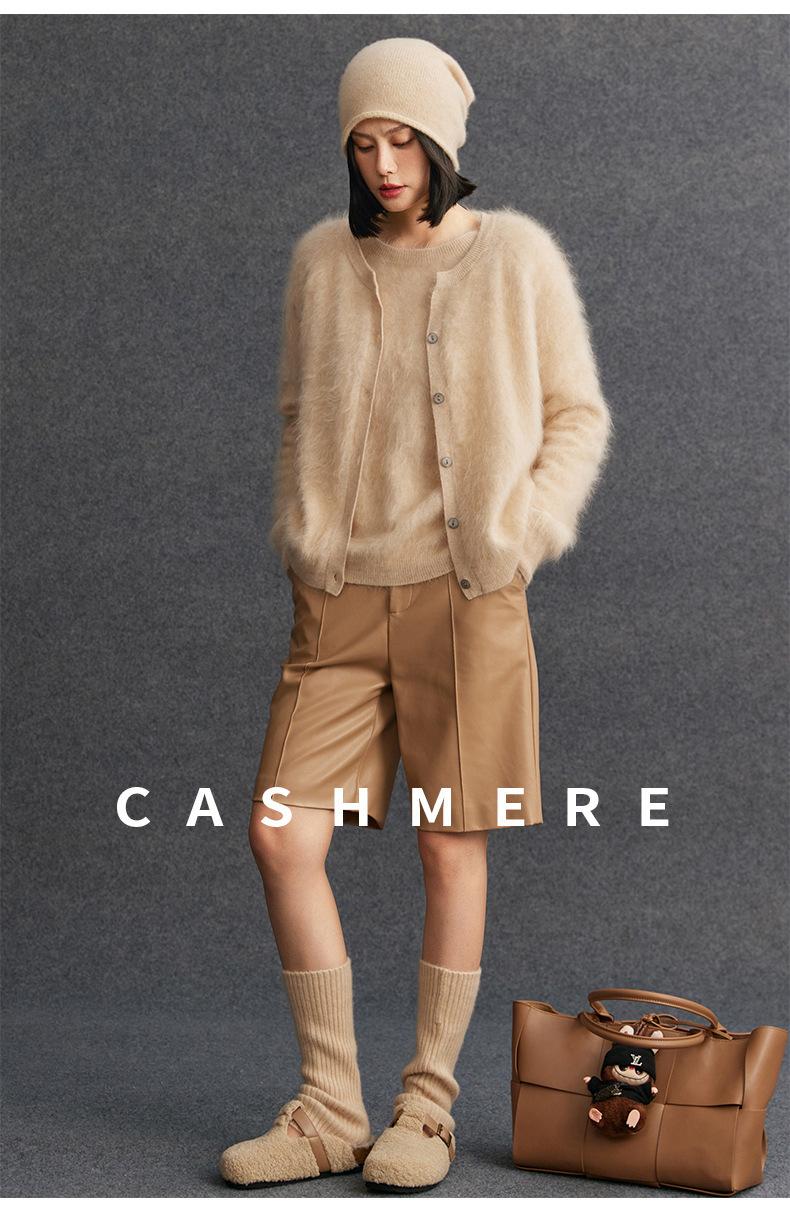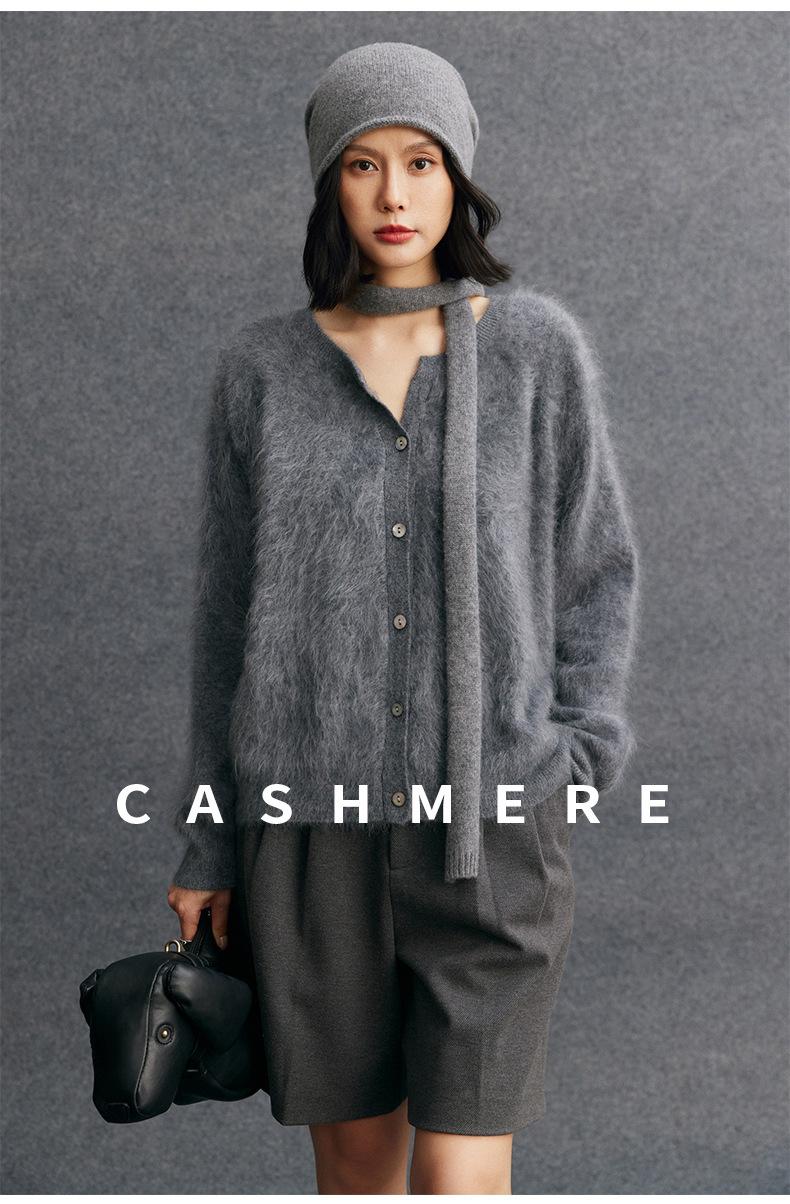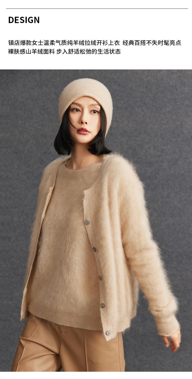 Cachemira Simple Suelto Nuevo Abrigo Cuello Redondo Cárdigan Tejido Puro Mujer Moda Gentil Otoño Invierno Cepillado