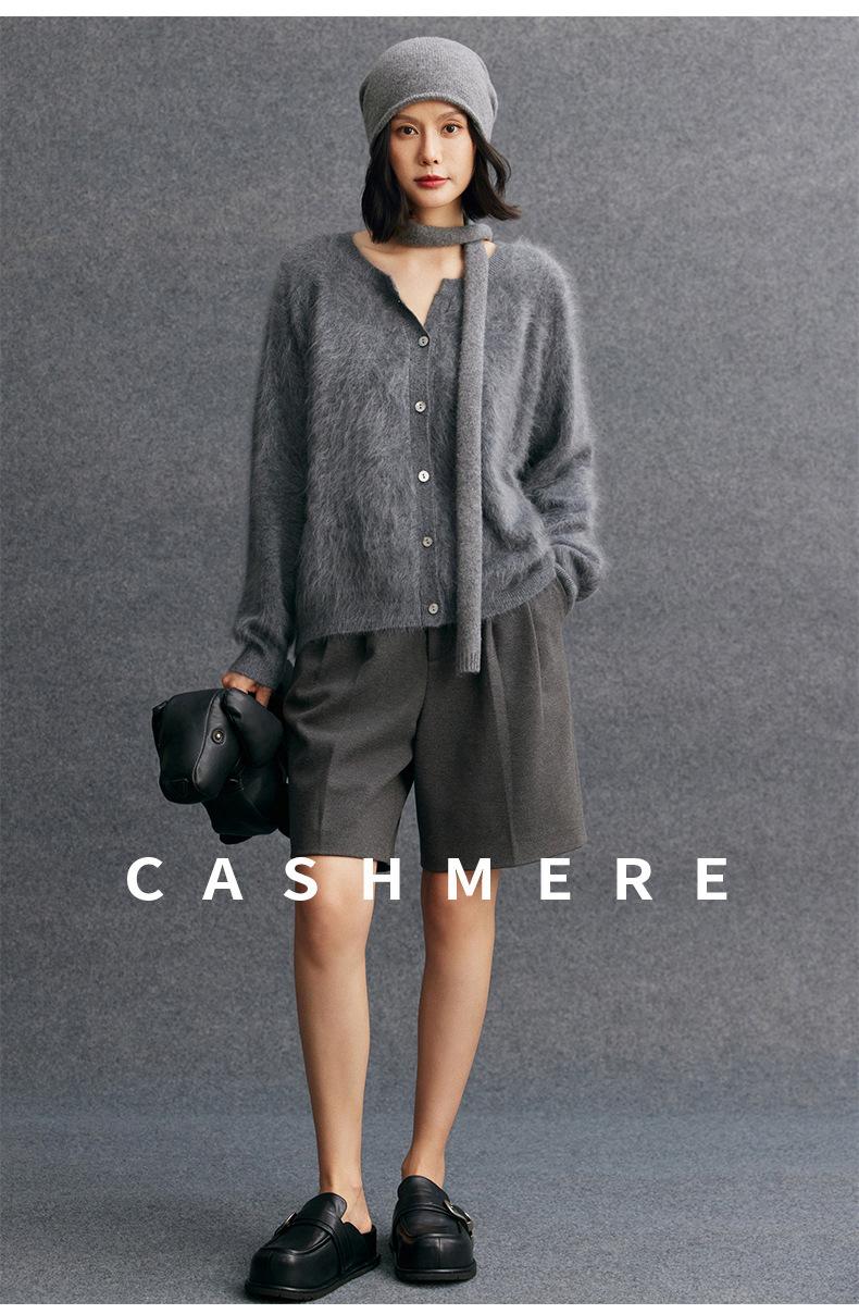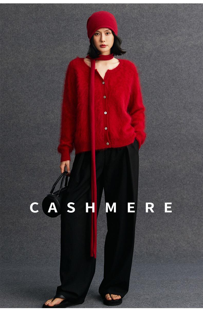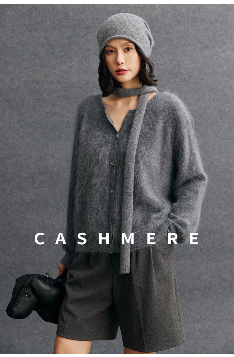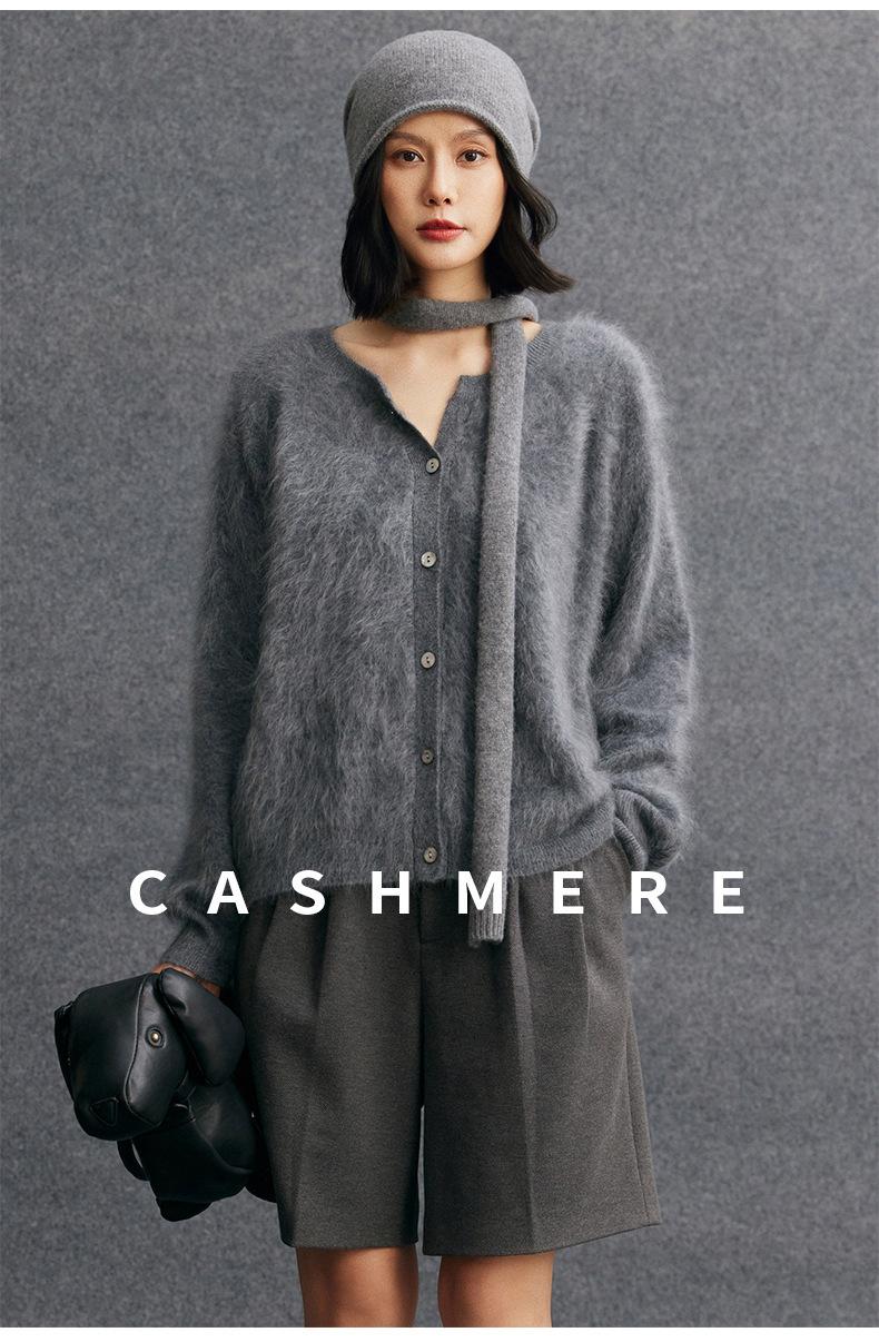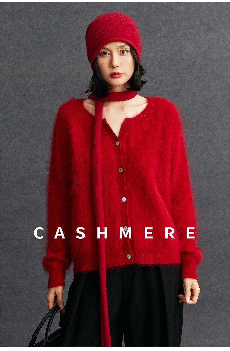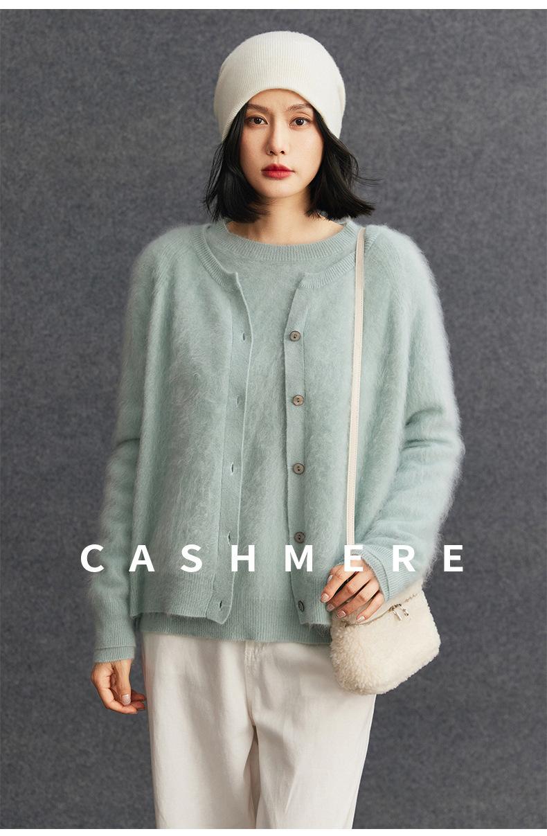 Cachemira Simple Suelto Nuevo Abrigo Cuello Redondo Cárdigan Tejido Puro Mujer Moda Gentil Otoño Invierno Cepillado