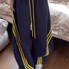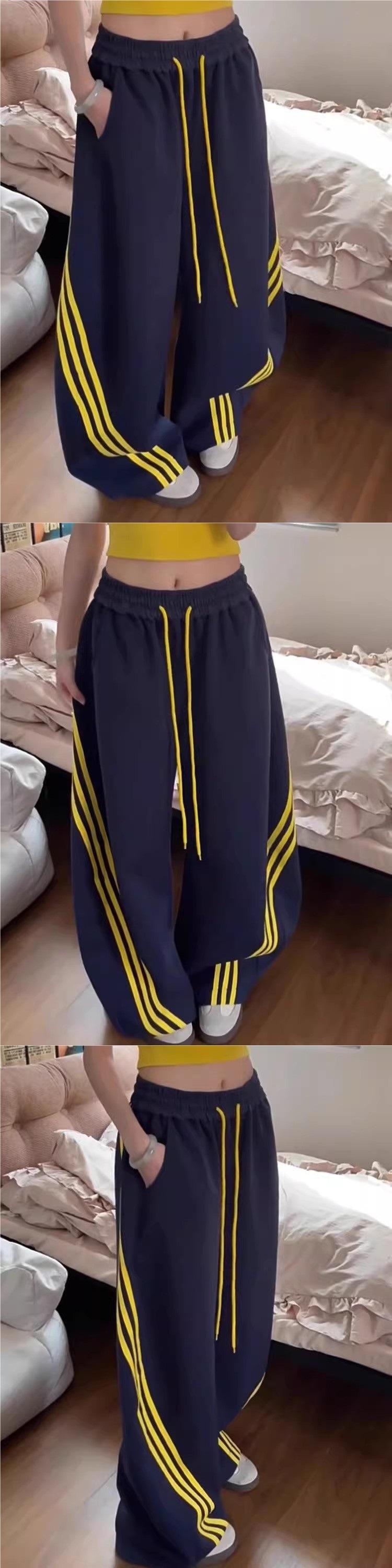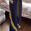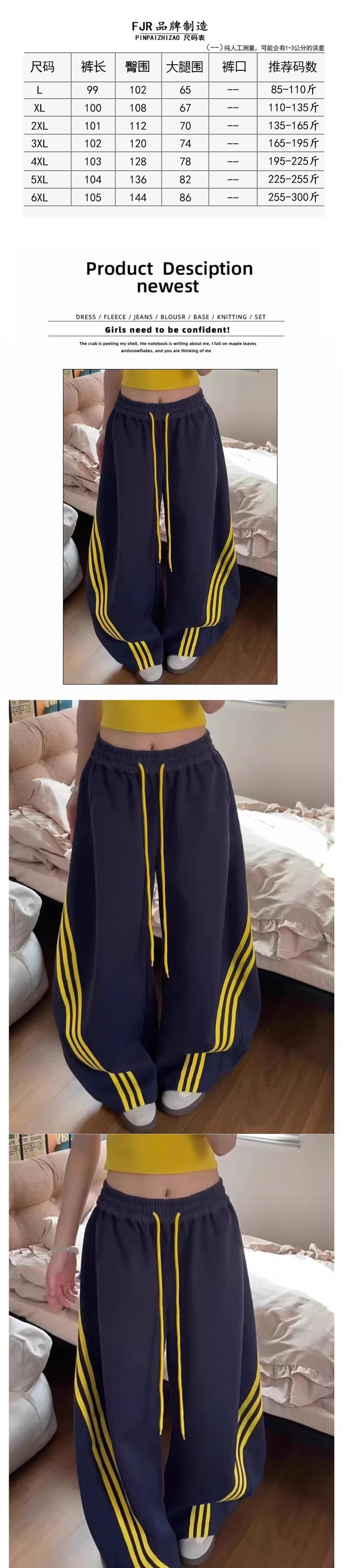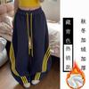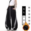 Talla Grande M-6XL Americano Retro Tres Rayas Pierna Curva Pantalones de Pierna Ancha para Mujer Otoño/Invierno Forro Polar Grueso Suelto Deportivo Pantalones de Sudor
