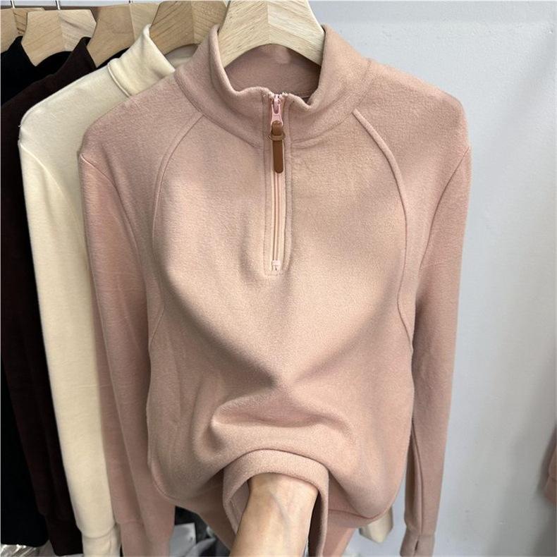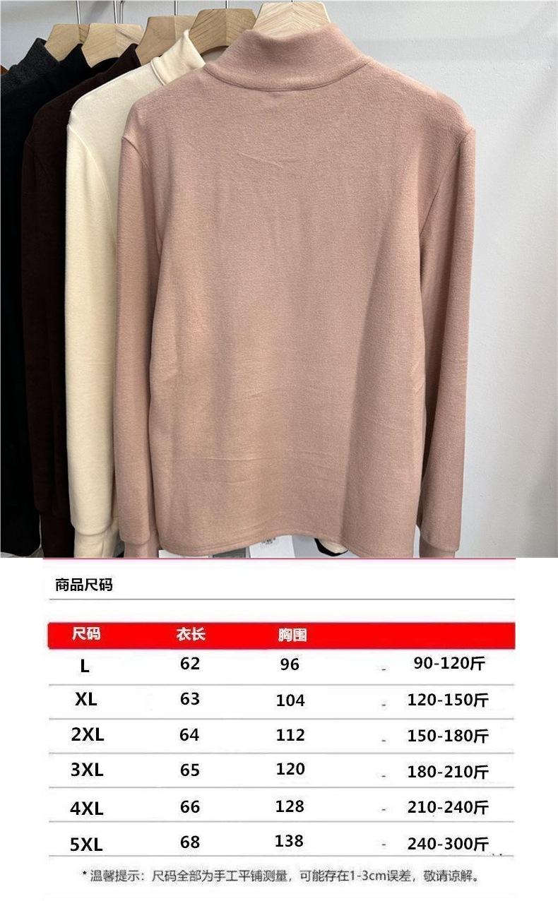 300 jin ropa de mujer de talla grande Melaard capa base de forro polar ropa interior otoño e invierno nuevo producto camiseta de manga larga top de cuello alto con media cremallera