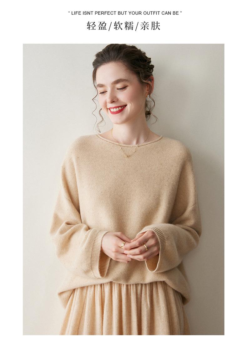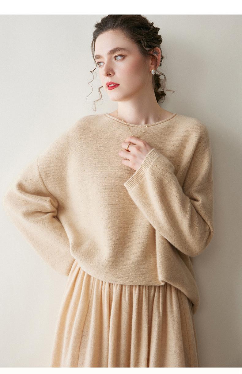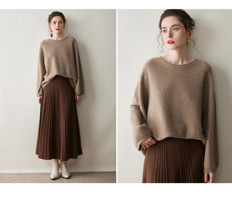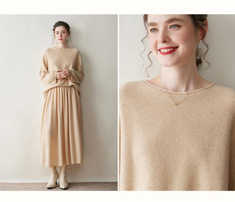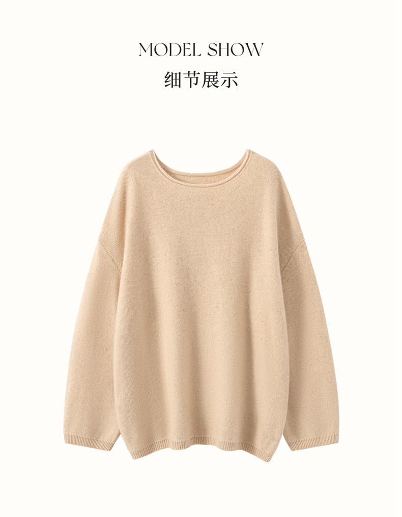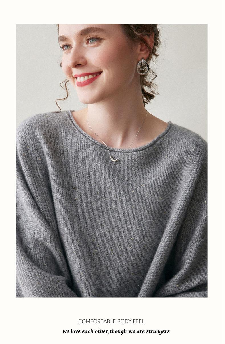 Suéter de gama alta de largo medio con hombros descubiertos, suéter de cachemira holgado de mostrador, camisa base de hilo para mujer, nuevo frijol perezoso
