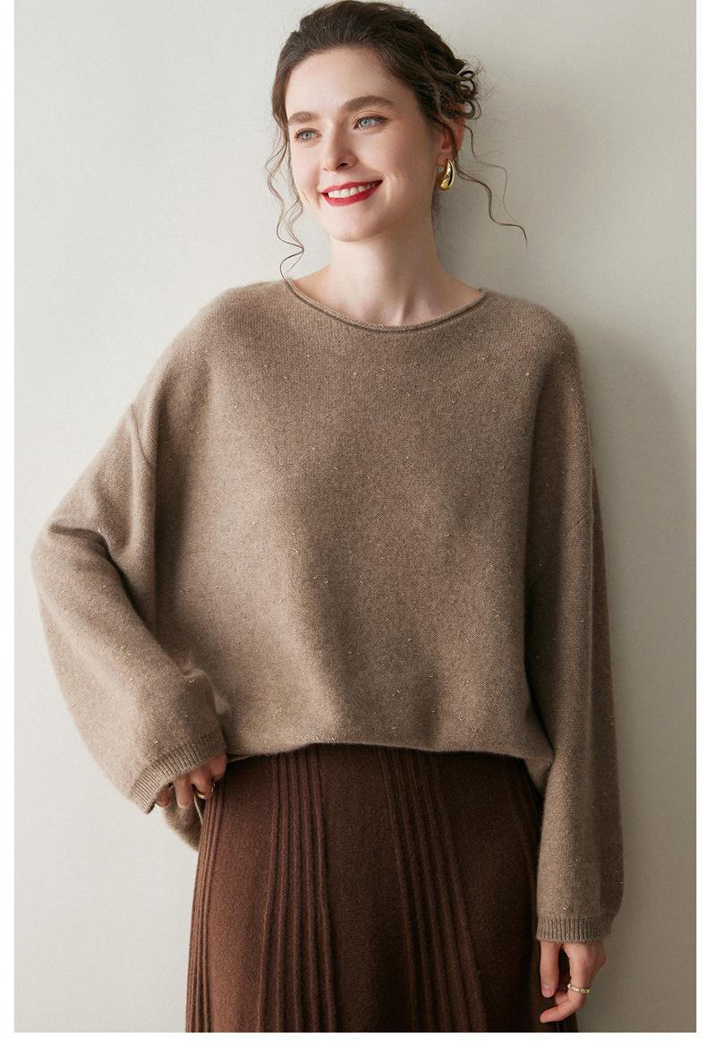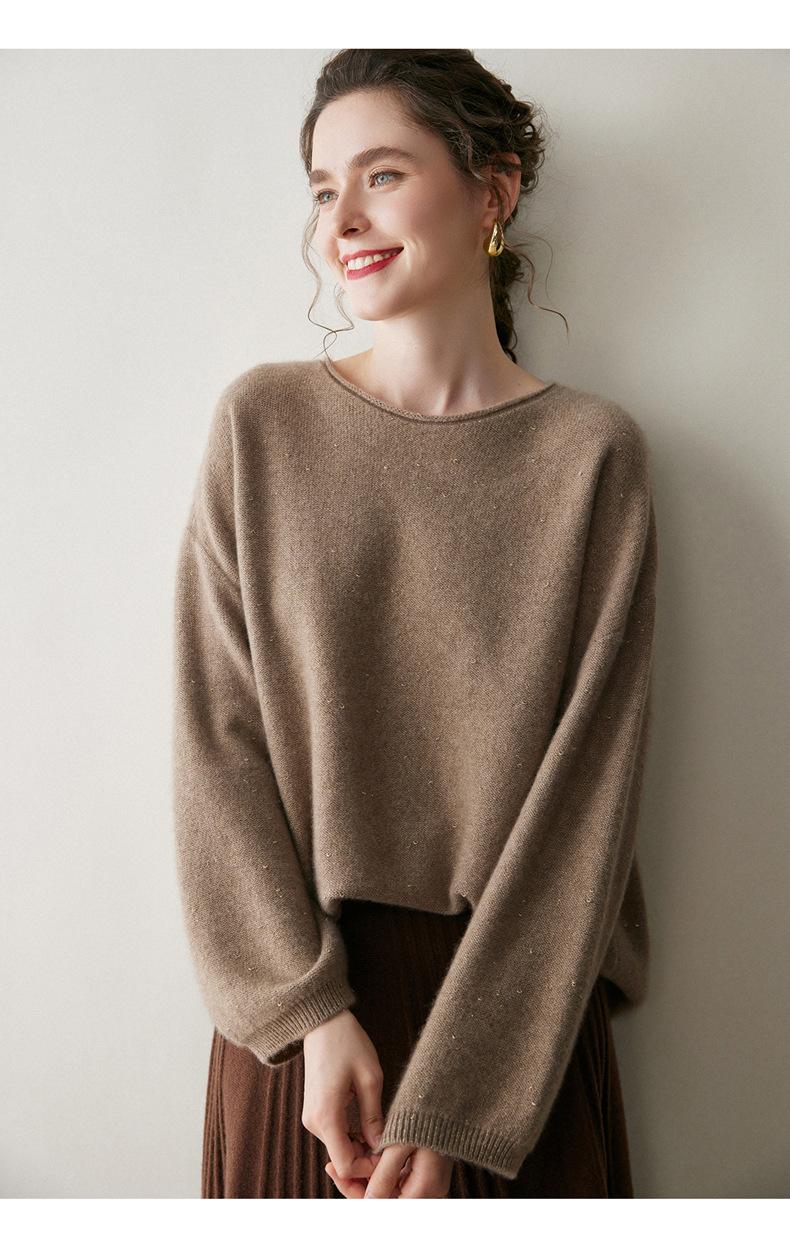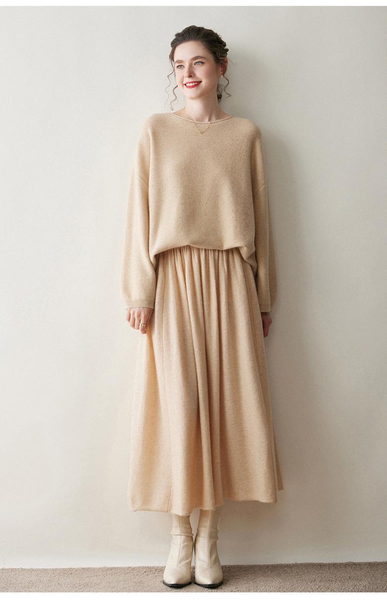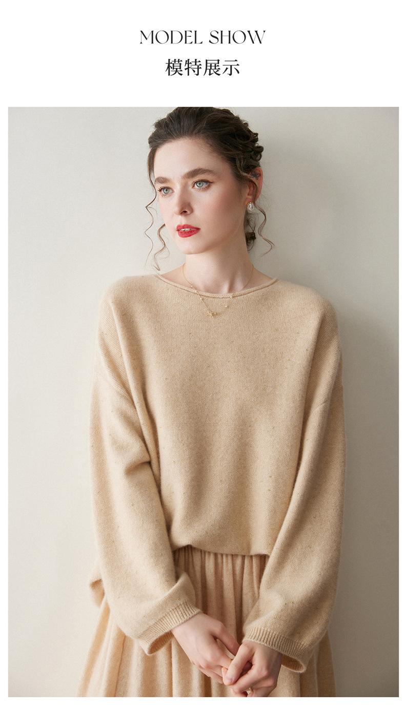 Suéter de gama alta de largo medio con hombros descubiertos, suéter de cachemira holgado de mostrador, camisa base de hilo para mujer, nuevo frijol perezoso