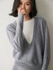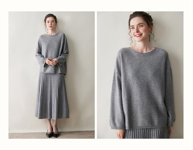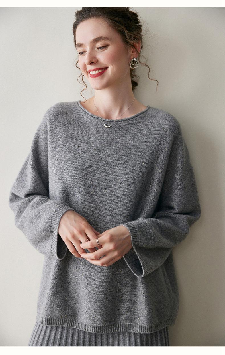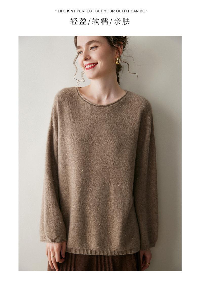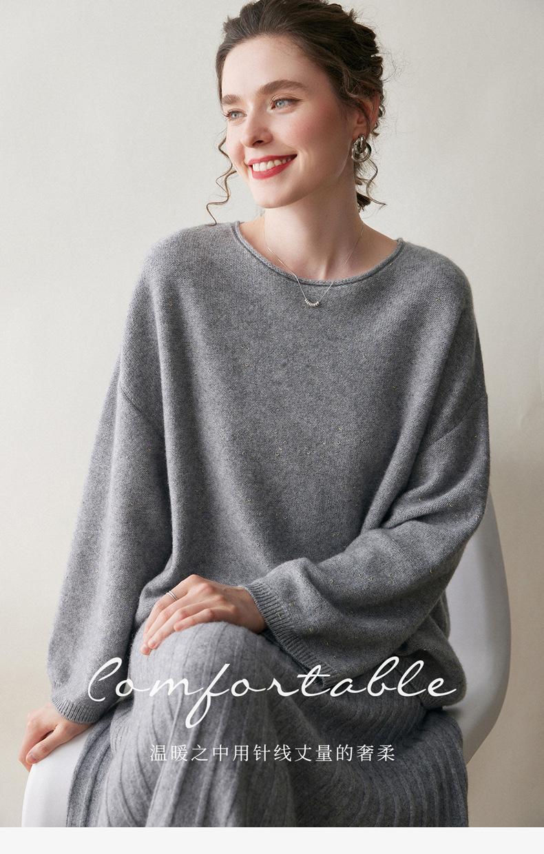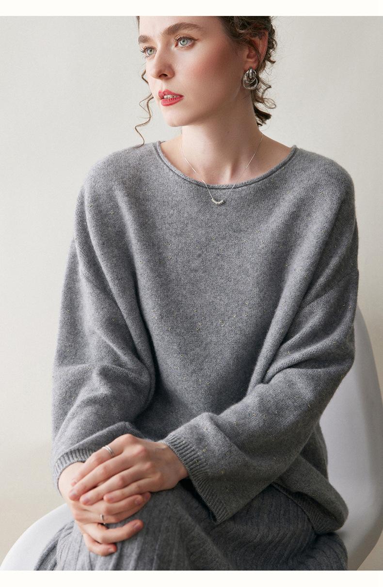 Suéter de gama alta de largo medio con hombros descubiertos, suéter de cachemira holgado de mostrador, camisa base de hilo para mujer, nuevo frijol perezoso