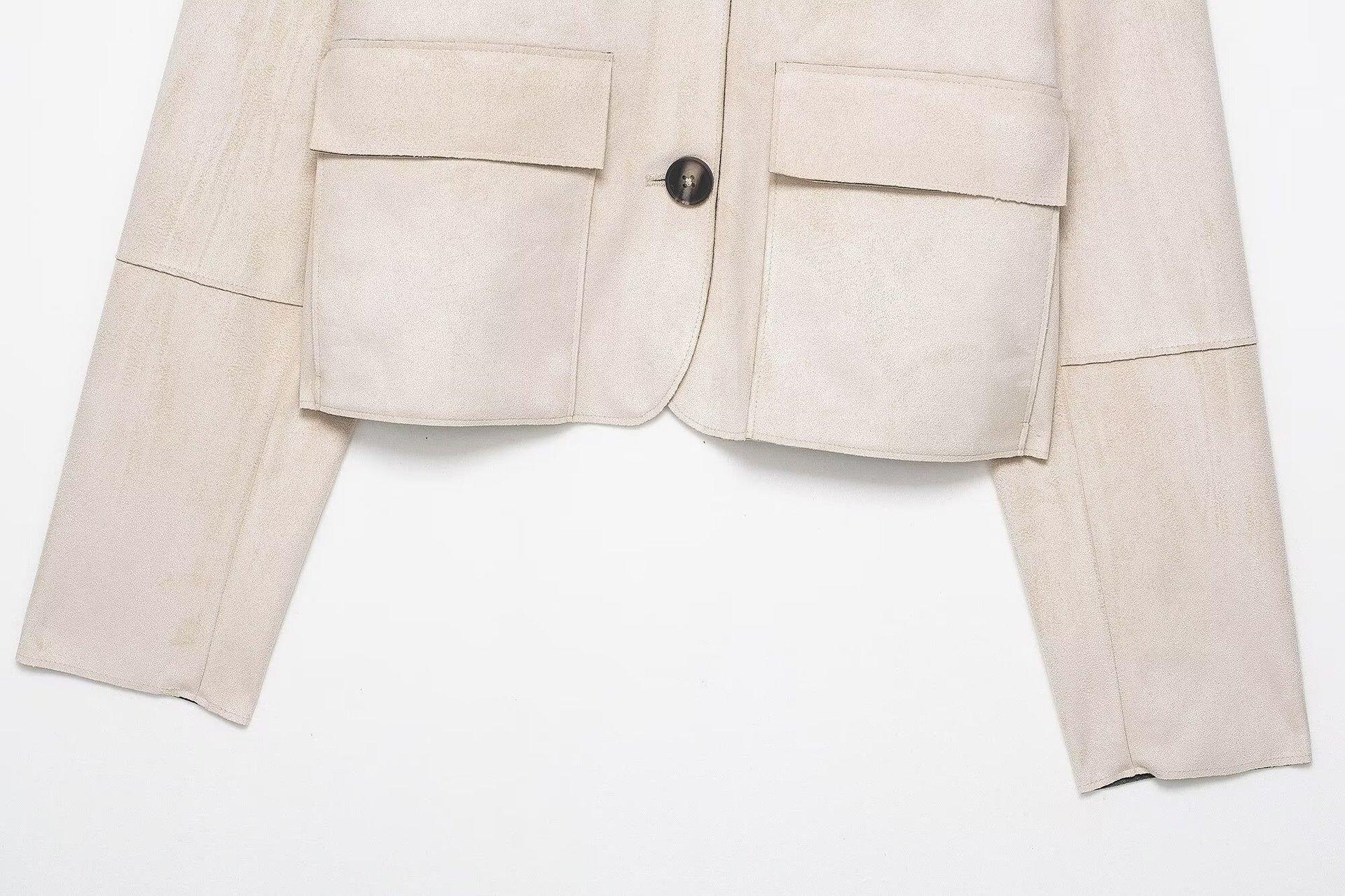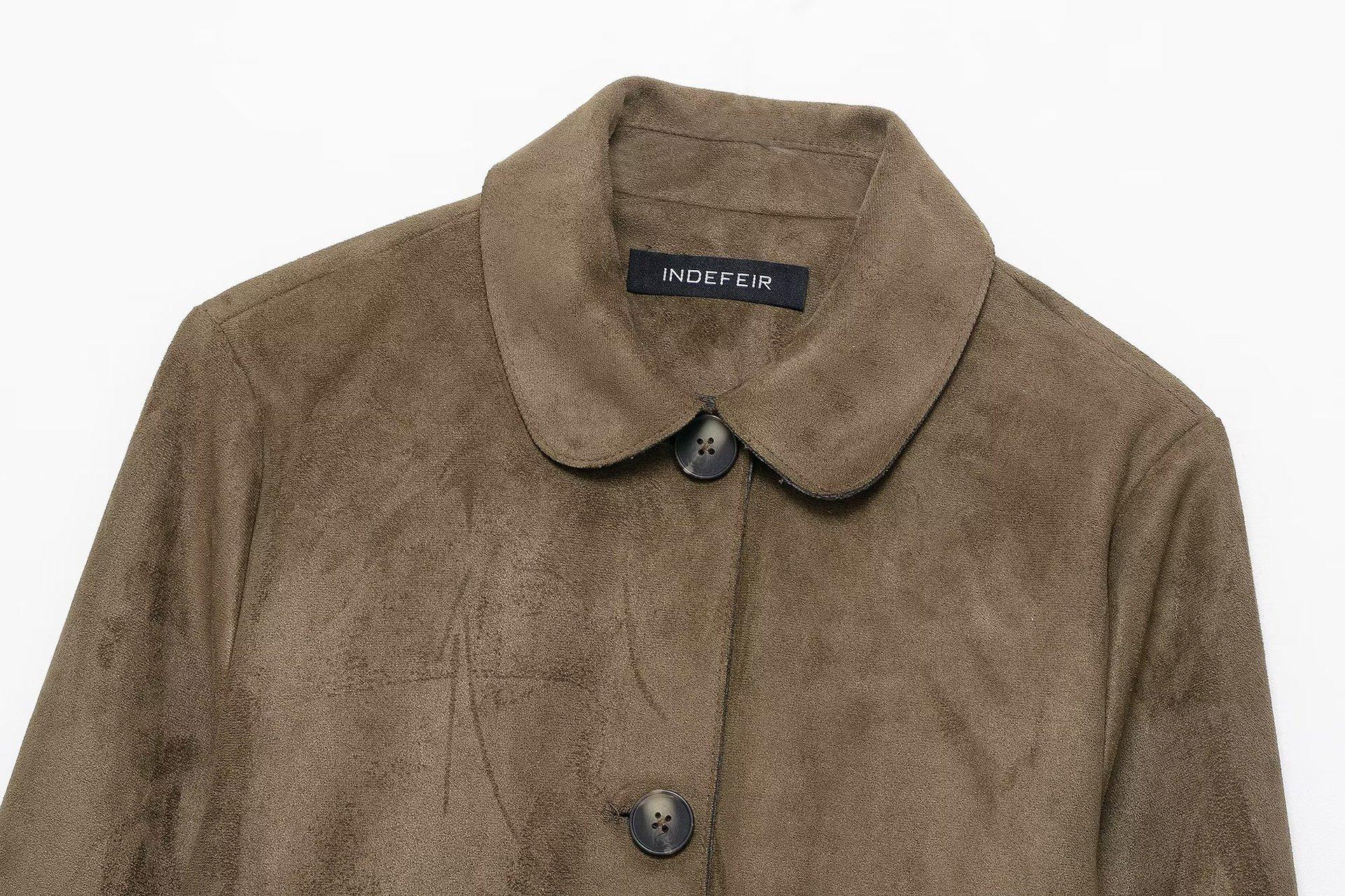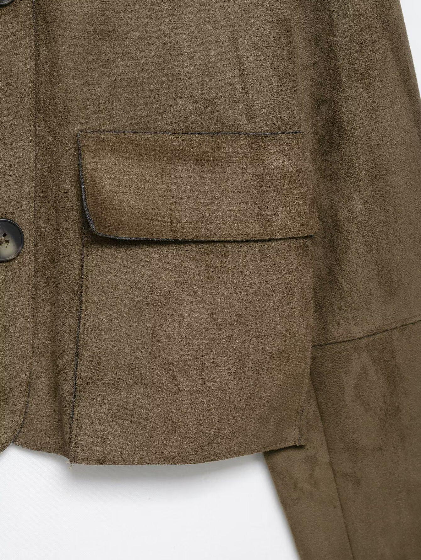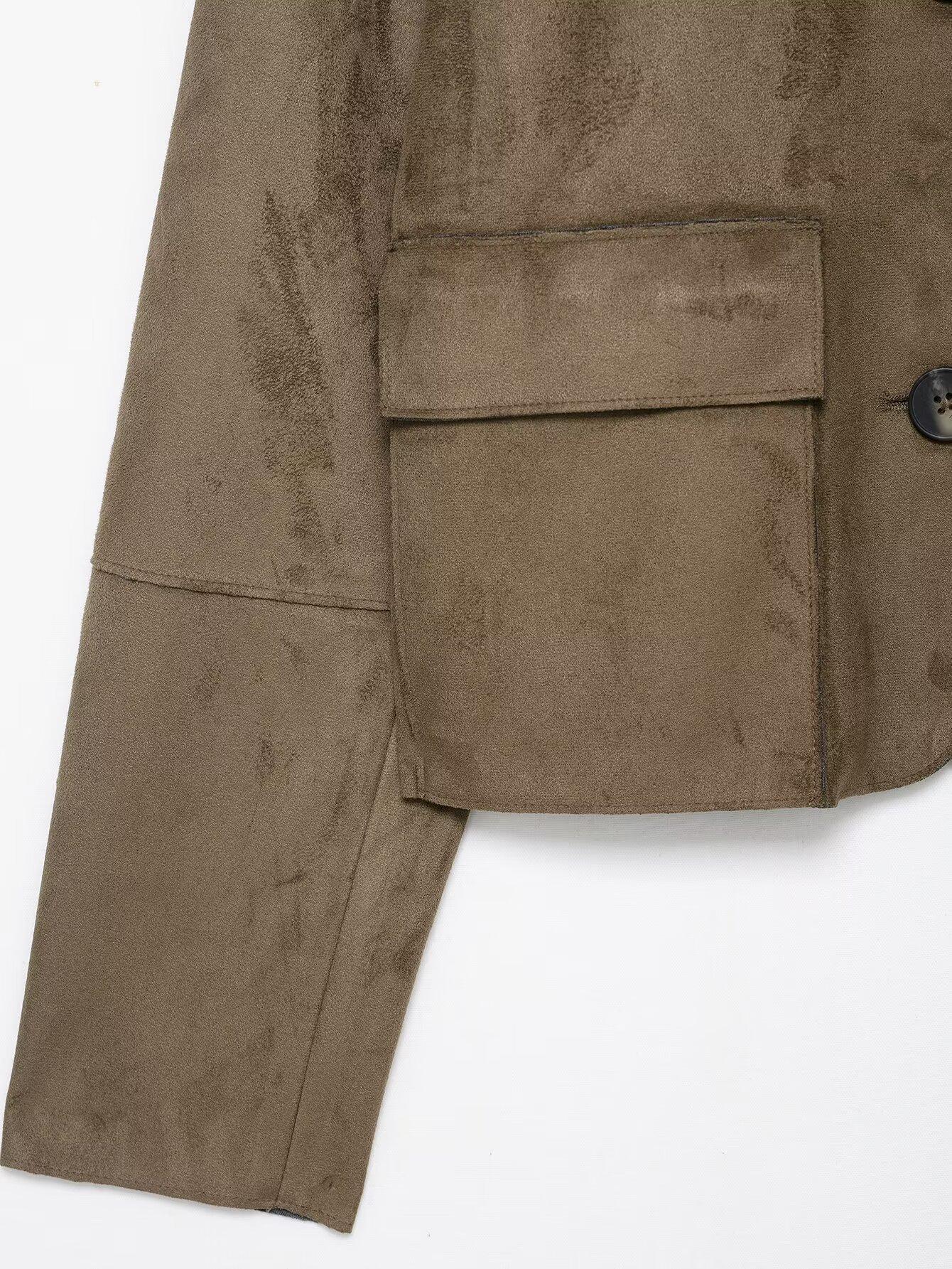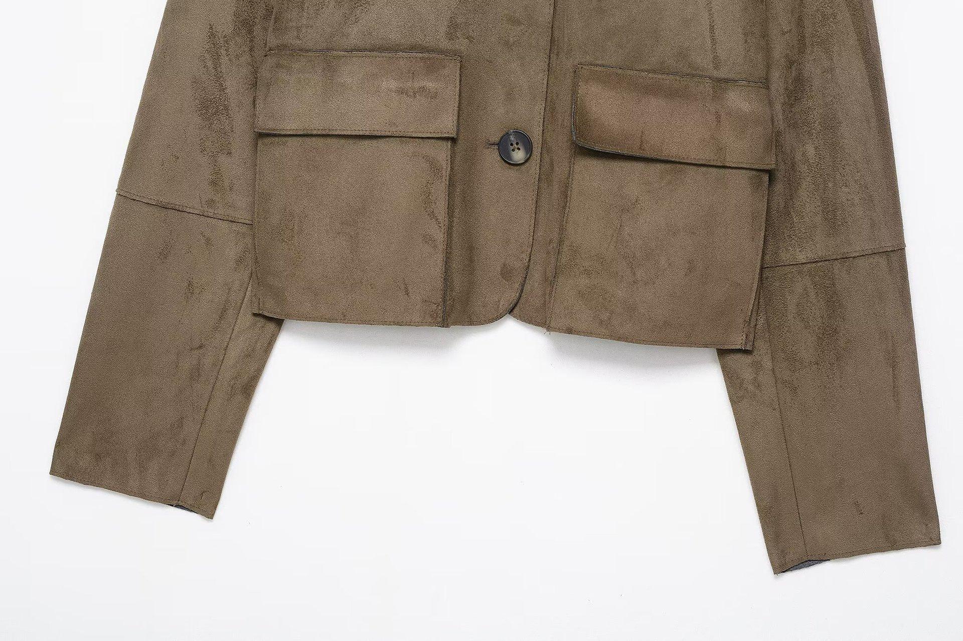Comercio Exterior 2025 Otoño Nuevo Moda Mujer Sencillo Efecto Gamuza Chaqueta Corta Abrigo