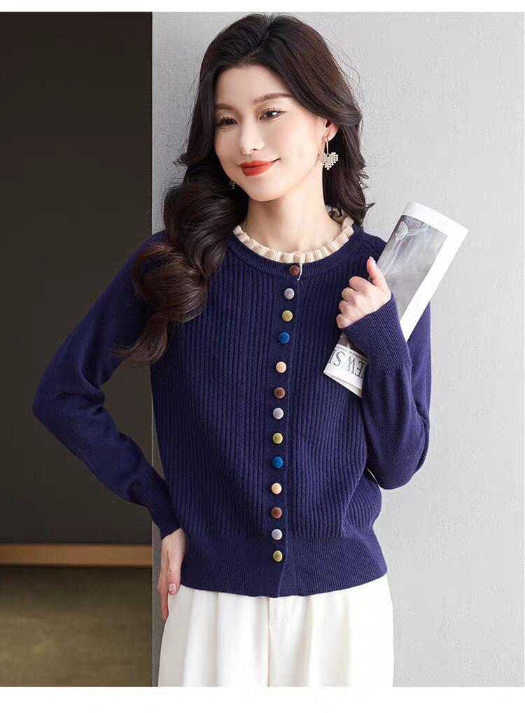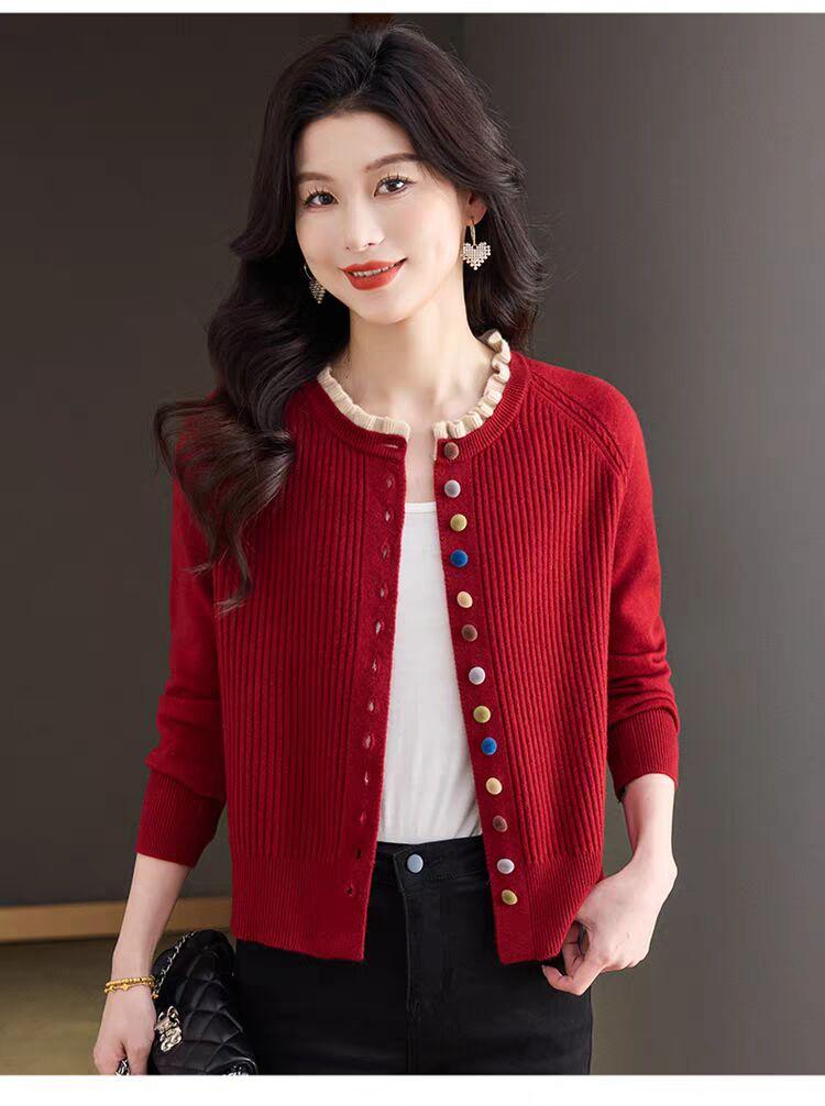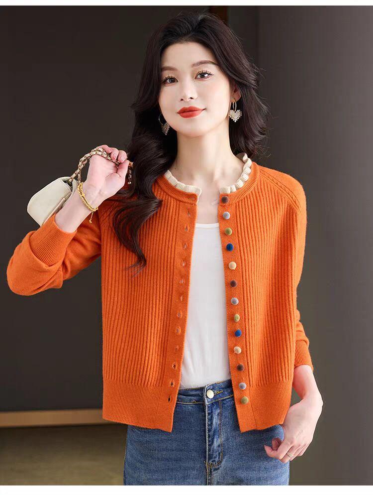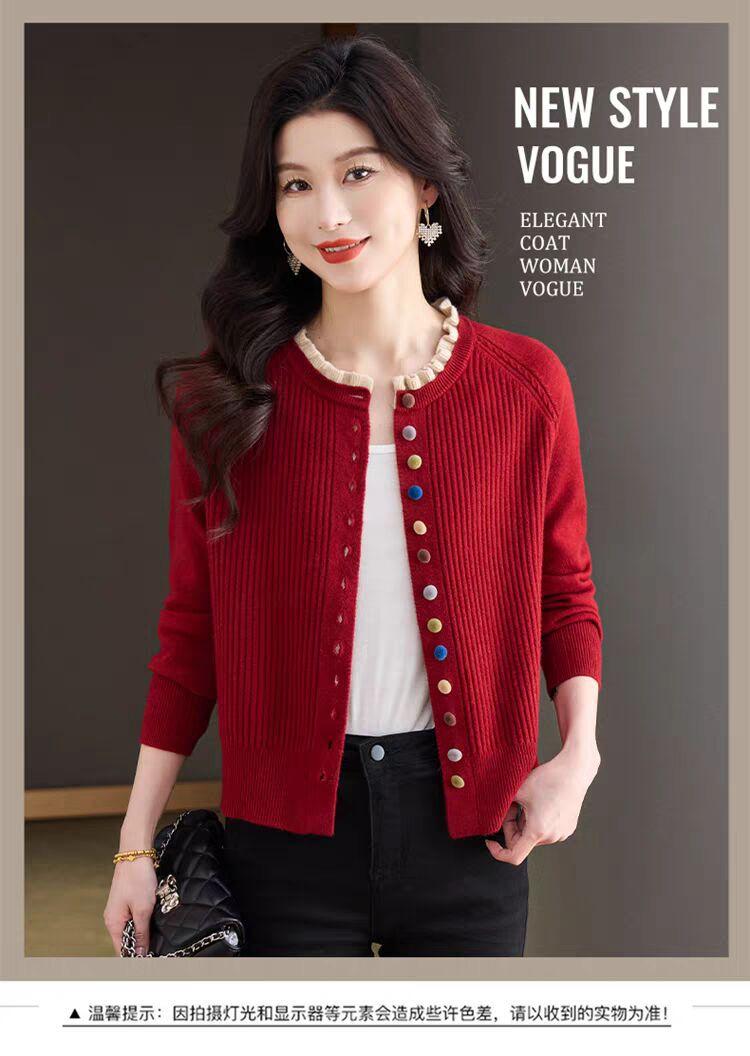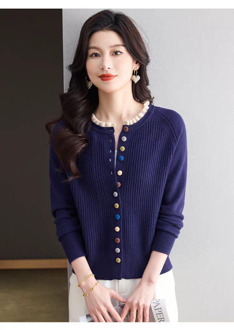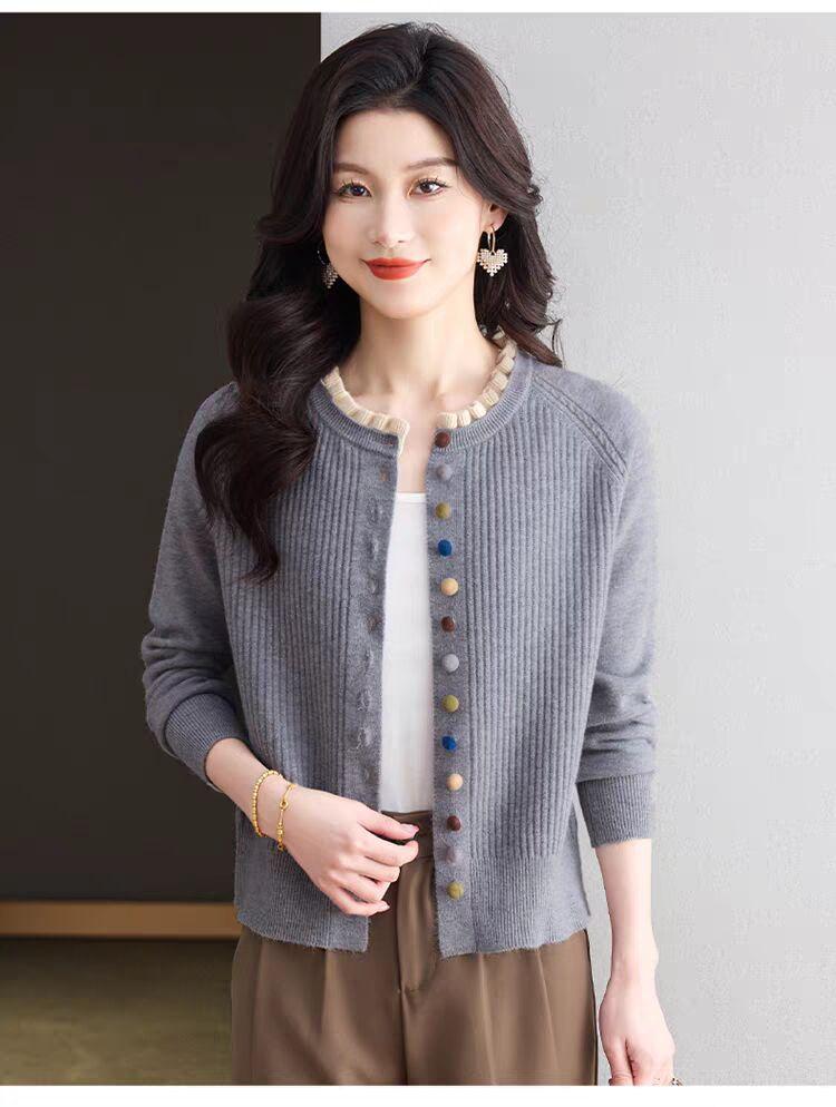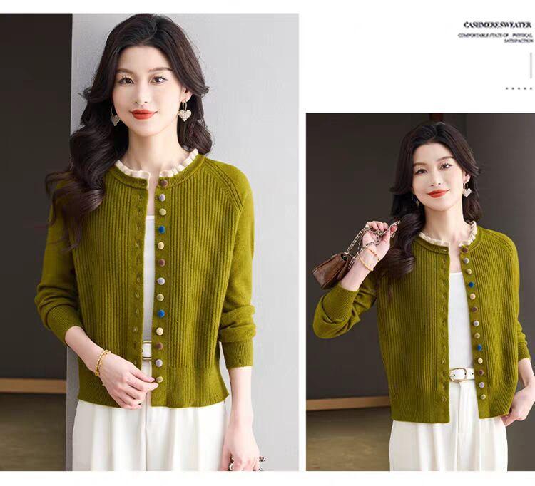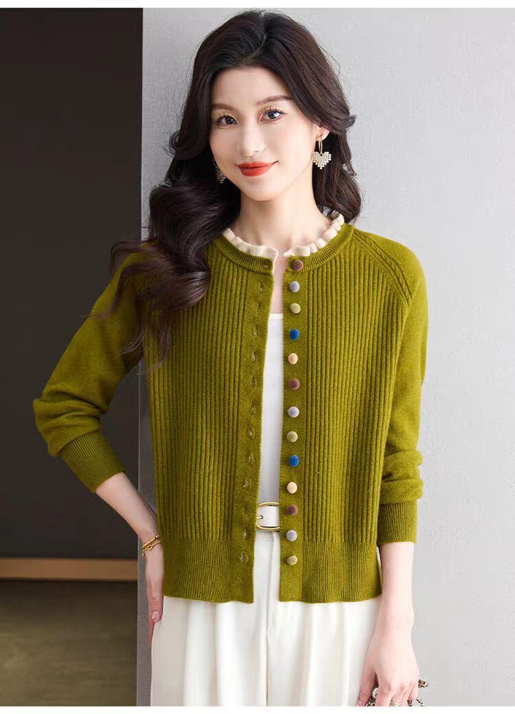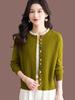 Elegante chaqueta suéter con borde para mujer otoño 2025 nueva parte superior corta cárdigan de punto ropa exterior primavera y otoño