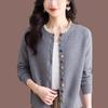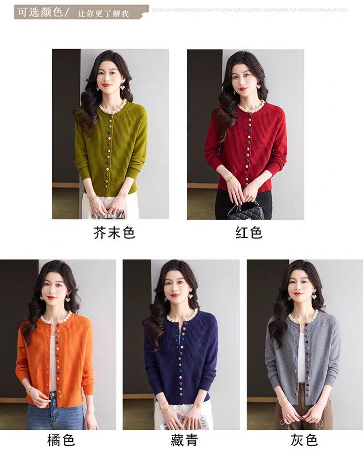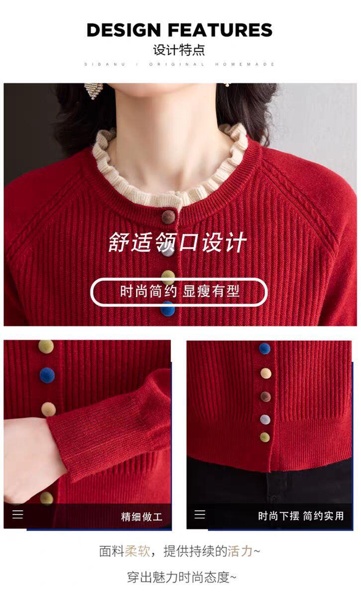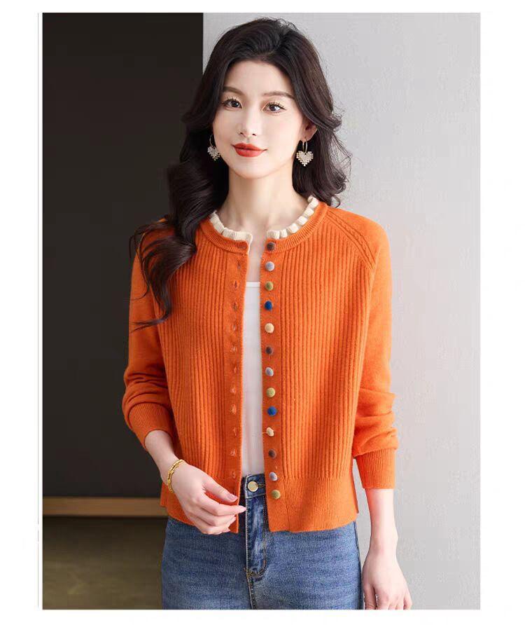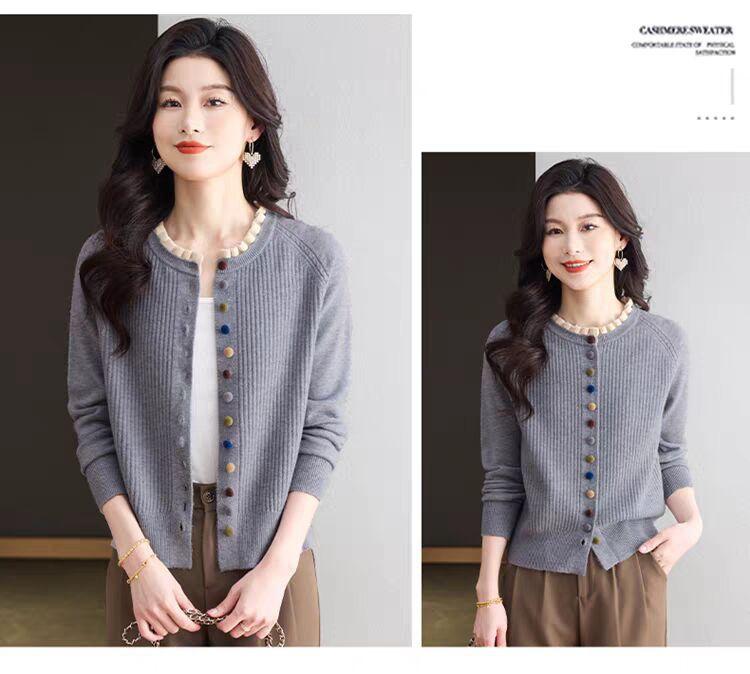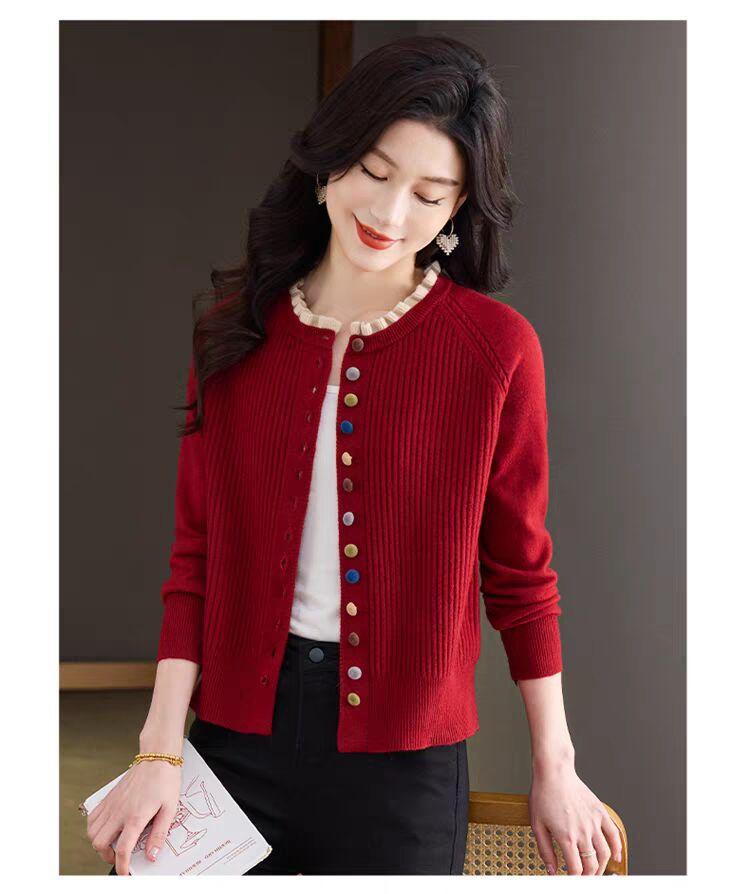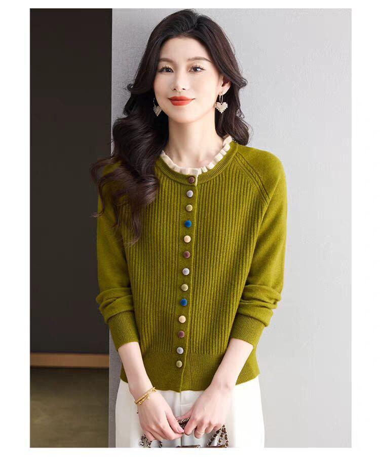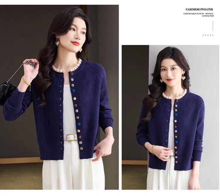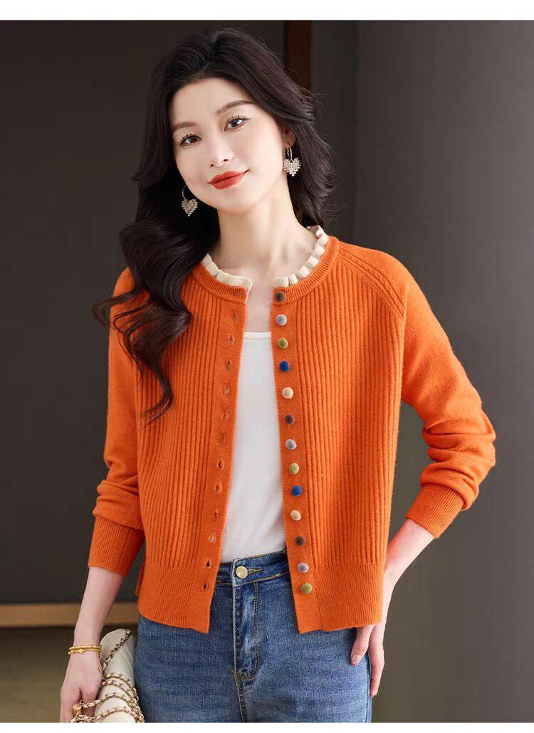 Elegante chaqueta suéter con borde para mujer otoño 2025 nueva parte superior corta cárdigan de punto ropa exterior primavera y otoño