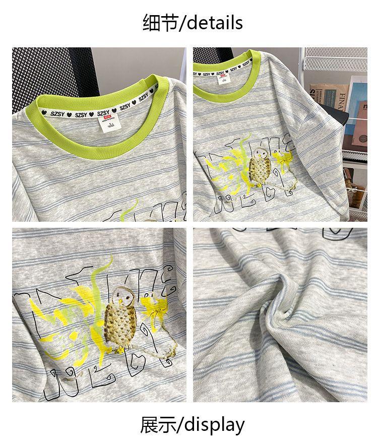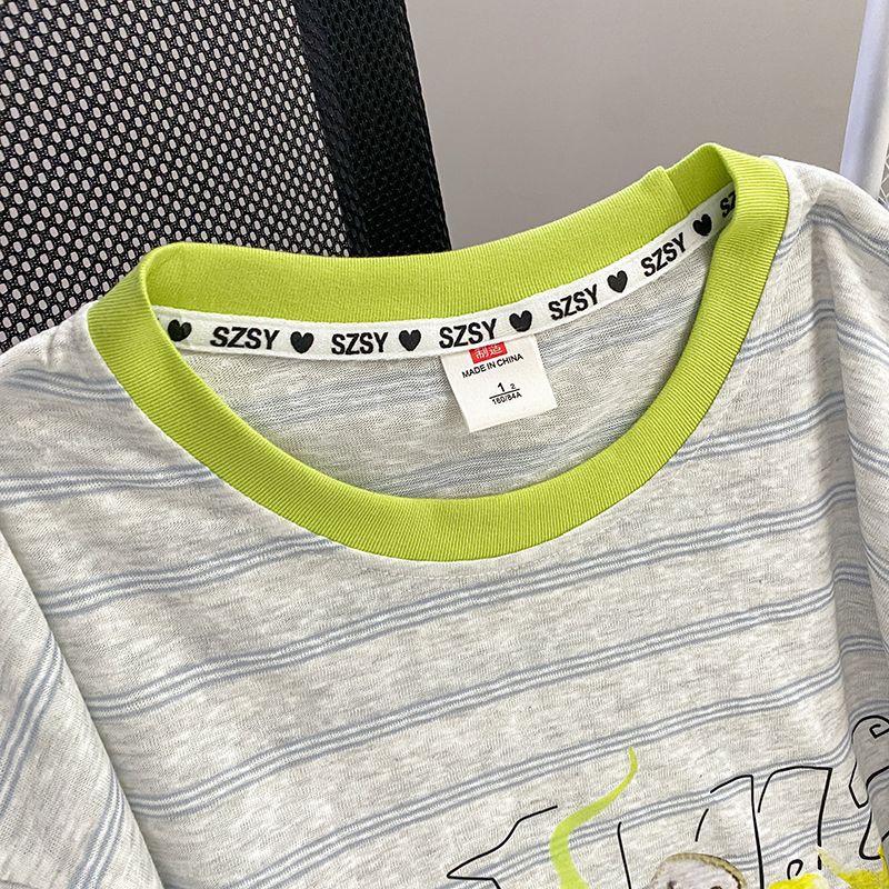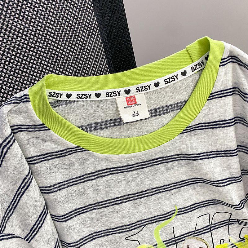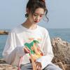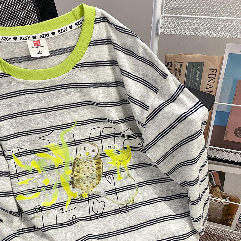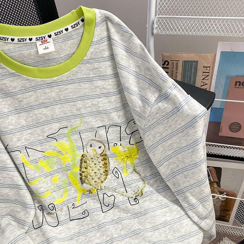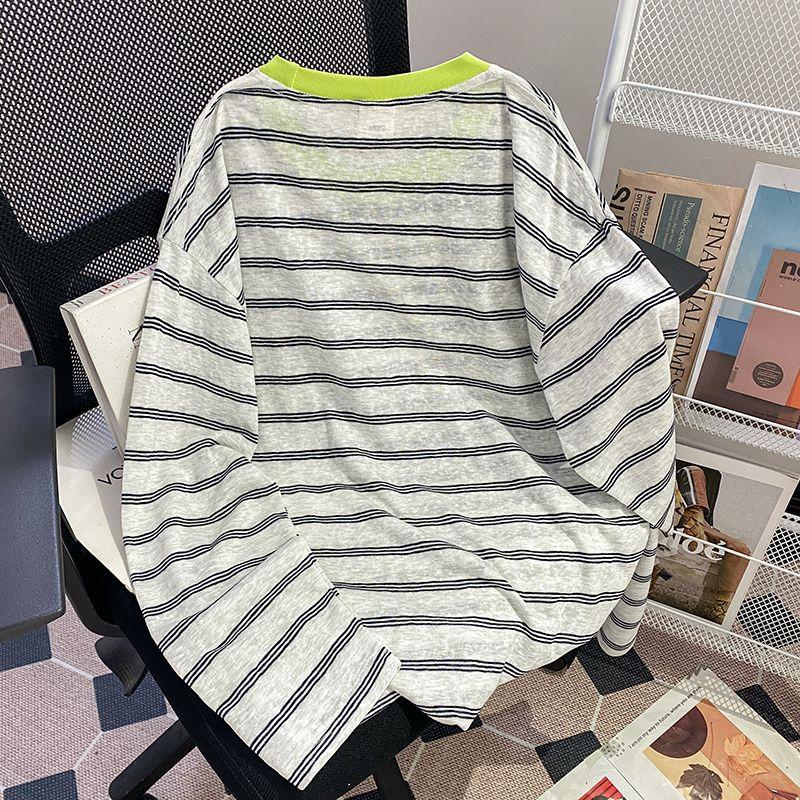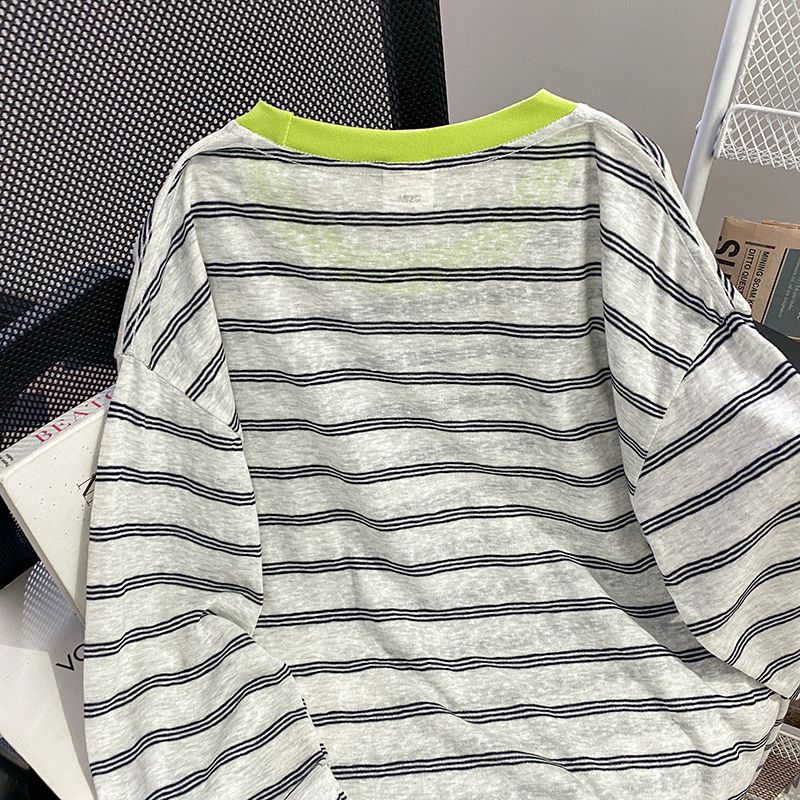 Playera de Manga Larga a Rayas con Bloques de Color y Estampado de Dibujos Animados Retro Streetwear para Mujer Verano Estilo Coreano Reductora de Edad Holgada Top Jersey ins