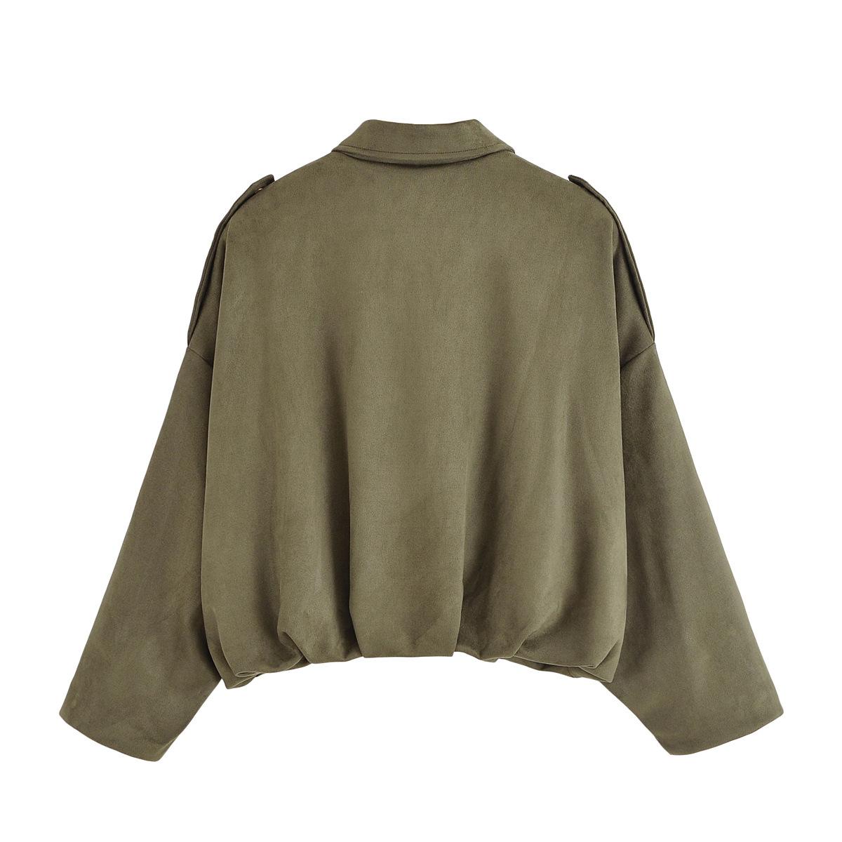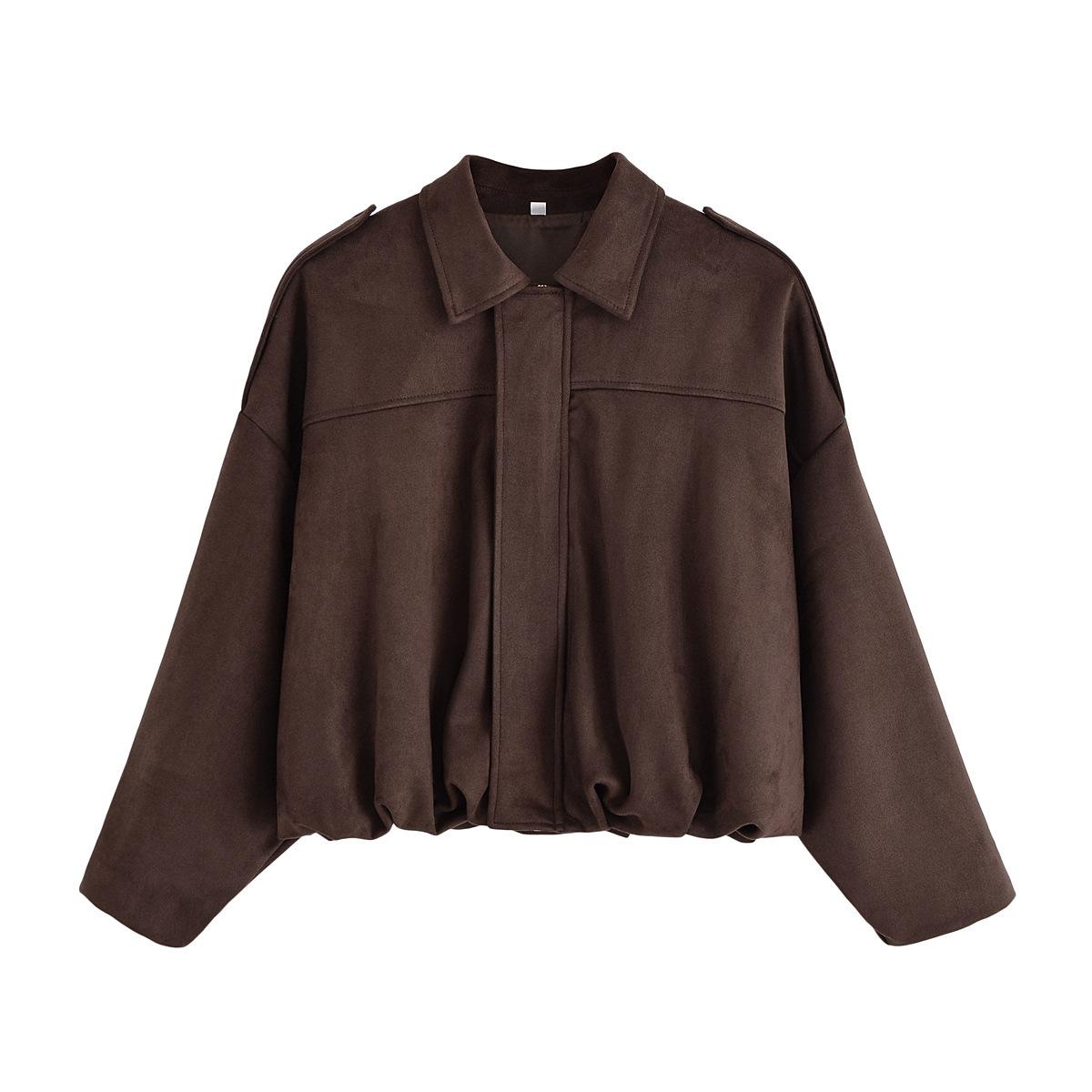 Ropa de mujer transfronteriza al por mayor 2025 nueva chaqueta abrigo de ante sintético nicho holgado manga larga top exterior versátil