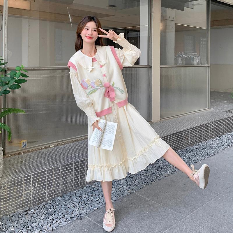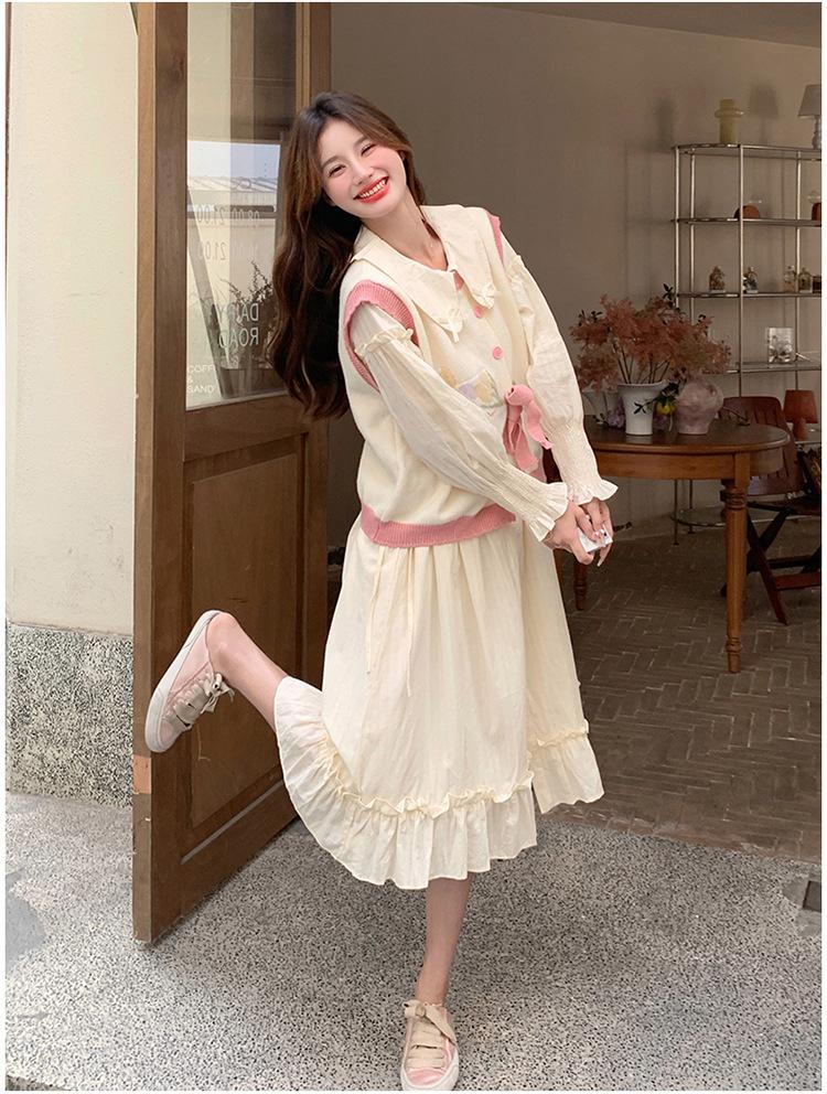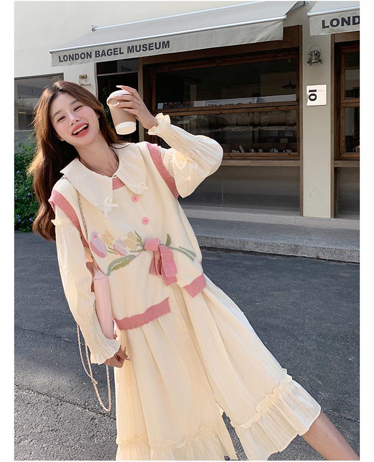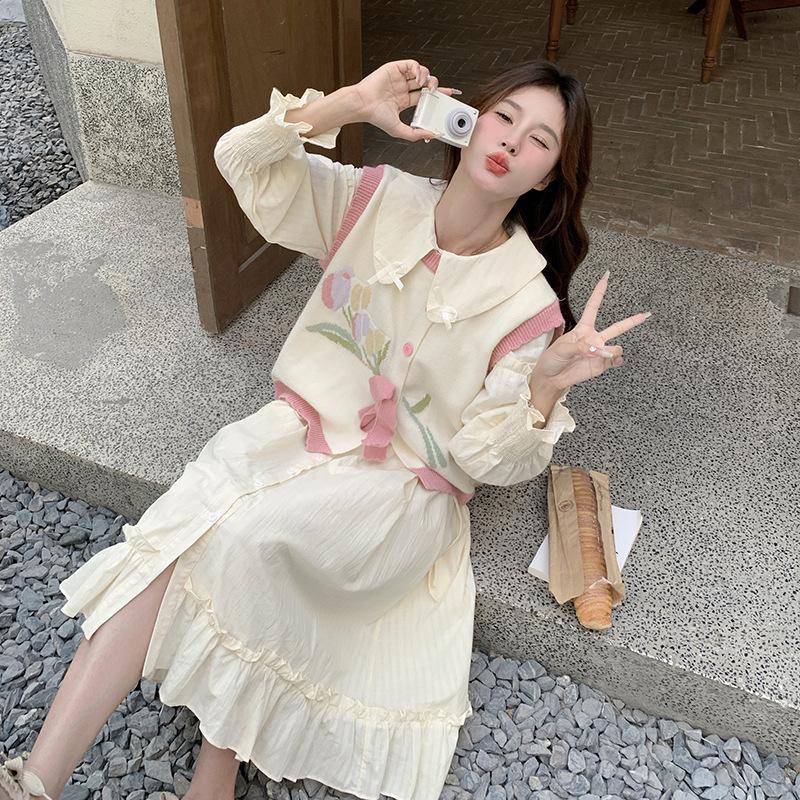 Vestido de dos piezas para mujer primavera y otoño nuevo 2025 realza la calidad chaleco + conjunto de vestido dos piezas
