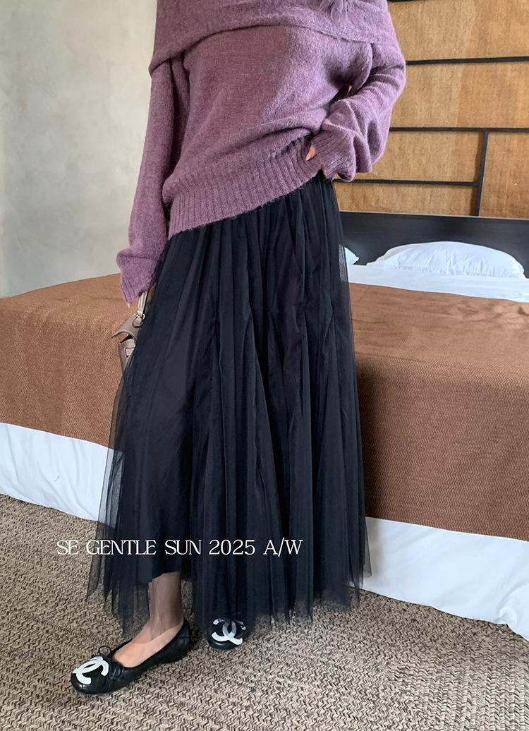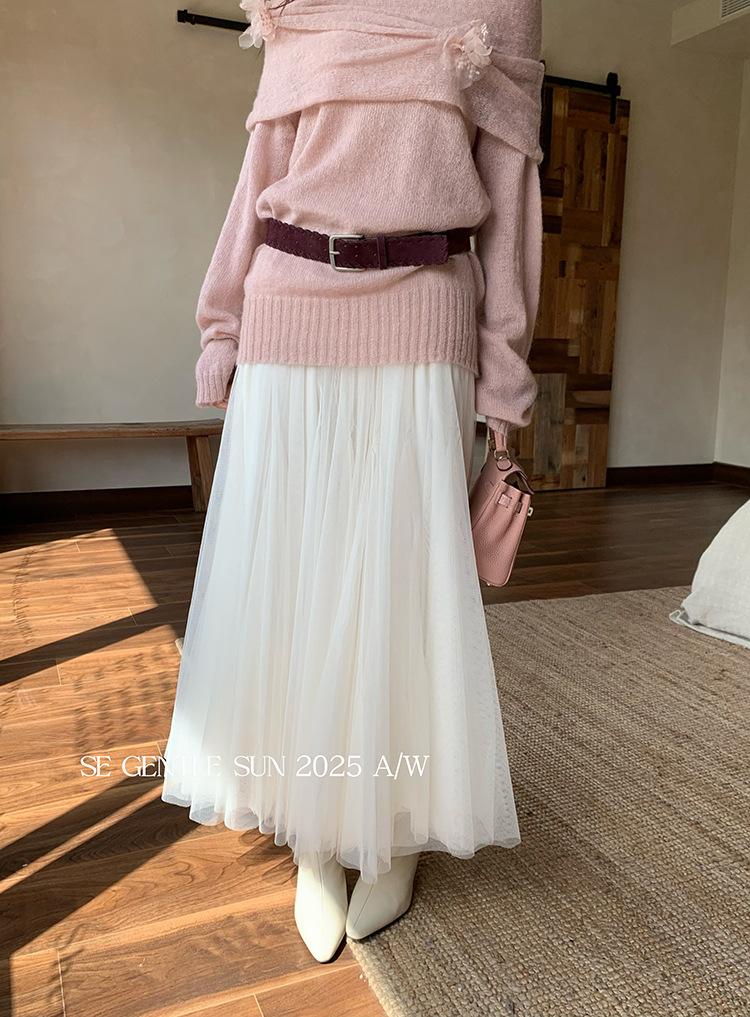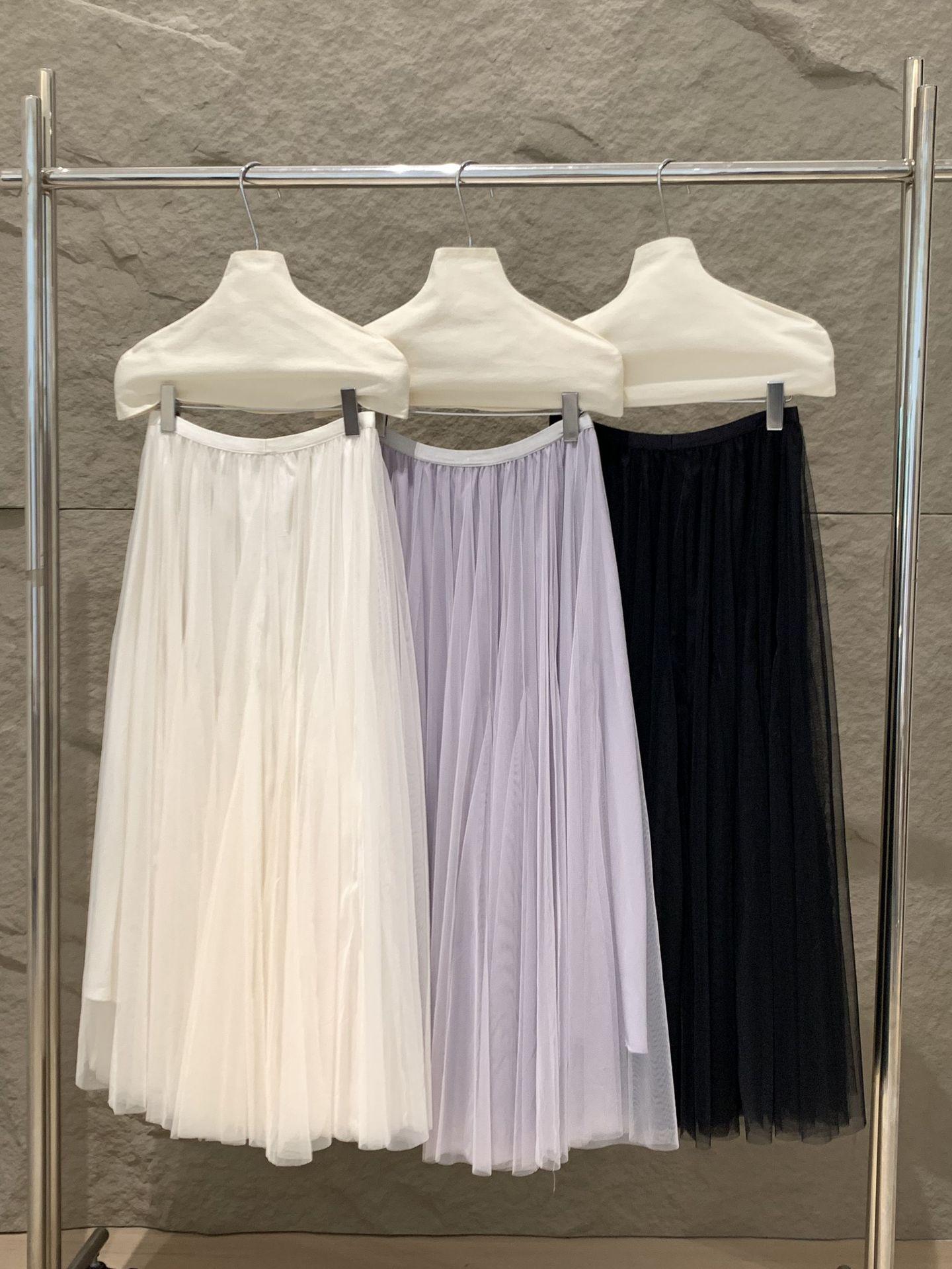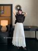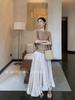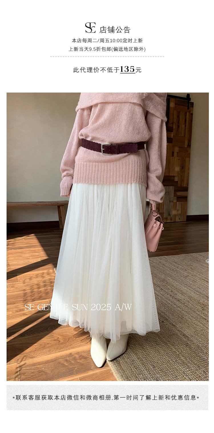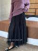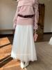 Xiuxixi 2025 Otoño Nuevo Etiqueta Blanca Temperamento Cintura Alta Malla Falda Midi Francesa Gran Vuelo Falda Larga Mujer 85251