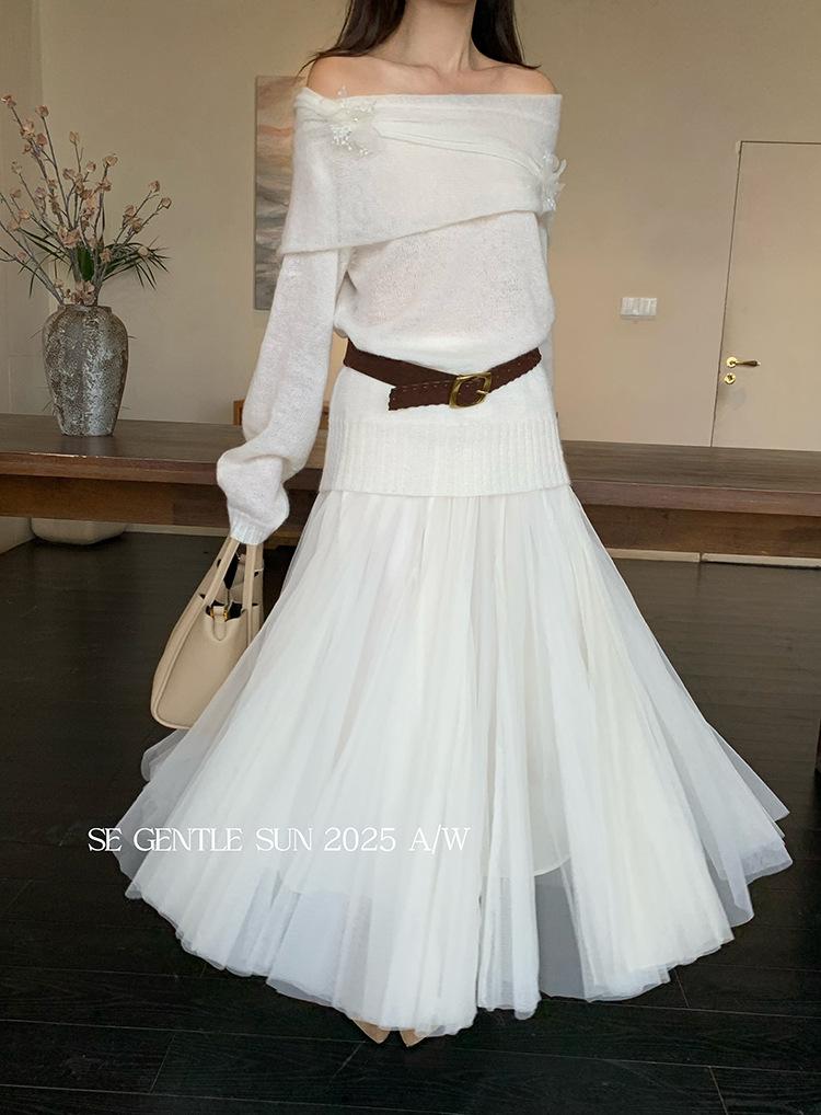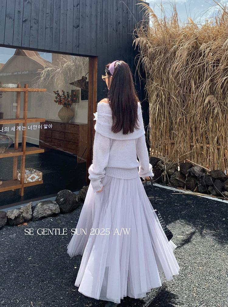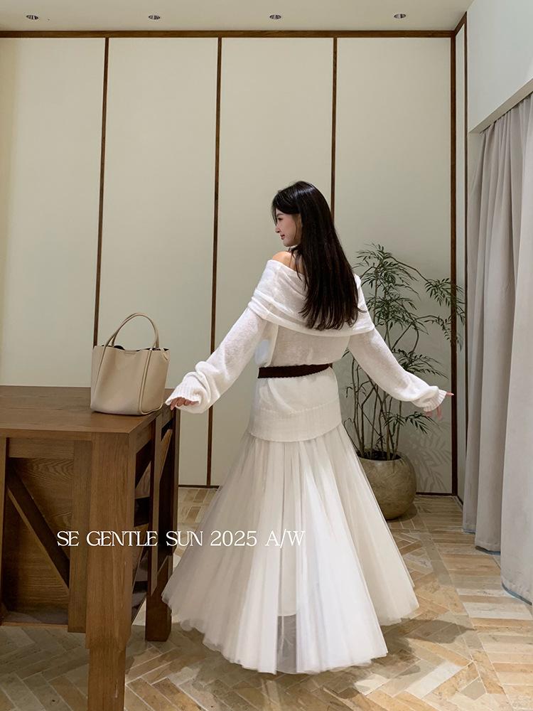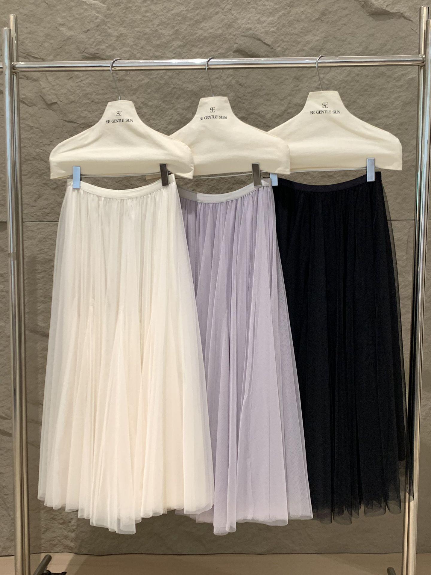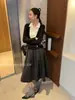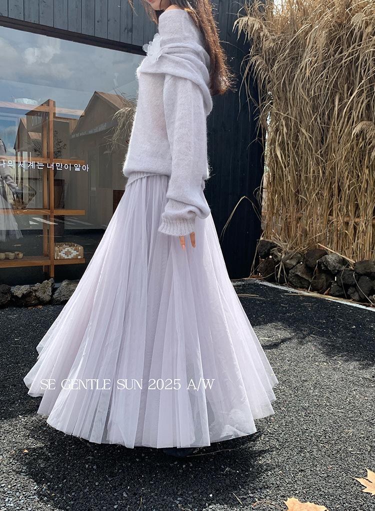 Xiuxixi 2025 Otoño Nuevo Etiqueta Blanca Temperamento Cintura Alta Malla Falda Midi Francesa Gran Vuelo Falda Larga Mujer 85251