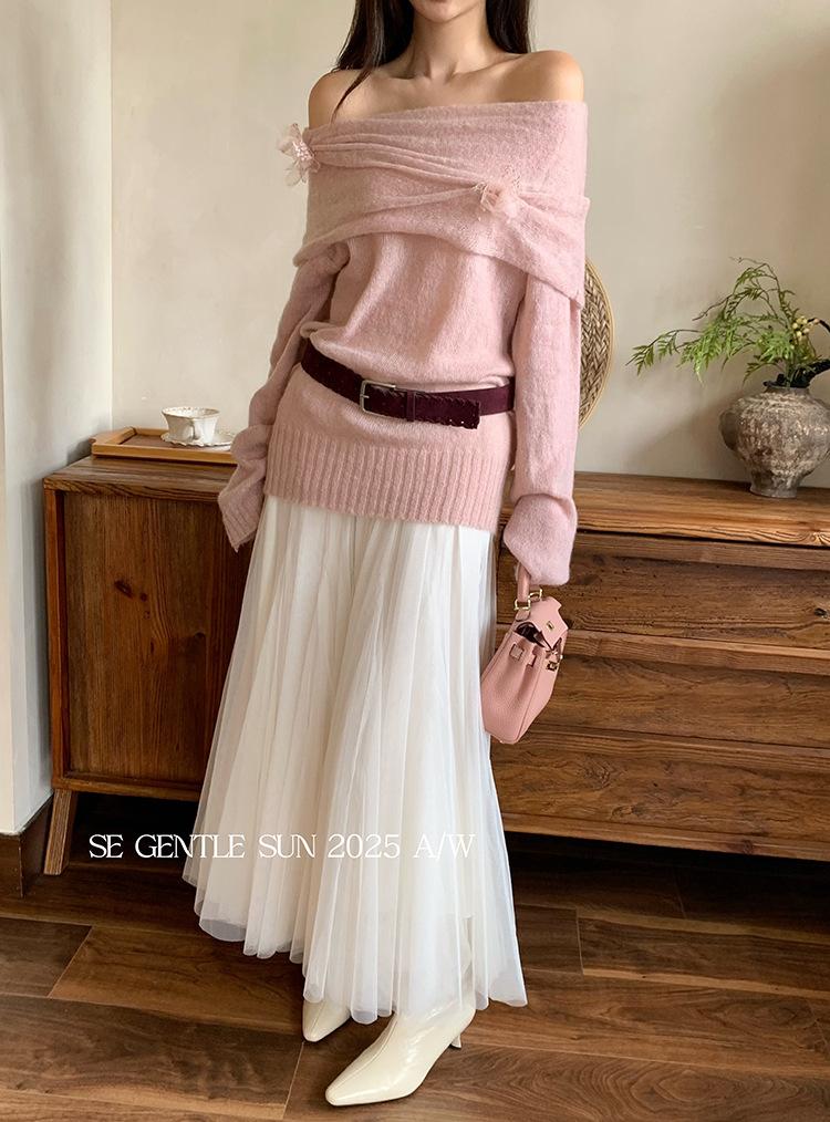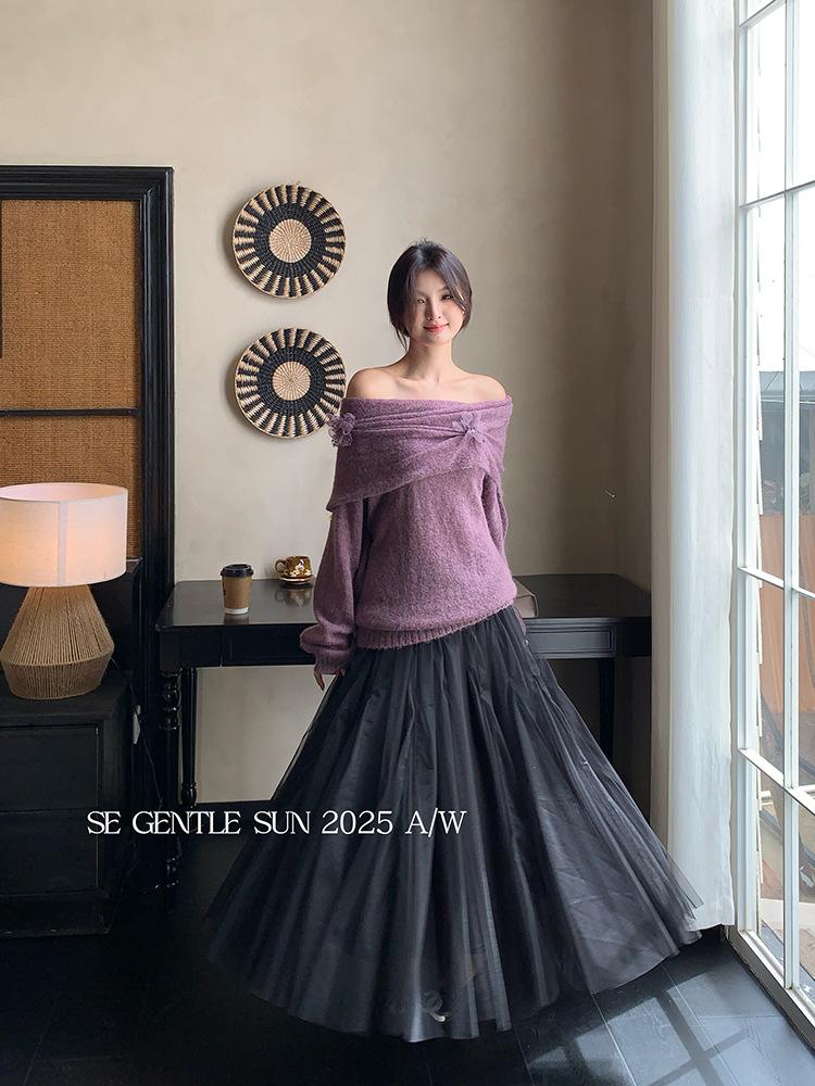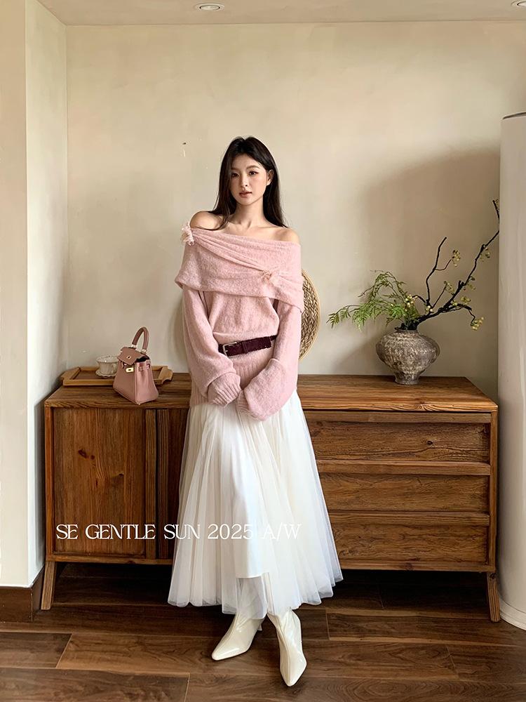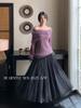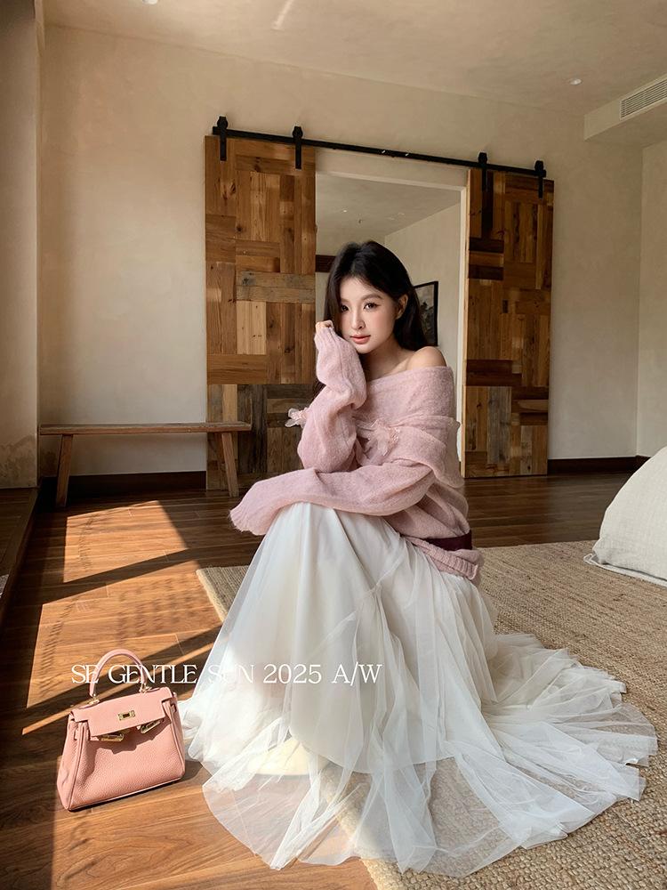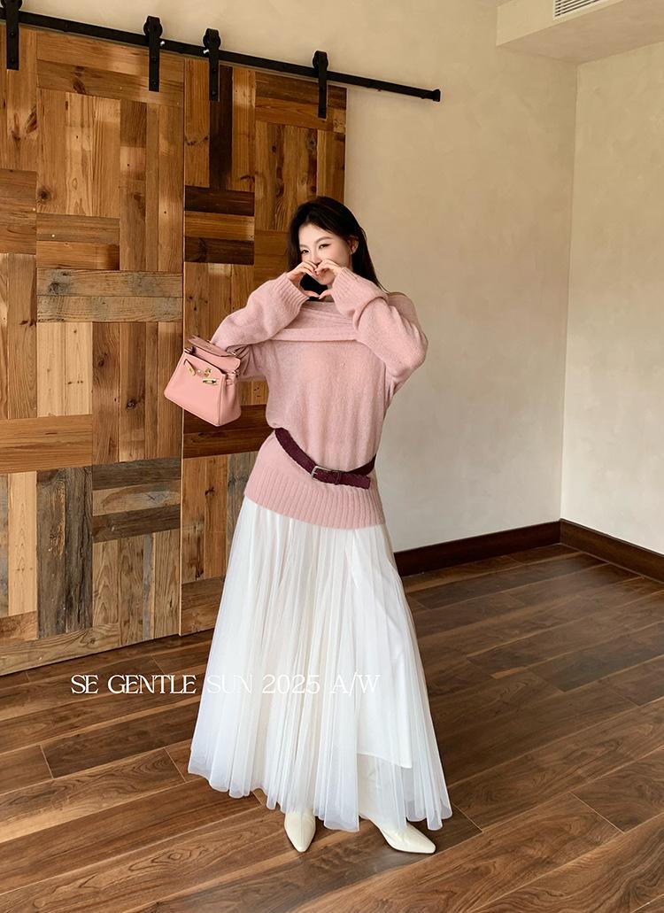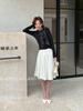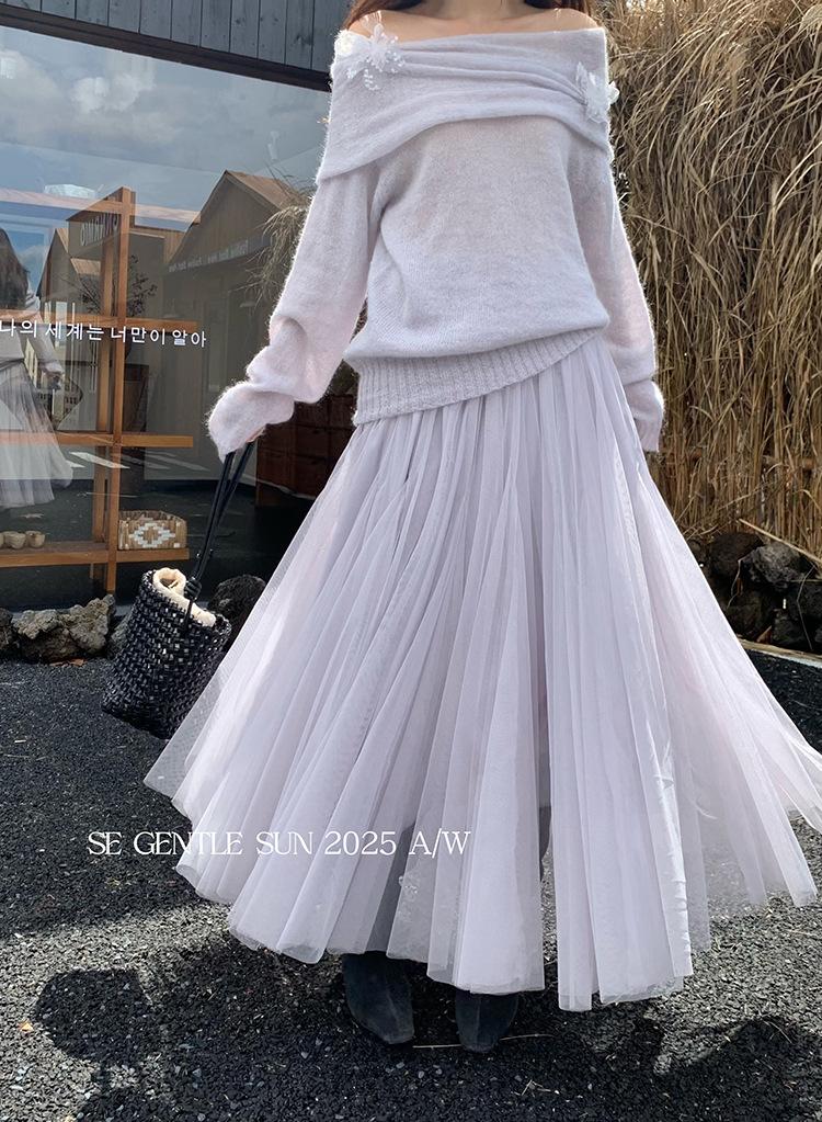 Xiuxixi 2025 Otoño Nuevo Etiqueta Blanca Temperamento Cintura Alta Malla Falda Midi Francesa Gran Vuelo Falda Larga Mujer 85251