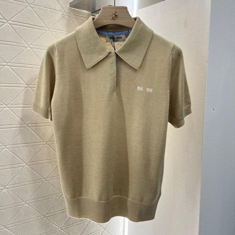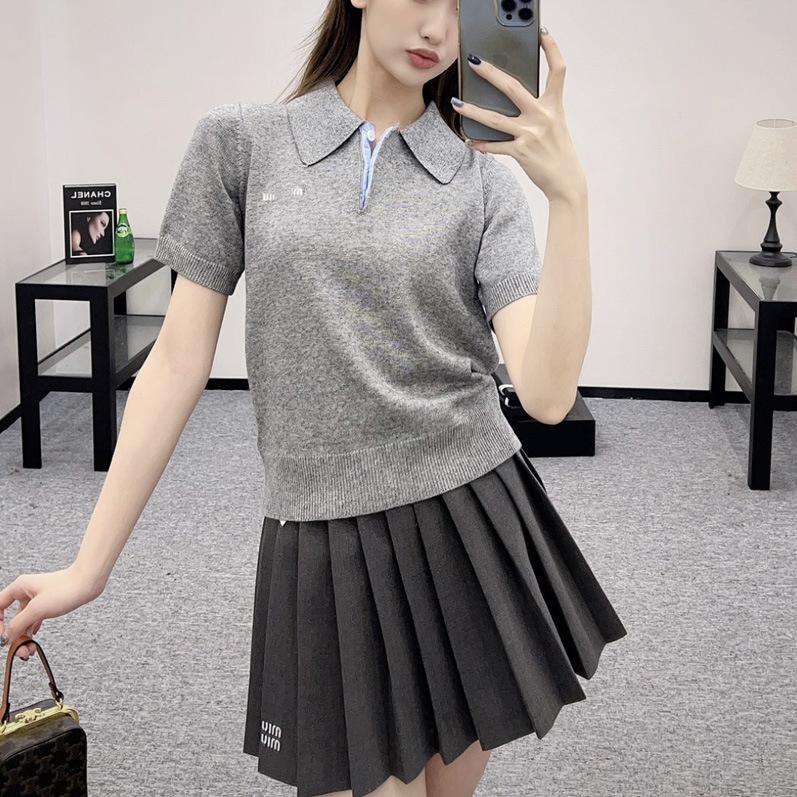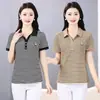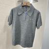 Verano Hombro Recto Polo Cuello Manga Corta Camiseta Mujer Principios de Primavera Estación Europea Cuello Vuelto Punto Letra Top Corto Versátil