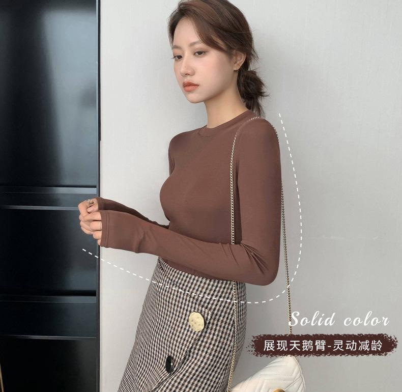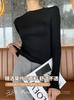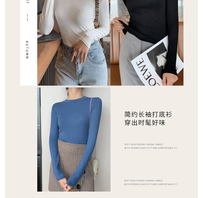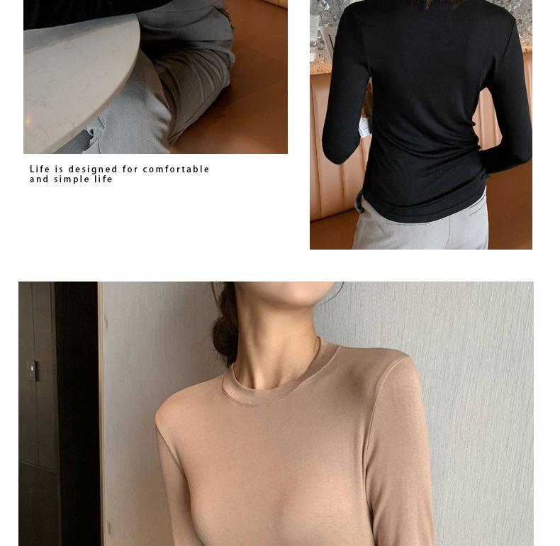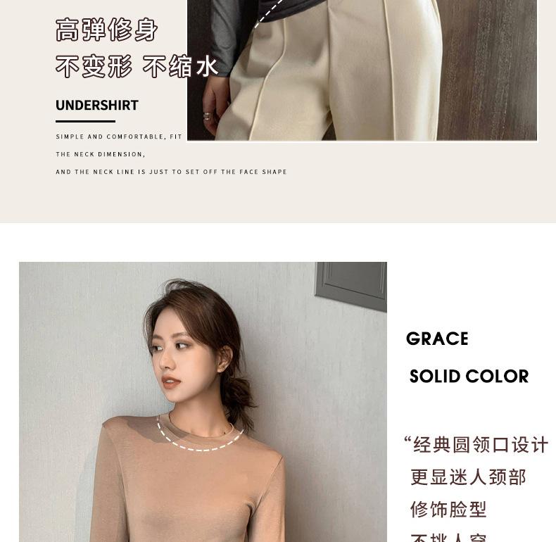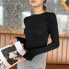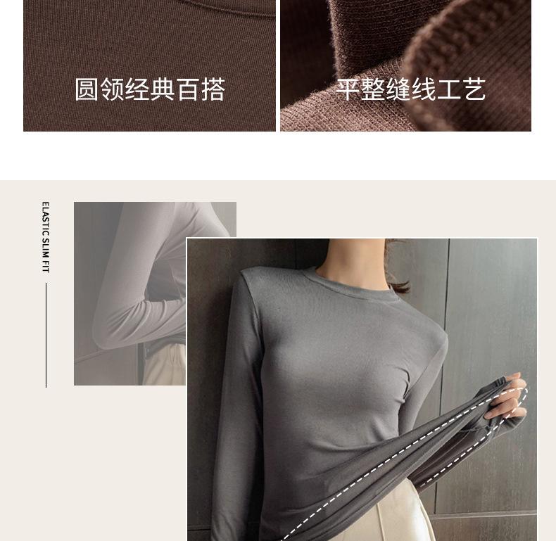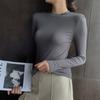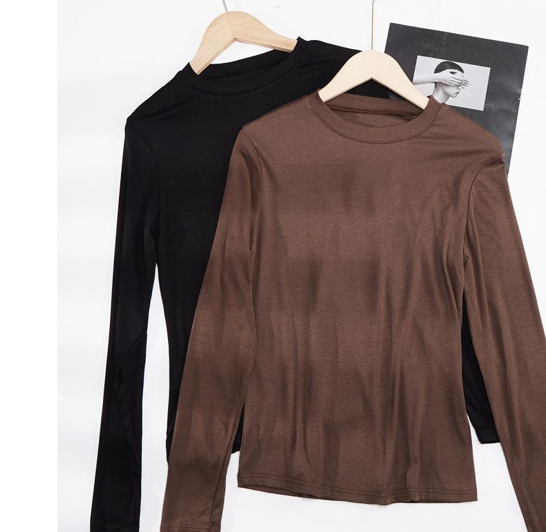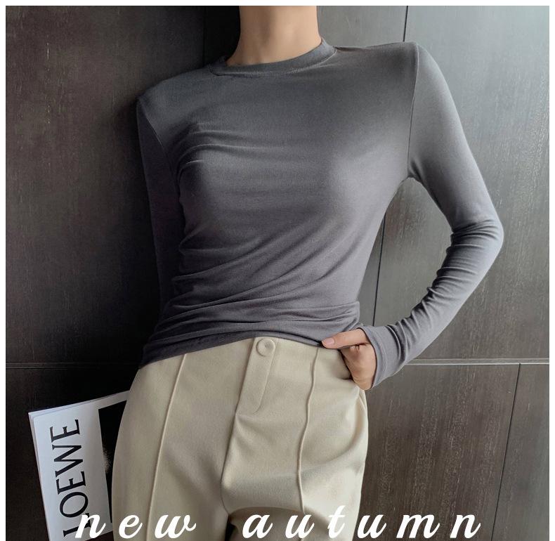 Camiseta Base de Capa Interior de Otoño e Invierno Seleccionada Cuidadosamente para Mujer, Modal de Manga Larga Adelgazante de Color Sólido de Alta Gama con Hombro Recto y Cuello Redondo