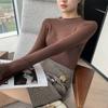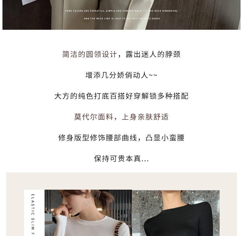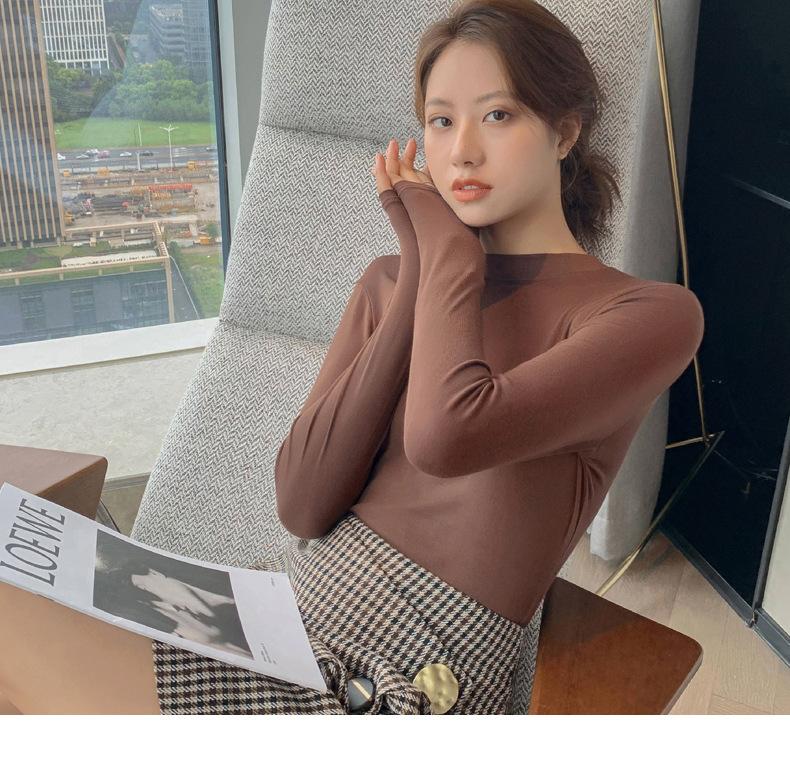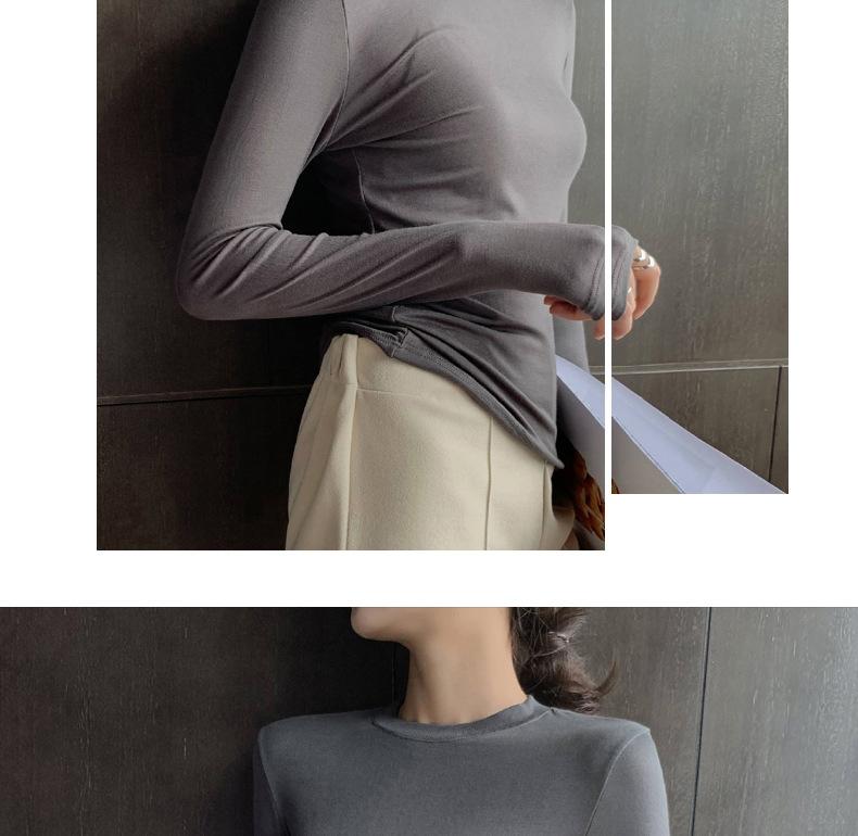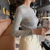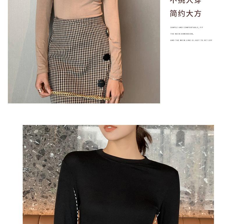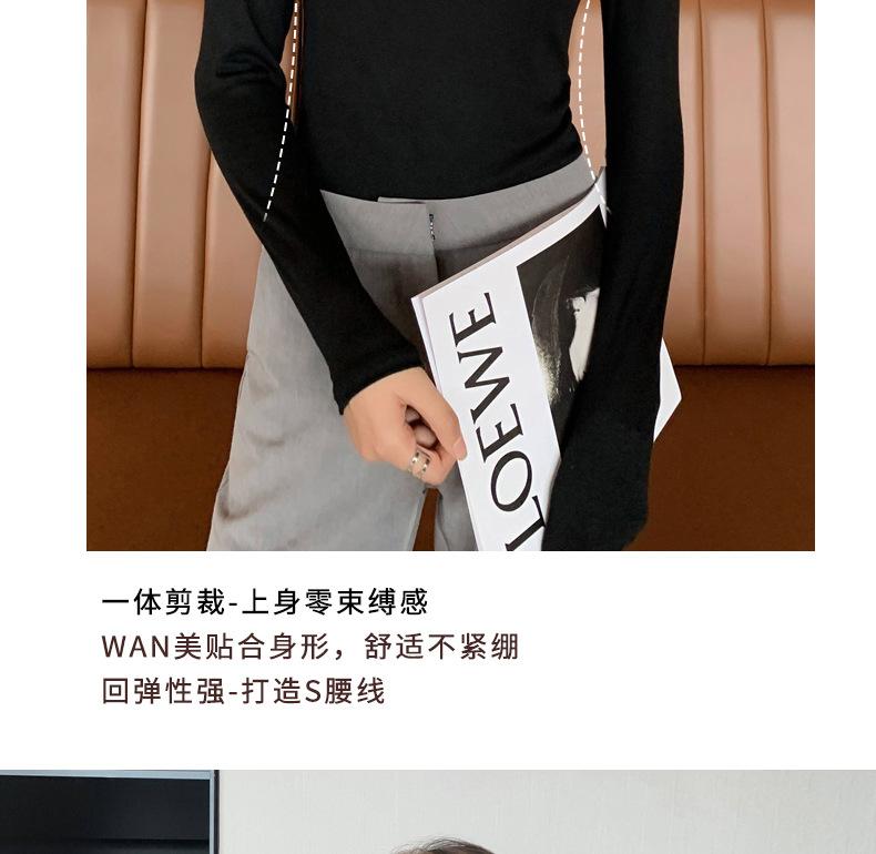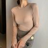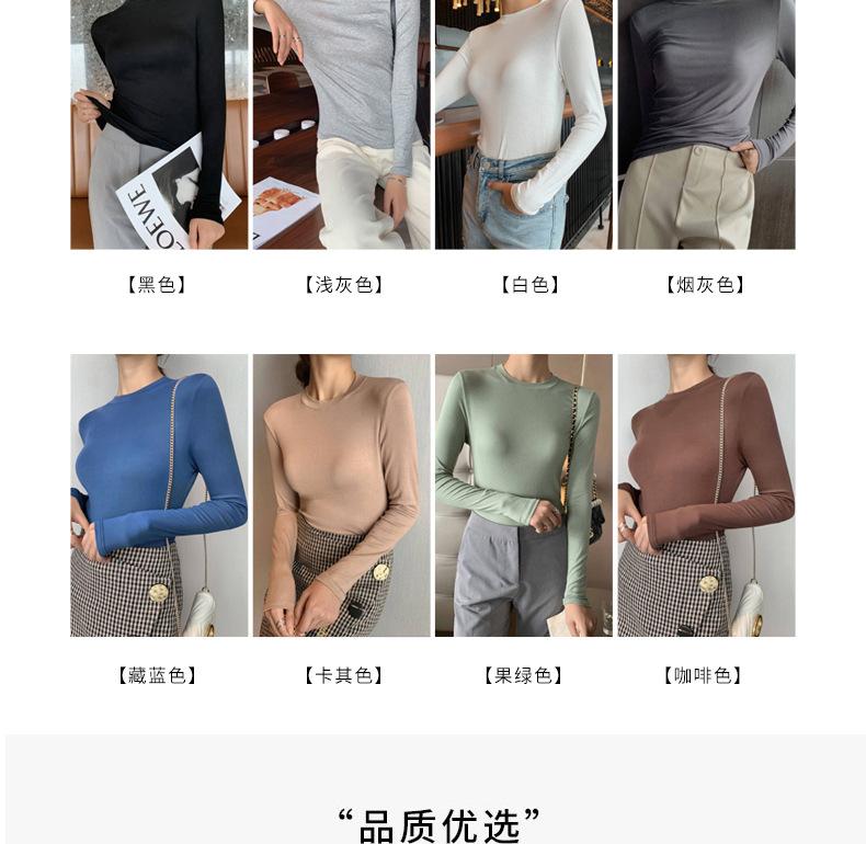 Camiseta Base de Capa Interior de Otoño e Invierno Seleccionada Cuidadosamente para Mujer, Modal de Manga Larga Adelgazante de Color Sólido de Alta Gama con Hombro Recto y Cuello Redondo