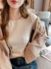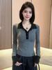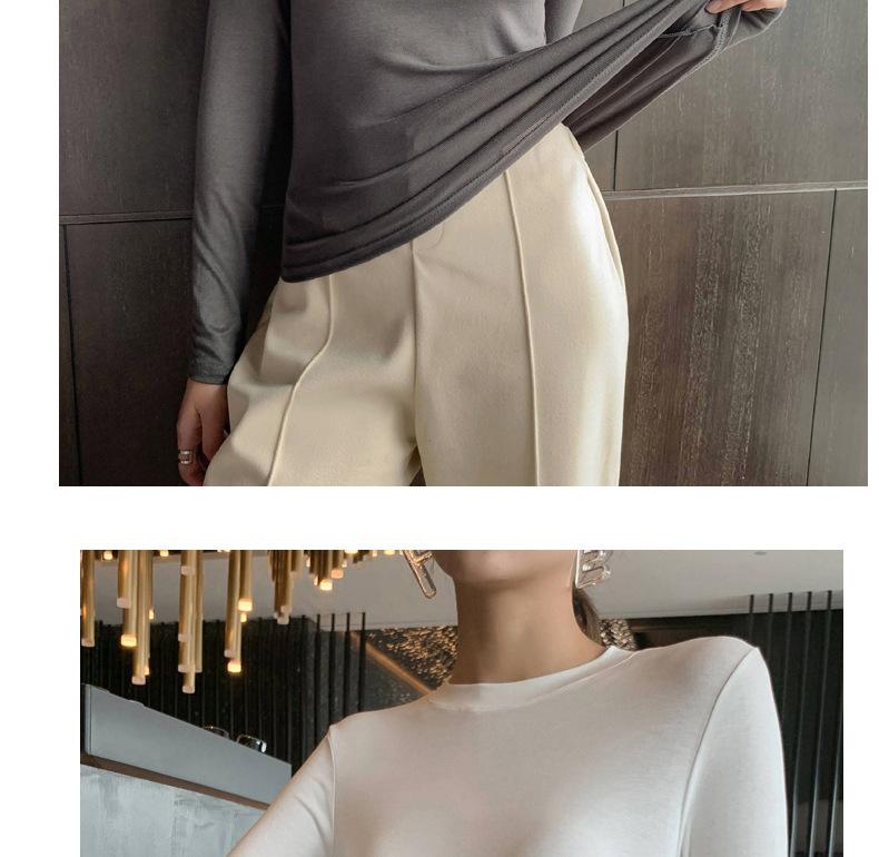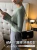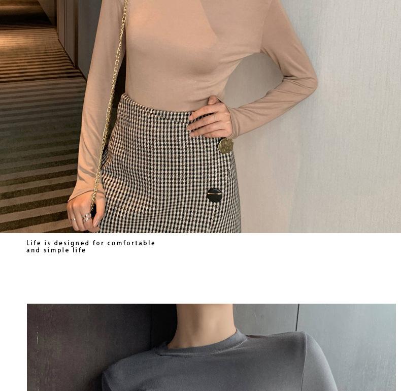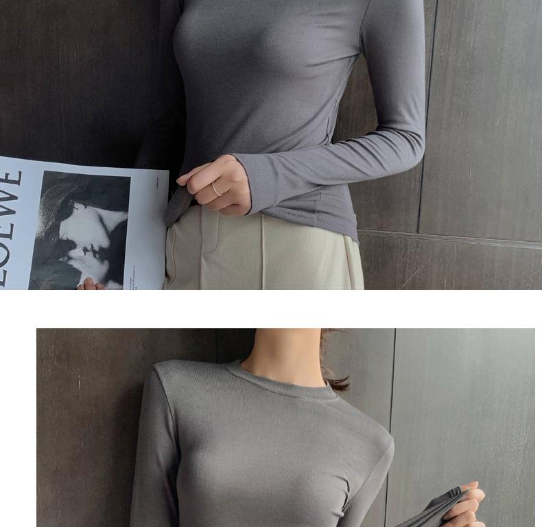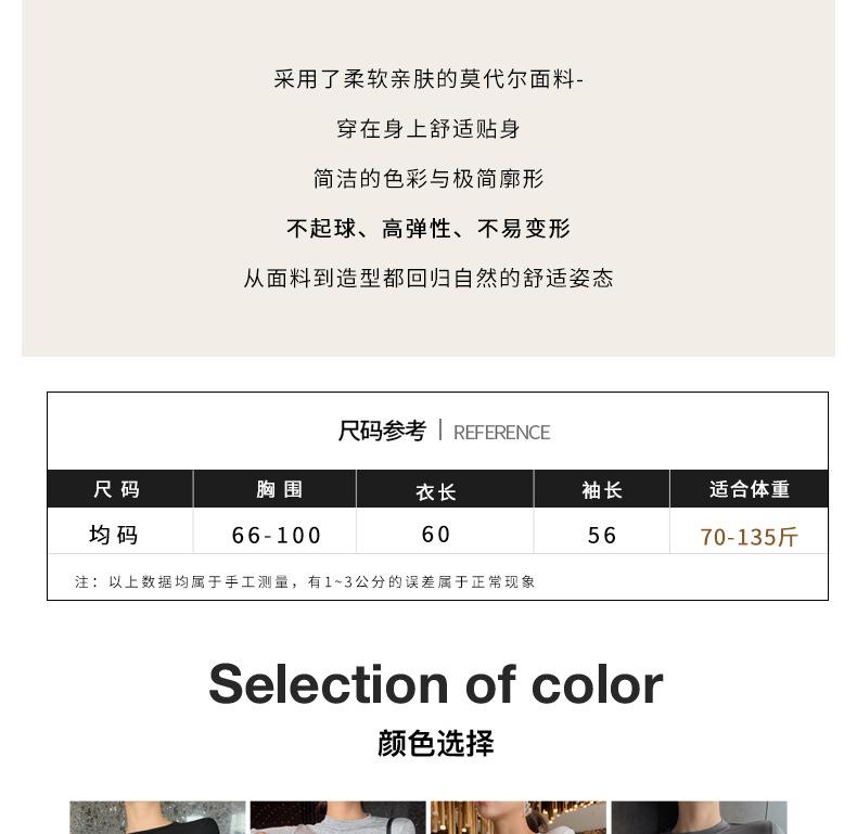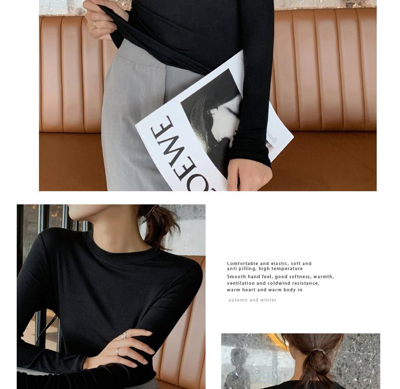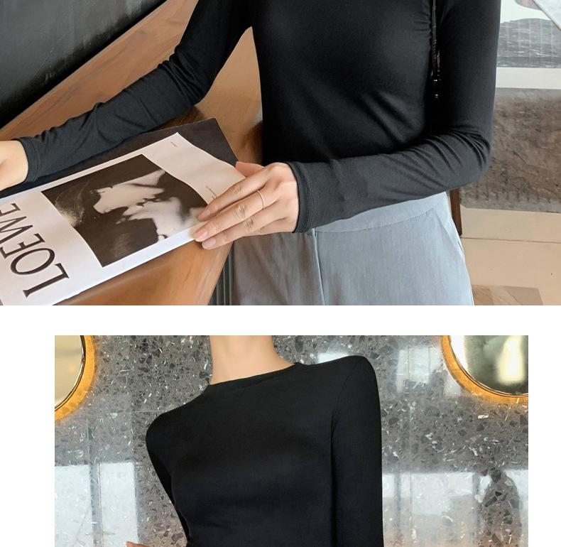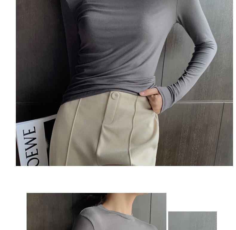 Camiseta Base de Capa Interior de Otoño e Invierno Seleccionada Cuidadosamente para Mujer, Modal de Manga Larga Adelgazante de Color Sólido de Alta Gama con Hombro Recto y Cuello Redondo