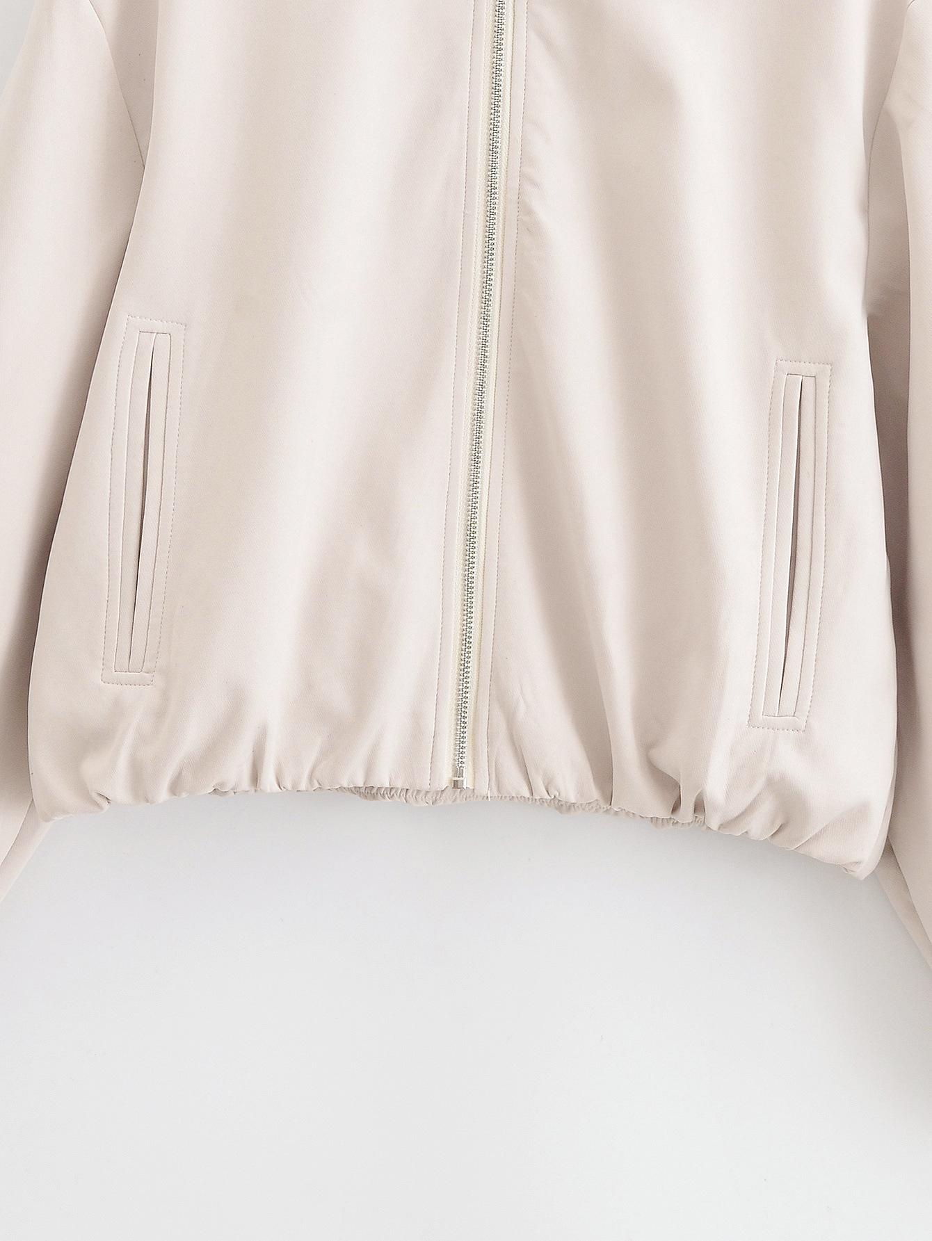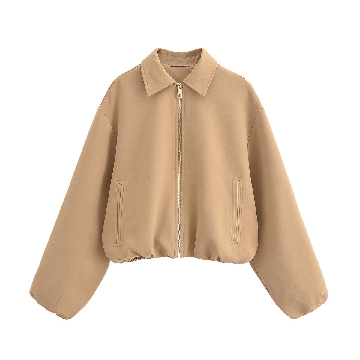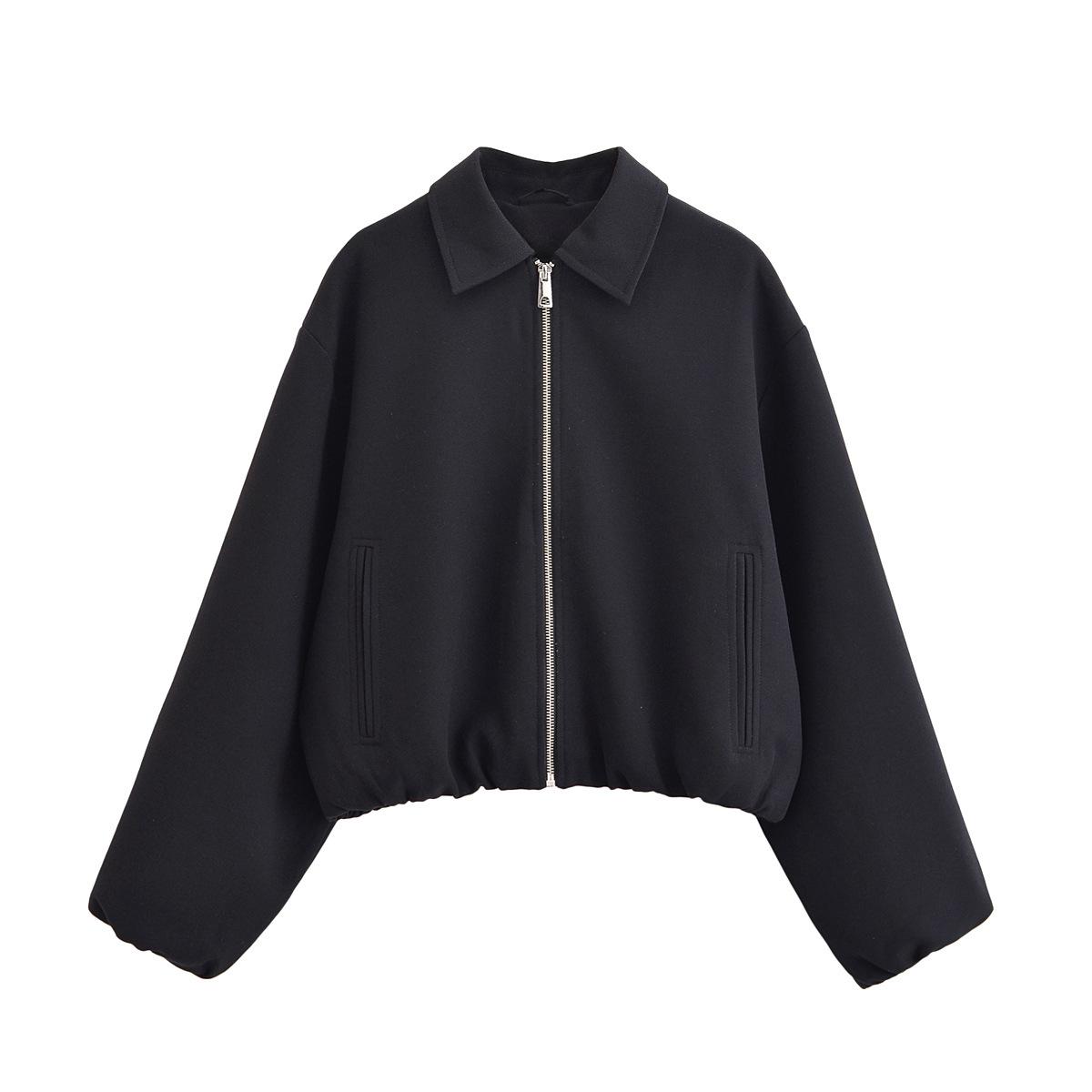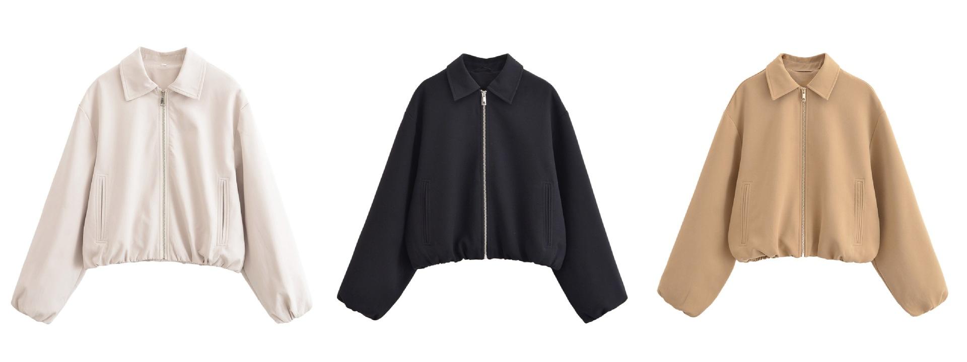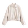 Roupas Femininas de Comércio Exterior 2025 Outono Estilo Europeu e Americano Lapela Manga Longa Cor Sólida Jaqueta com Zíper Casaco Uniforme de Beisebol Mulheres A711608F