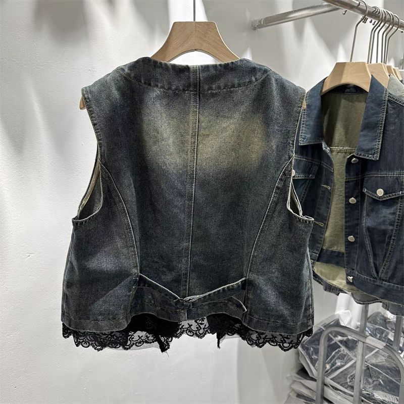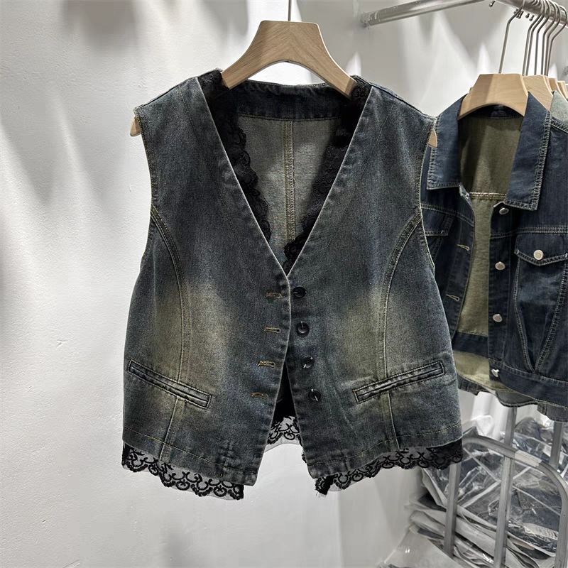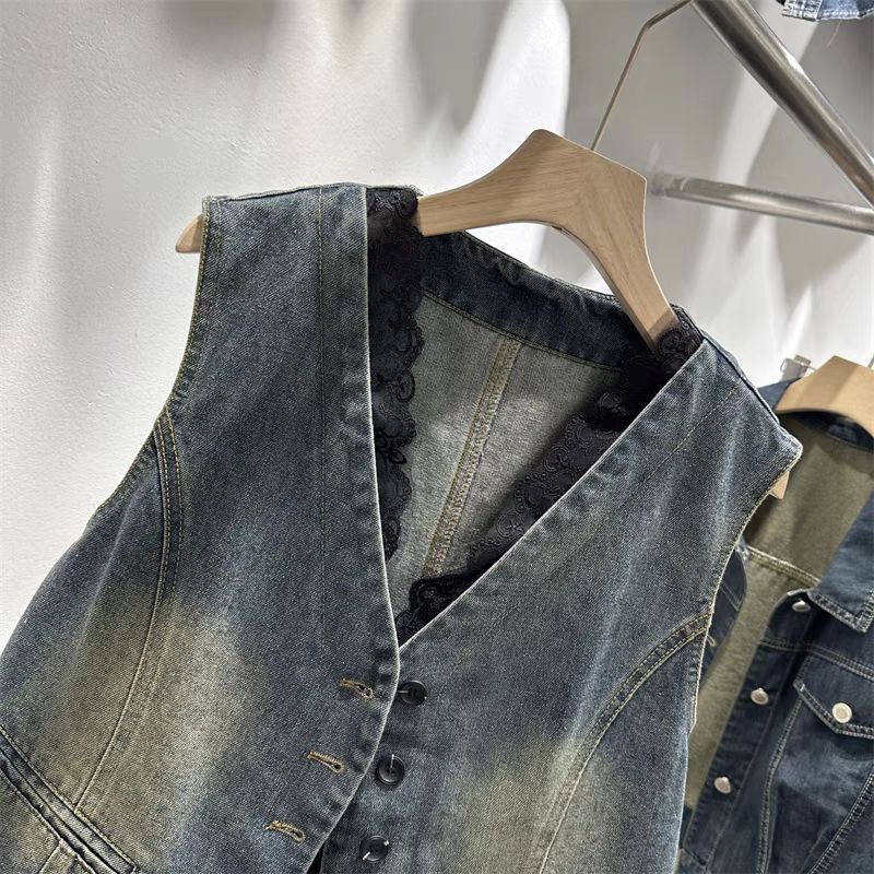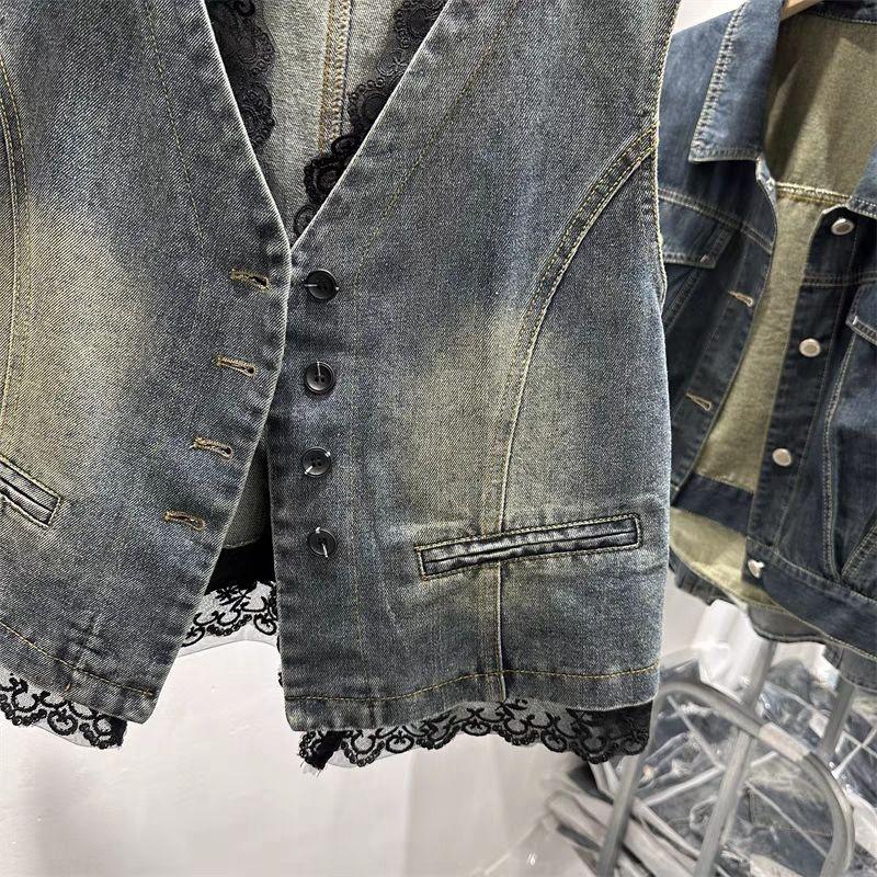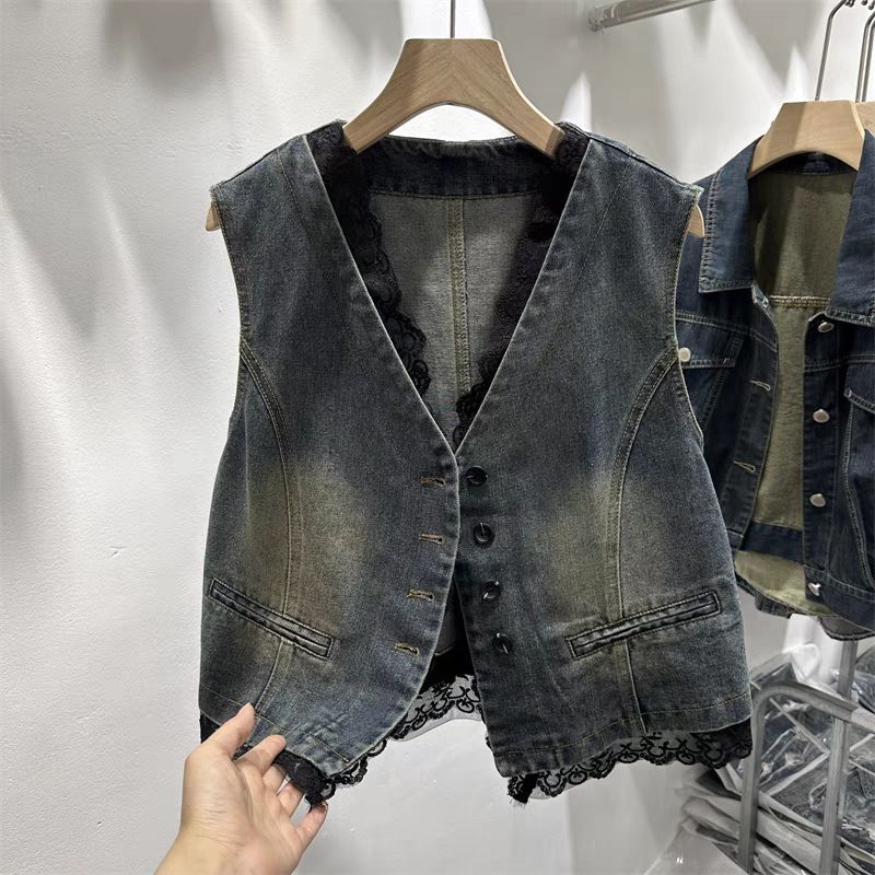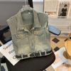 Chaleco de mezclilla Chaleco de moda 2025 Nuevo abrigo Lavado Verano Retro Sin mangas Top corto Spandex