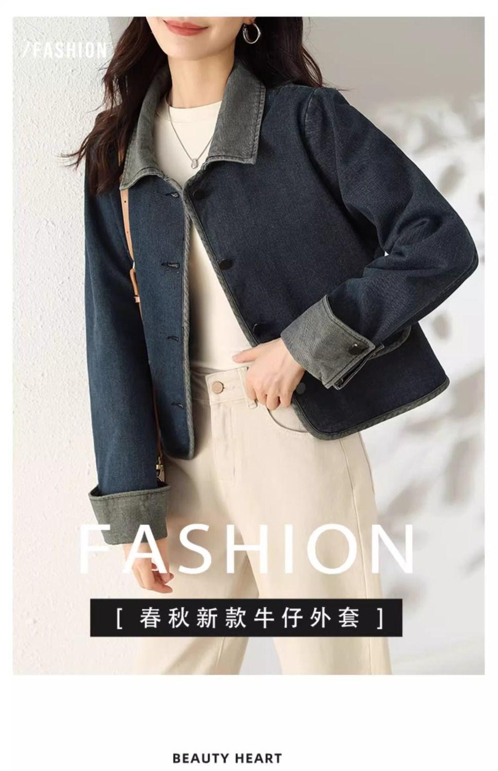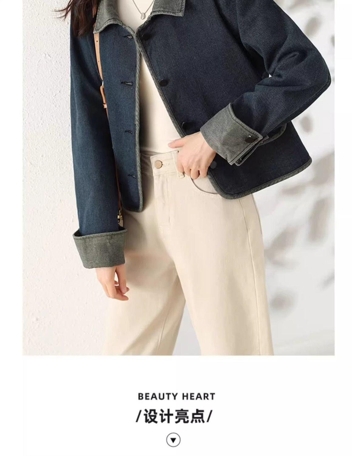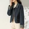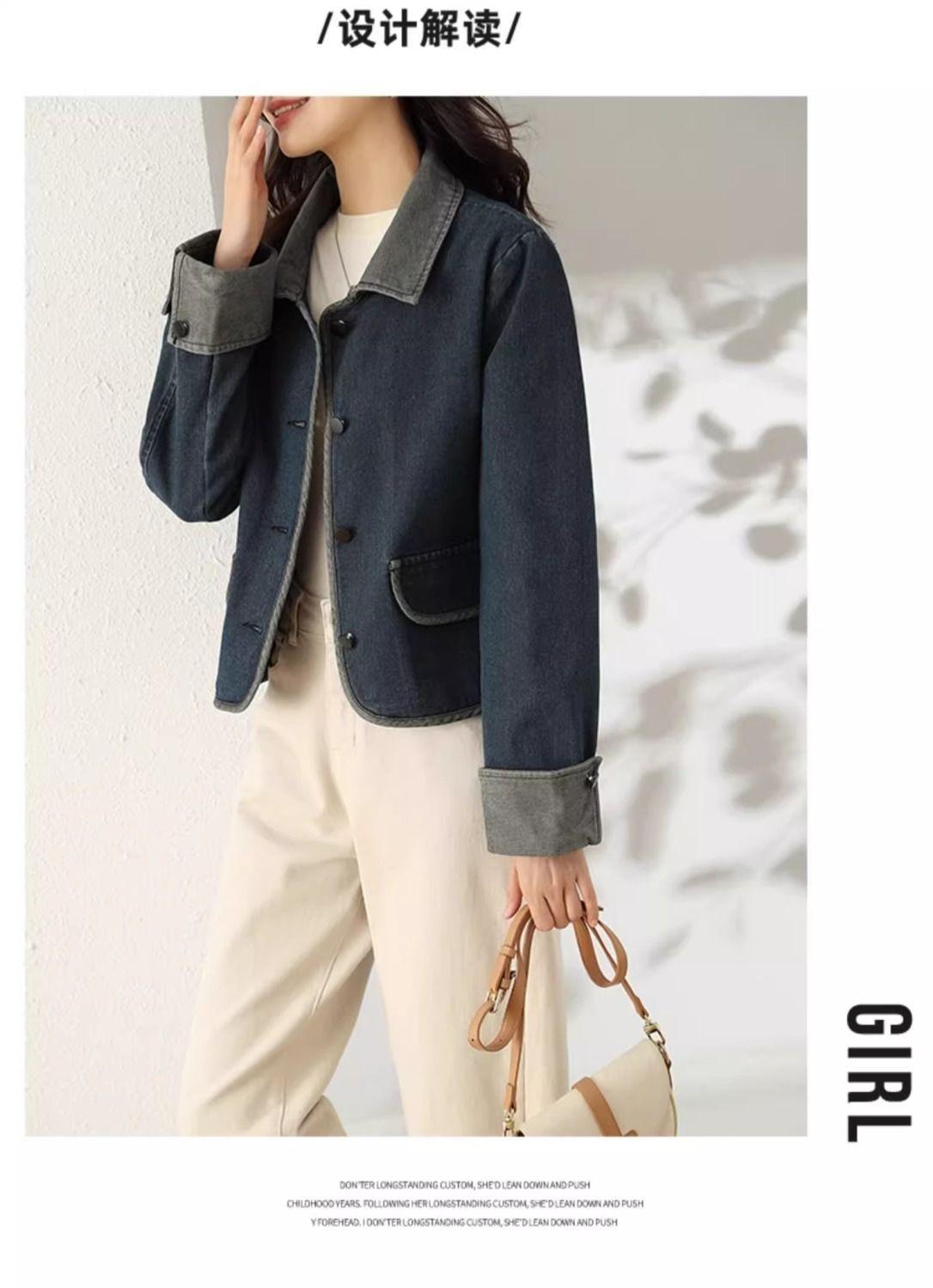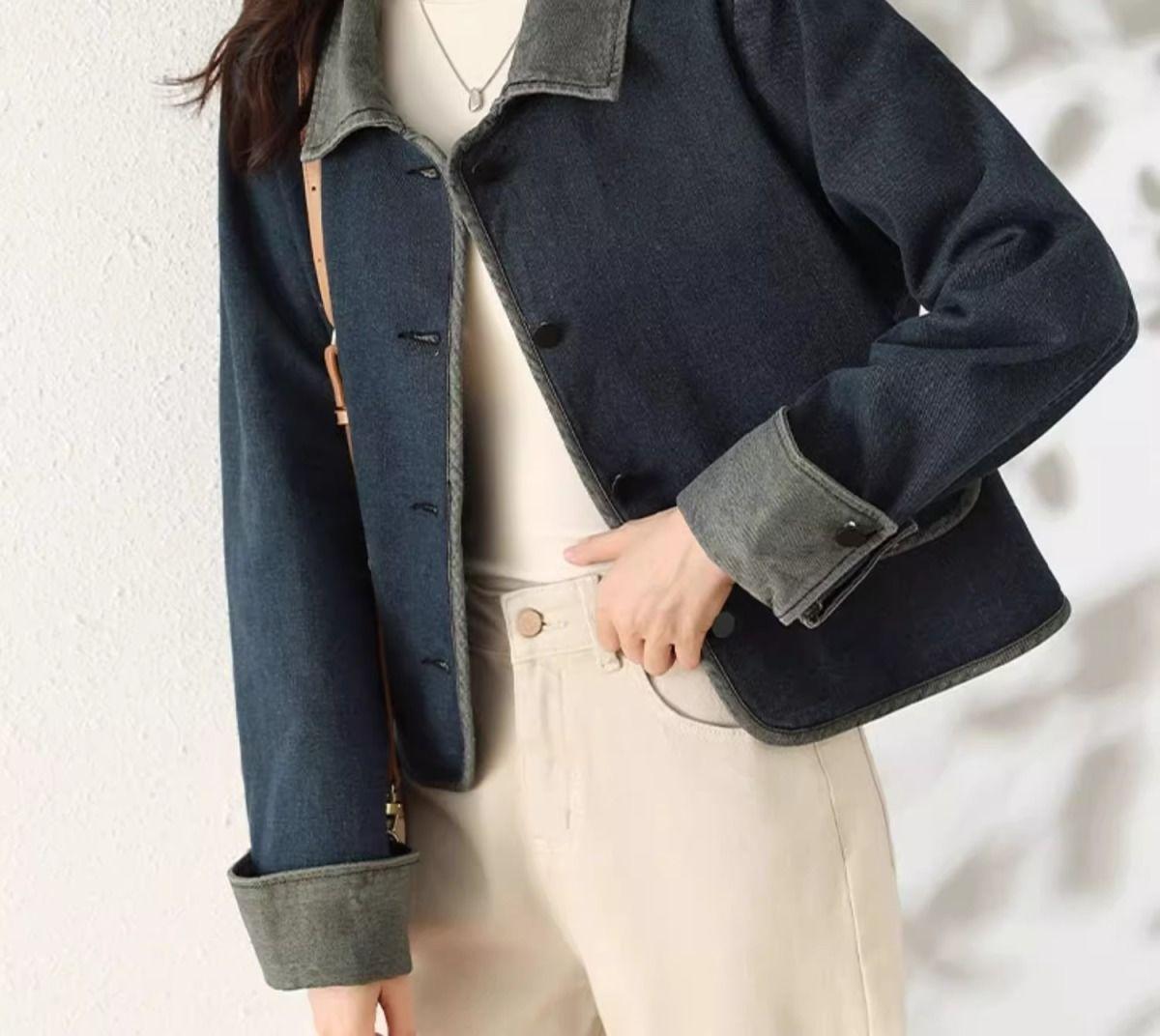 Chaqueta Solapa 2025 Top Temperamento Retro Diseño Casual Manga Larga Bloque de Color Sensación Otoñal Nuevo Estilo Chaqueta de Mezclilla Mujer