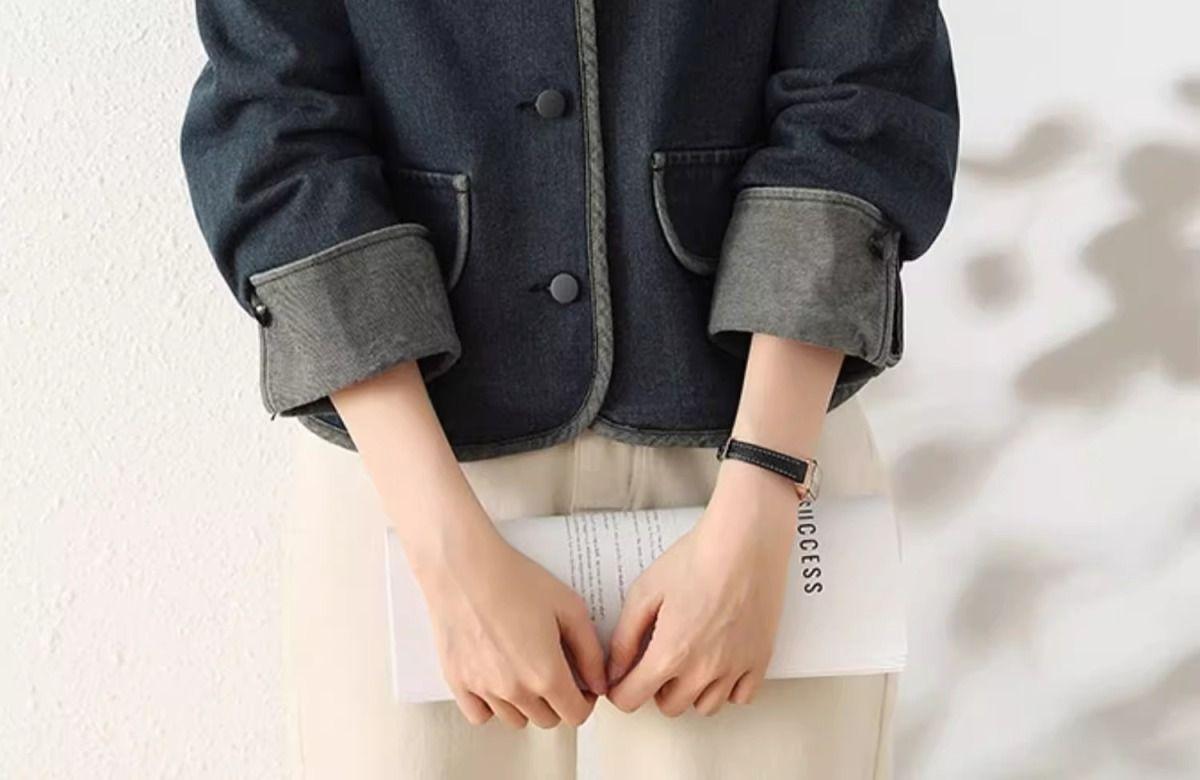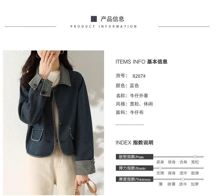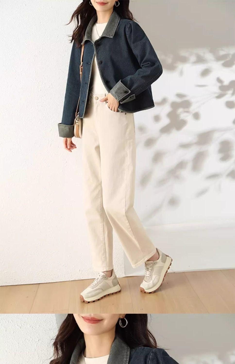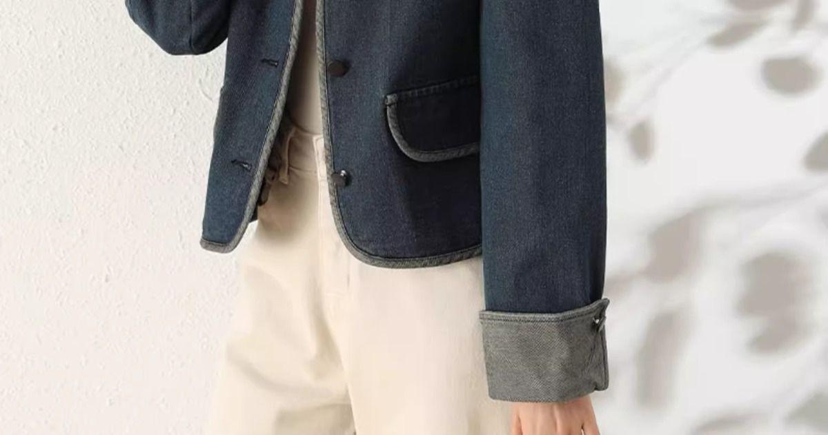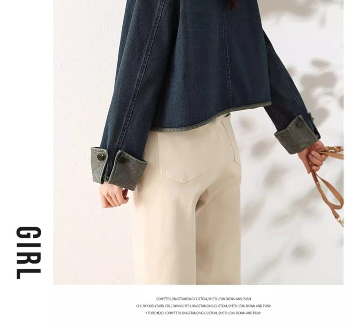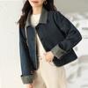 Chaqueta Solapa 2025 Top Temperamento Retro Diseño Casual Manga Larga Bloque de Color Sensación Otoñal Nuevo Estilo Chaqueta de Mezclilla Mujer