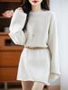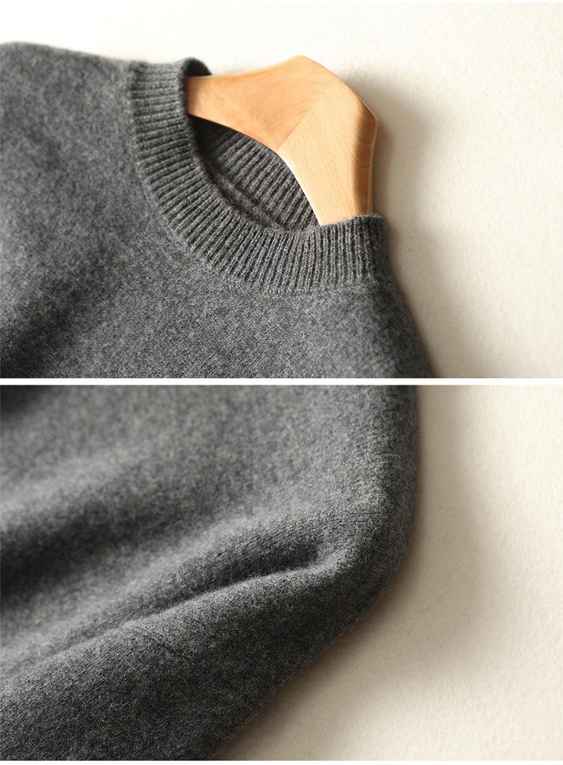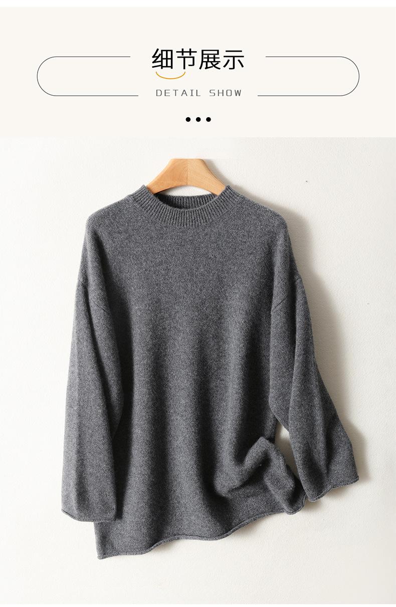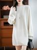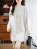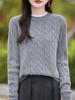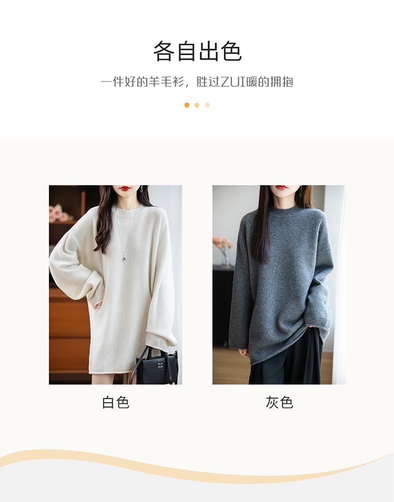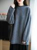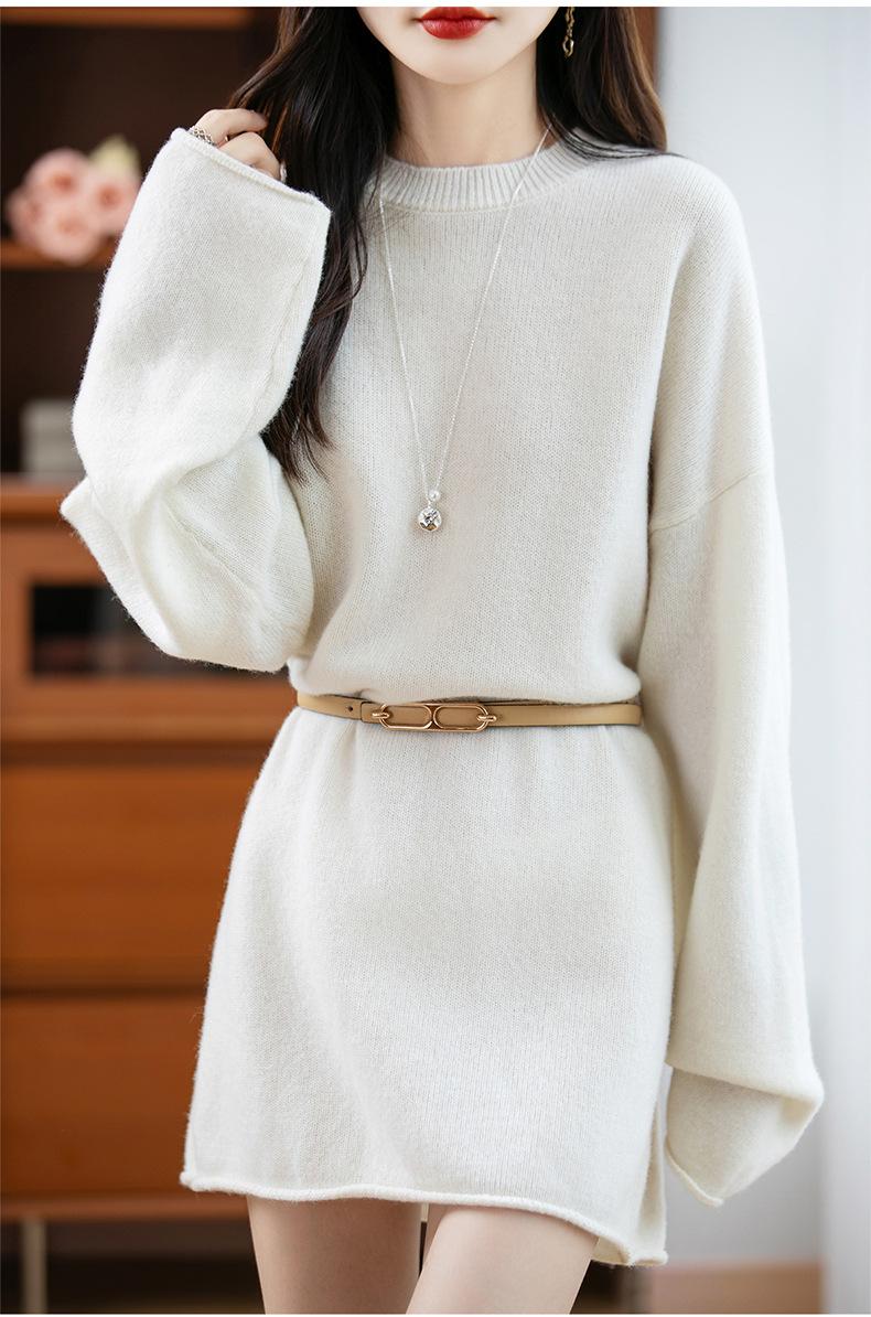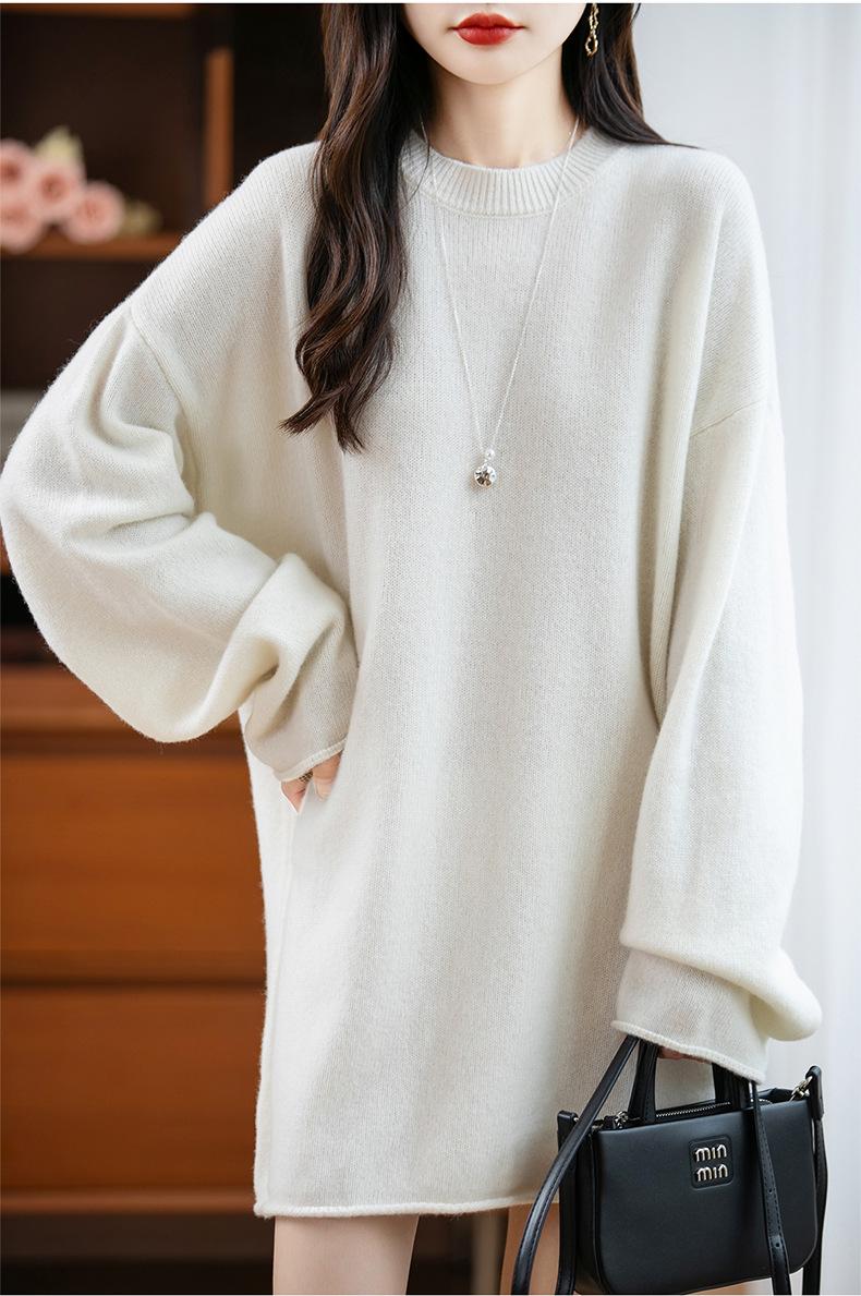 Suéter de Punto de Lana Pura Estilo Nuevo 2025 para Mujer, Jersey de Cuello Redondo, Color Sólido, Suelto Casual, Largo Medio, Suéter Básico