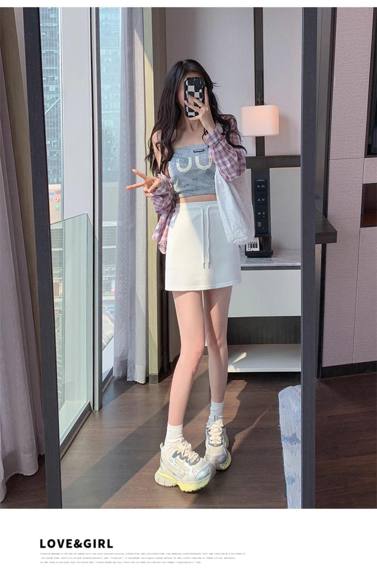 Falda Deportiva Gris de Calidad TikTok para Mujer Verano 2025 Nueva Cintura Alta Adelgazante Línea A Hot Girl Falda de Cadera Mujer