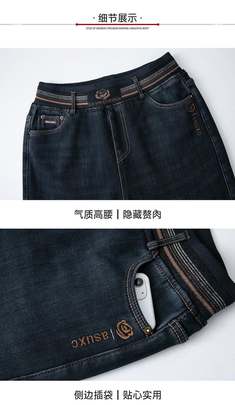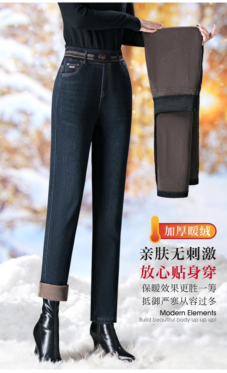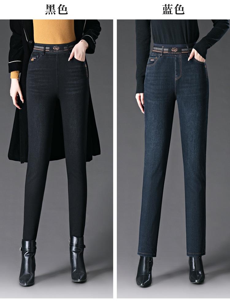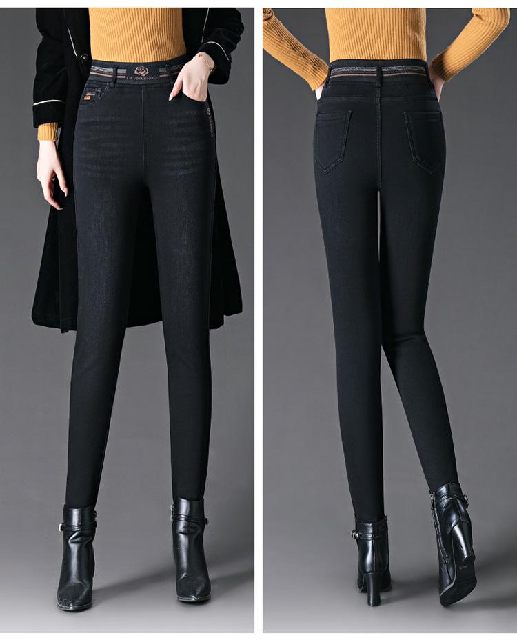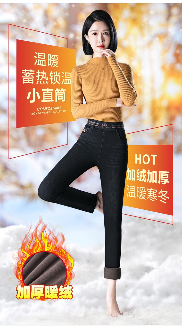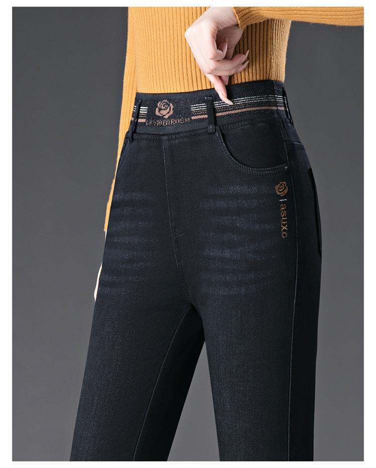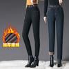 1088 Pantalones Invierno Forrado de Felpa Edad Media y Anciana Mamá Talla Grande Pierna Pequeña Mezclilla Lápiz Elásticos Skinny Gruesos Pierna Recta
