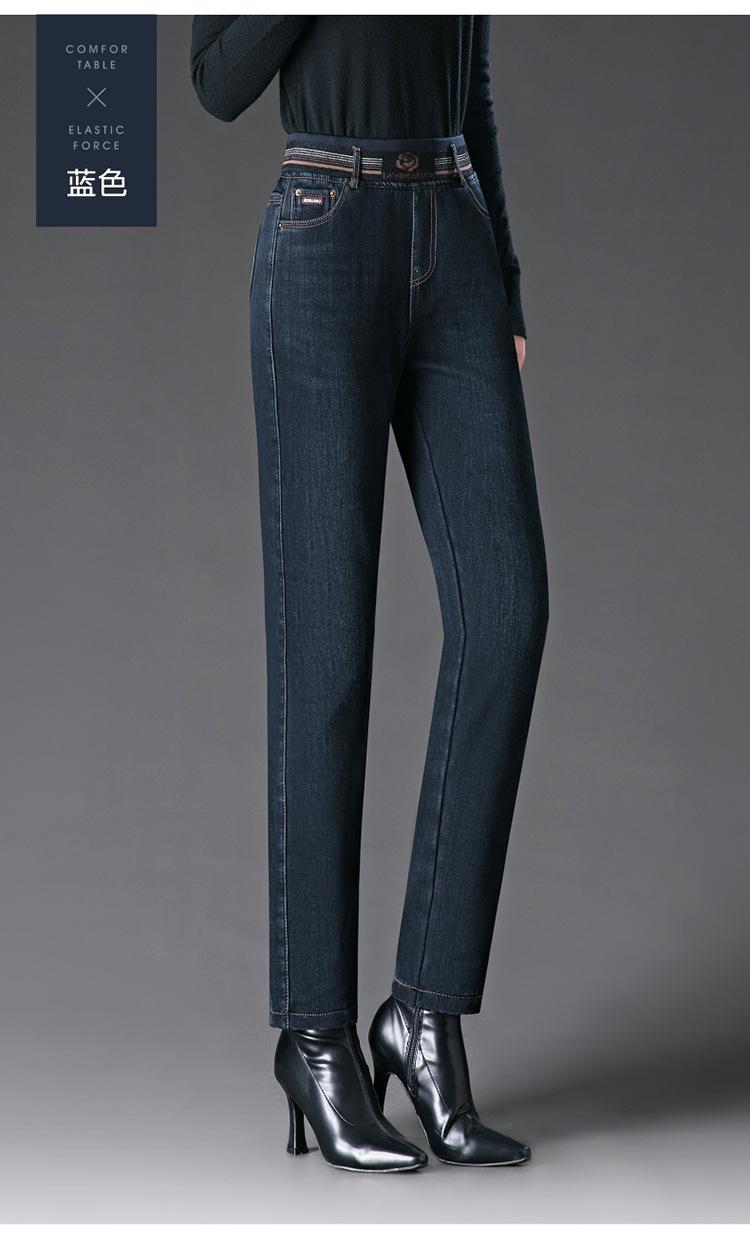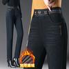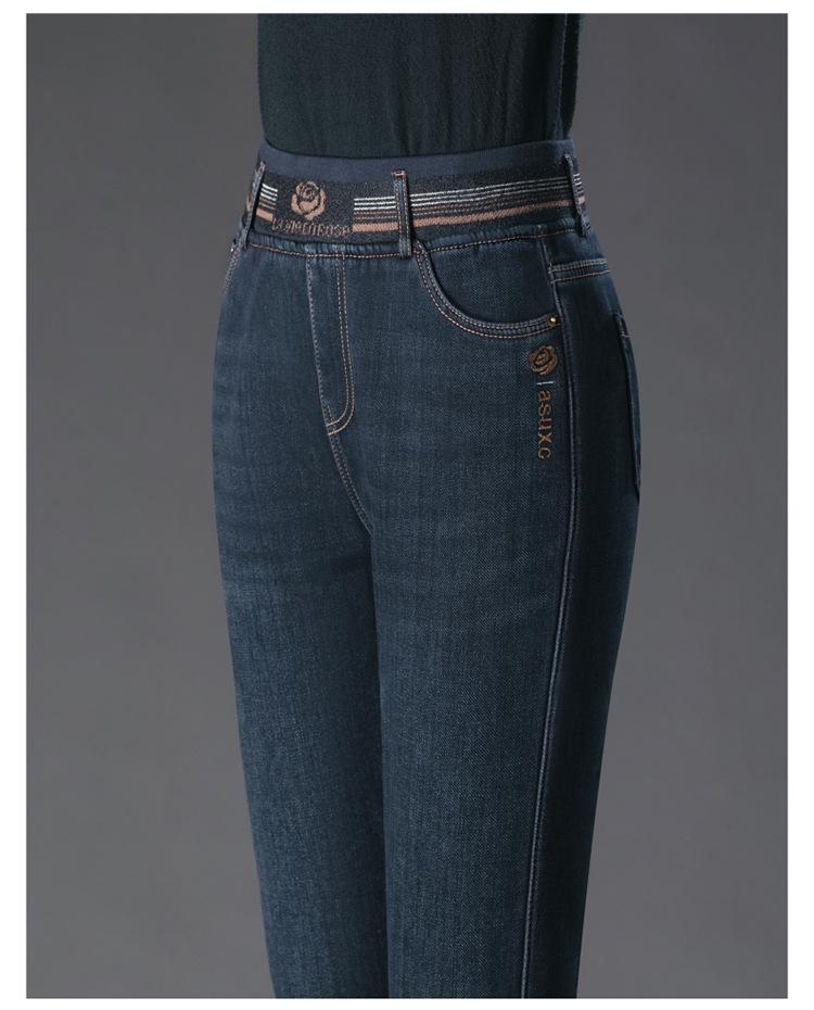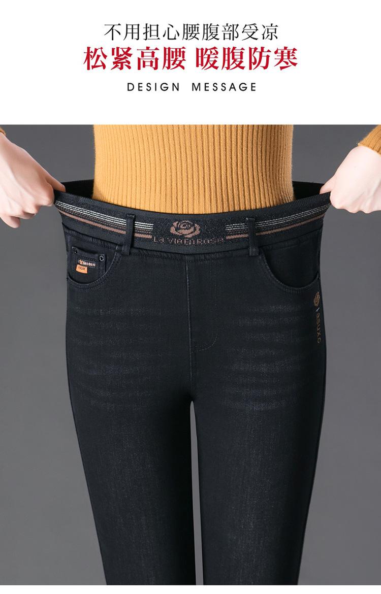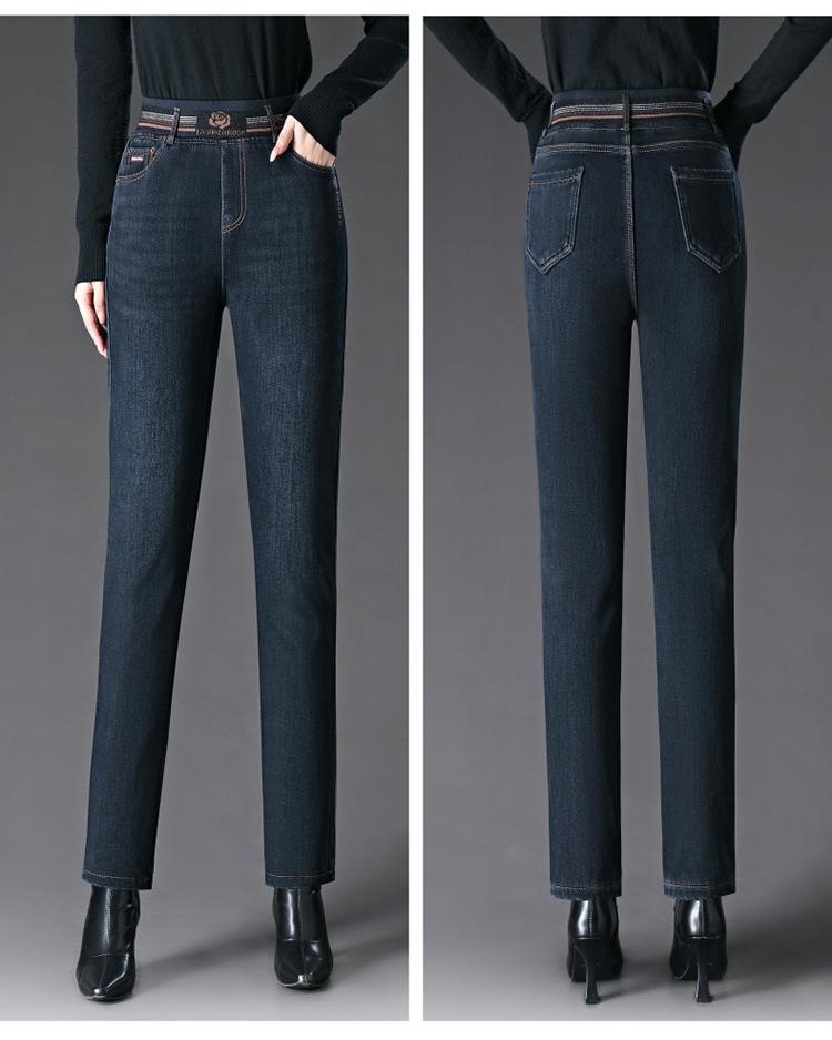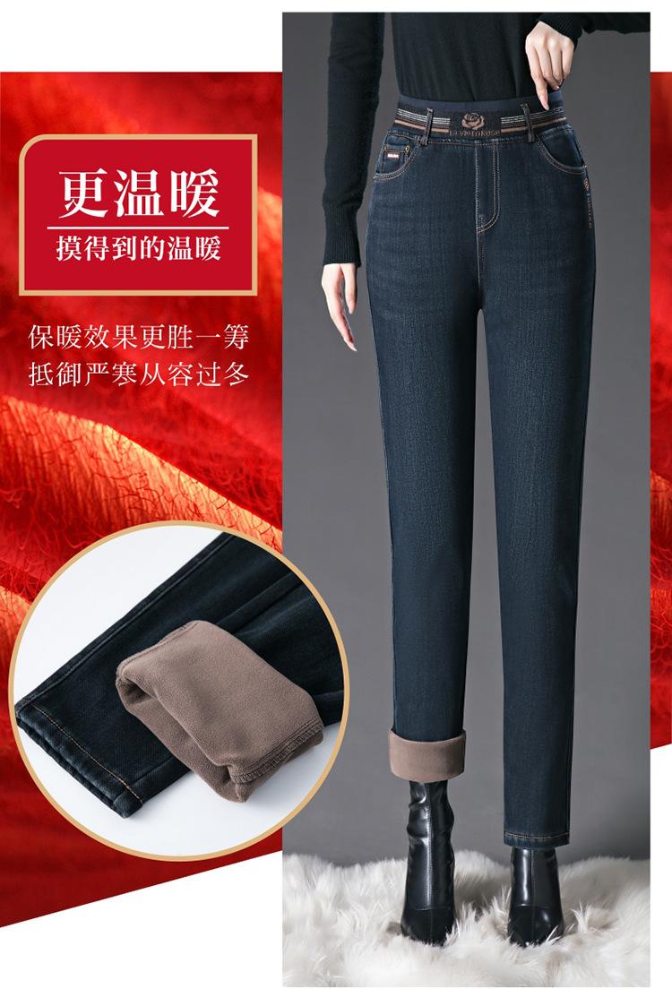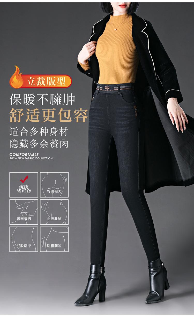 1088 Pantalones Invierno Forrado de Felpa Edad Media y Anciana Mamá Talla Grande Pierna Pequeña Mezclilla Lápiz Elásticos Skinny Gruesos Pierna Recta