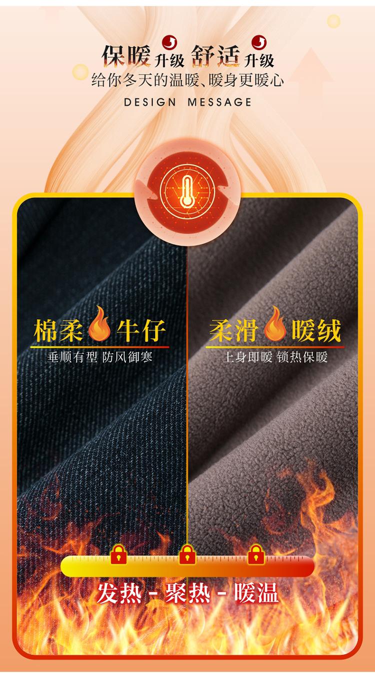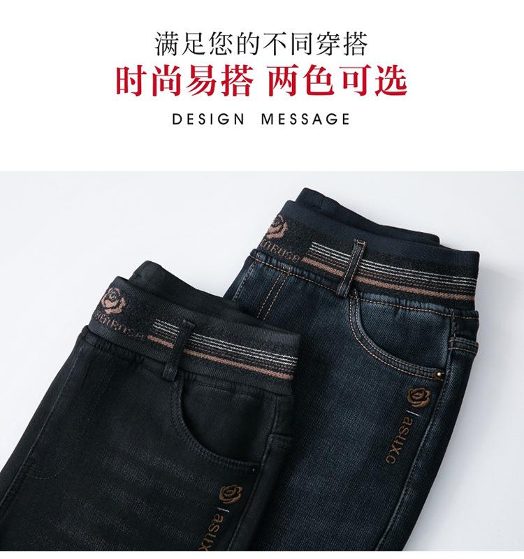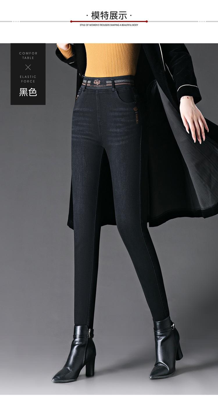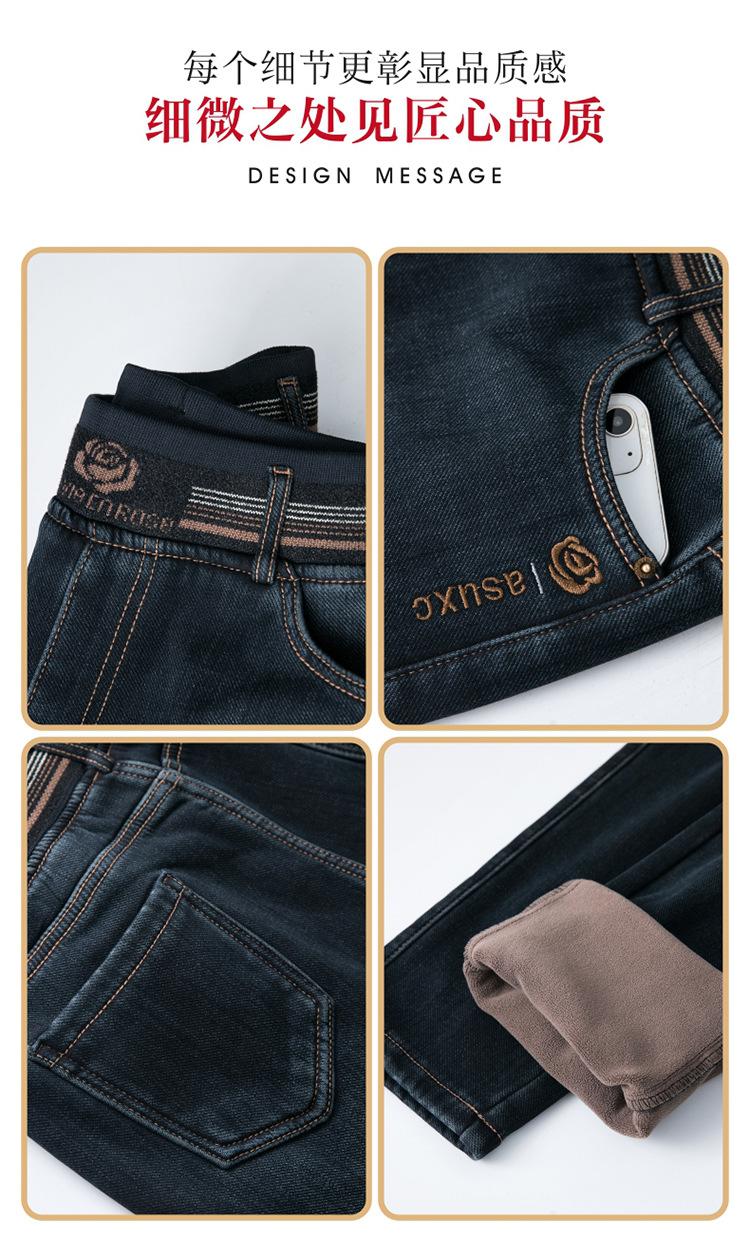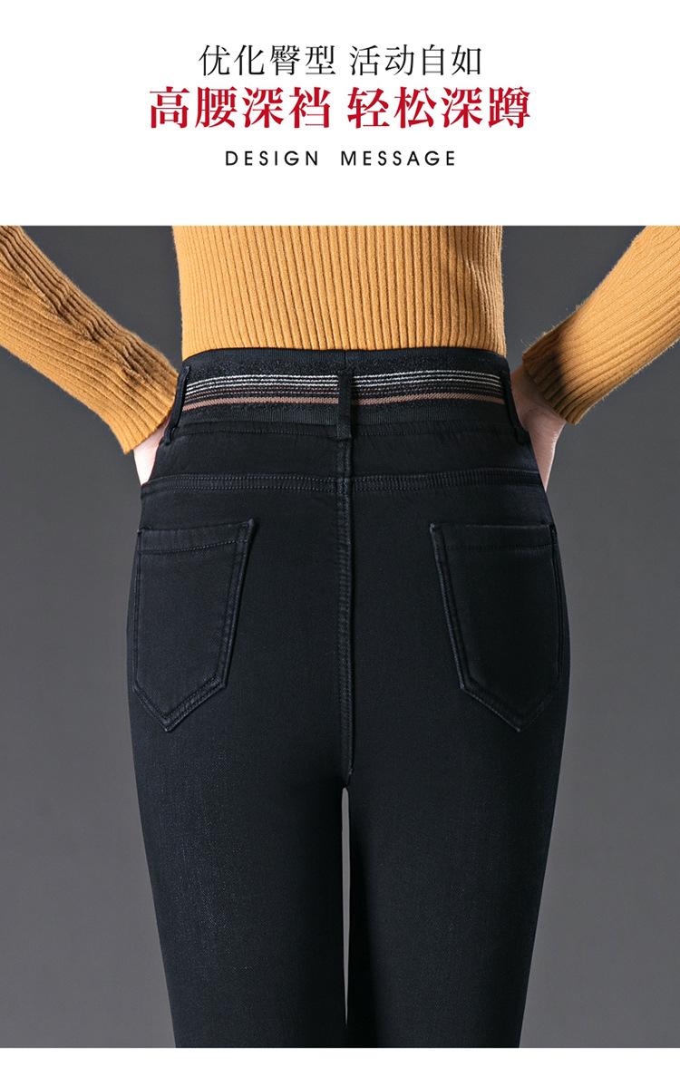 1088 Pantalones Invierno Forrado de Felpa Edad Media y Anciana Mamá Talla Grande Pierna Pequeña Mezclilla Lápiz Elásticos Skinny Gruesos Pierna Recta