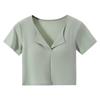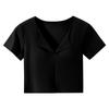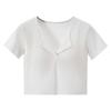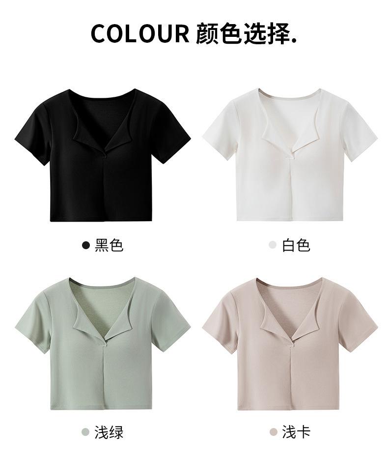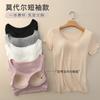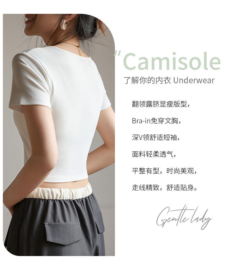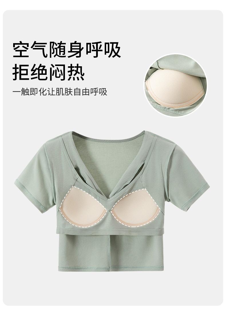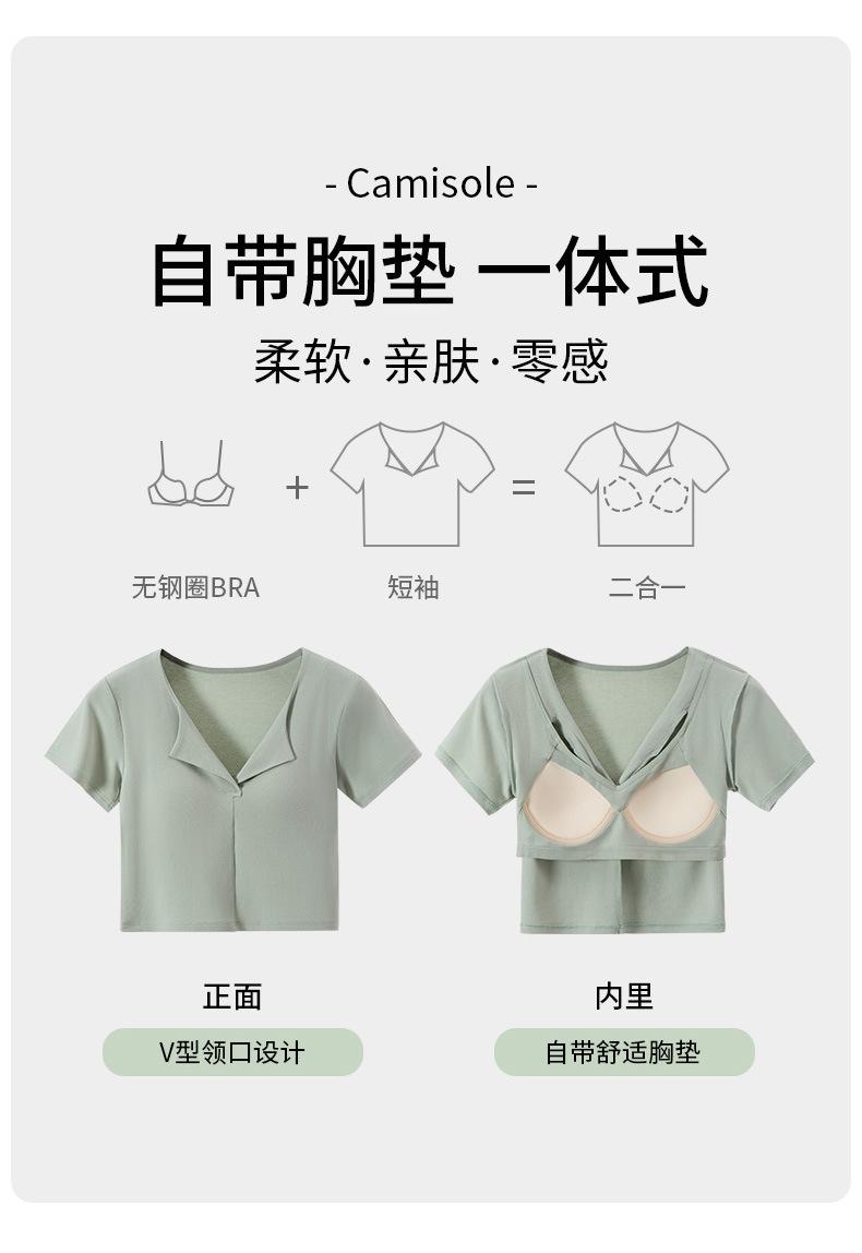 Playera de Manga Corta para Mujer Verano con Almohadilla en el Pecho para Usar Debajo o Encima Top Cuello en V Cintura Ajustada Adelgazante Sujetador sin Aros Anti-luz