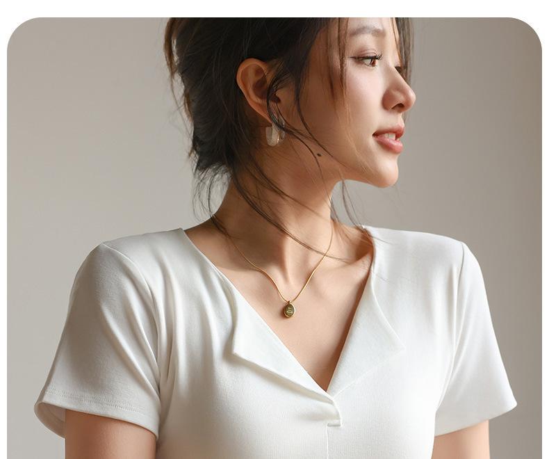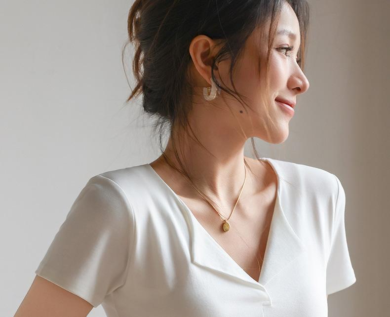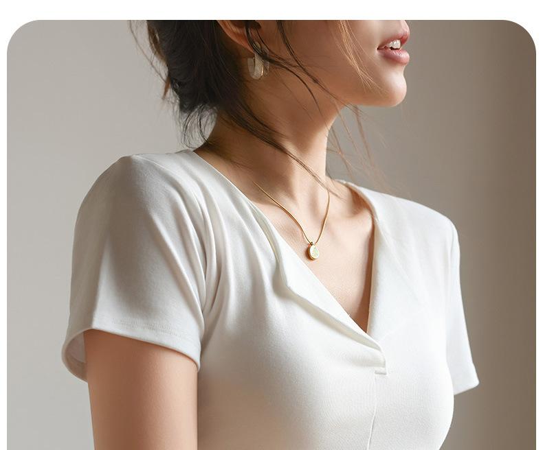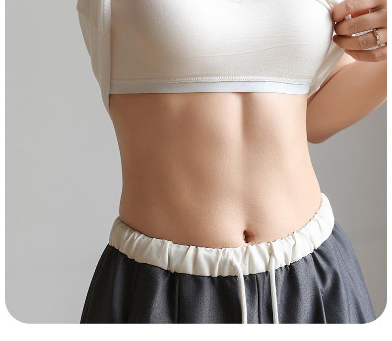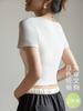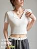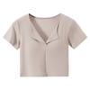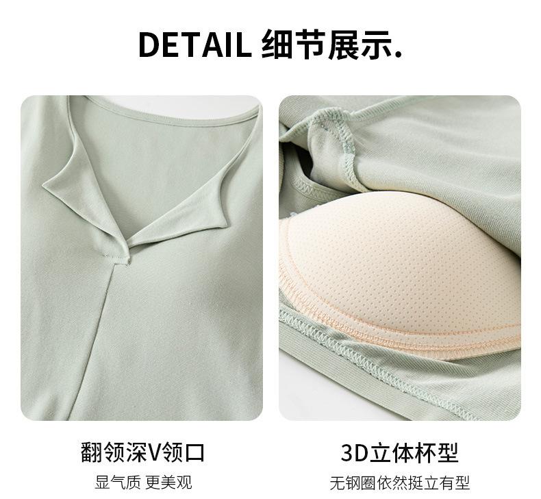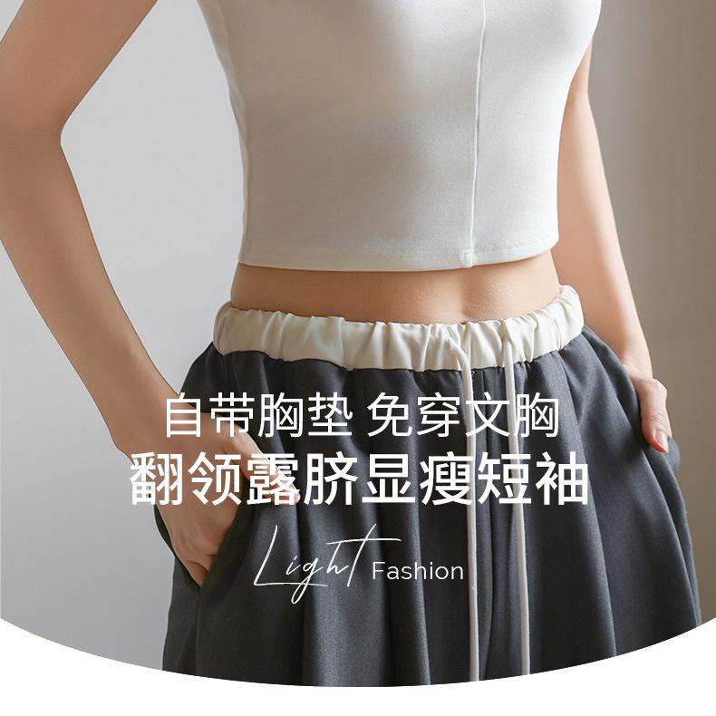 Playera de Manga Corta para Mujer Verano con Almohadilla en el Pecho para Usar Debajo o Encima Top Cuello en V Cintura Ajustada Adelgazante Sujetador sin Aros Anti-luz