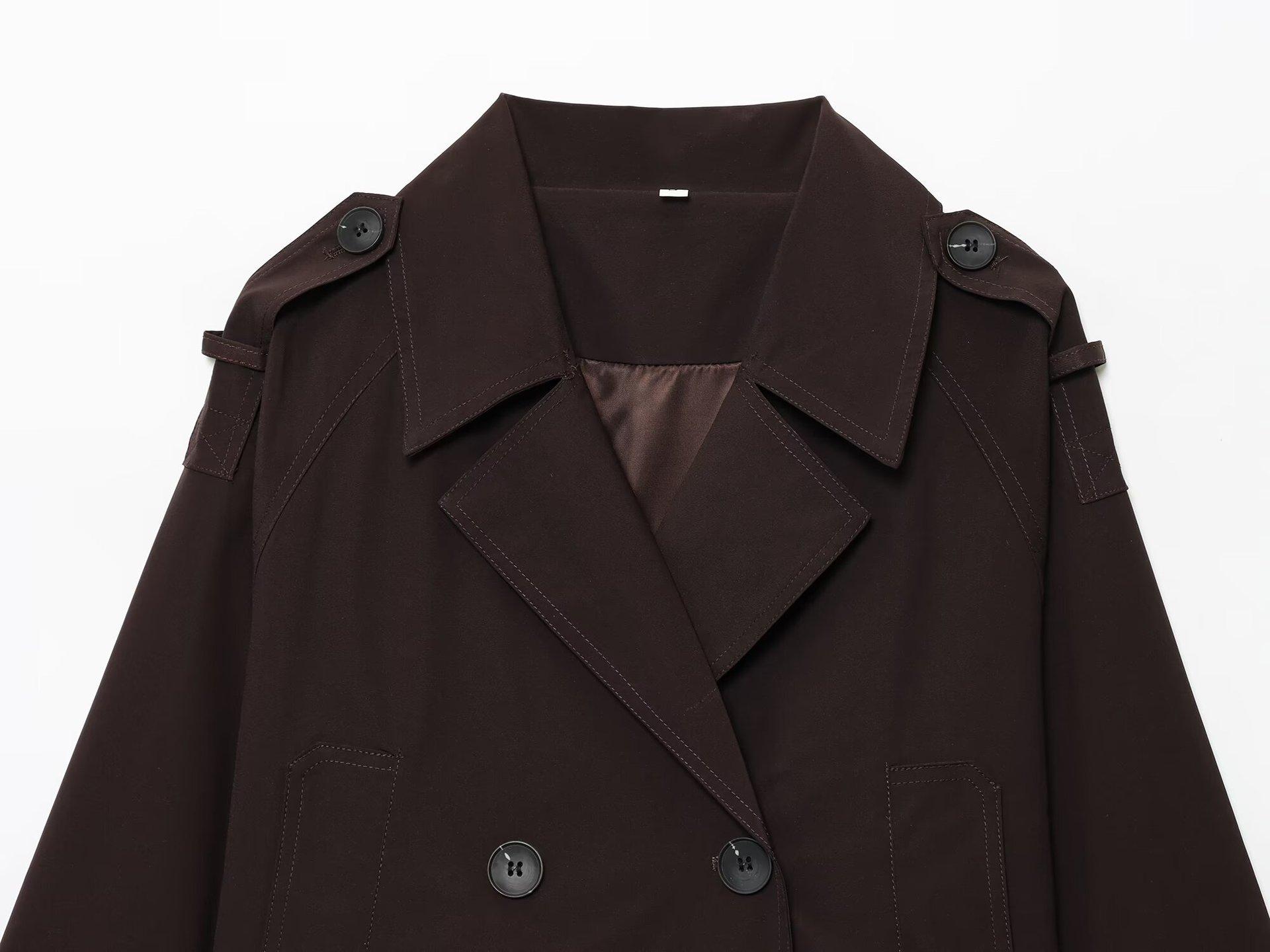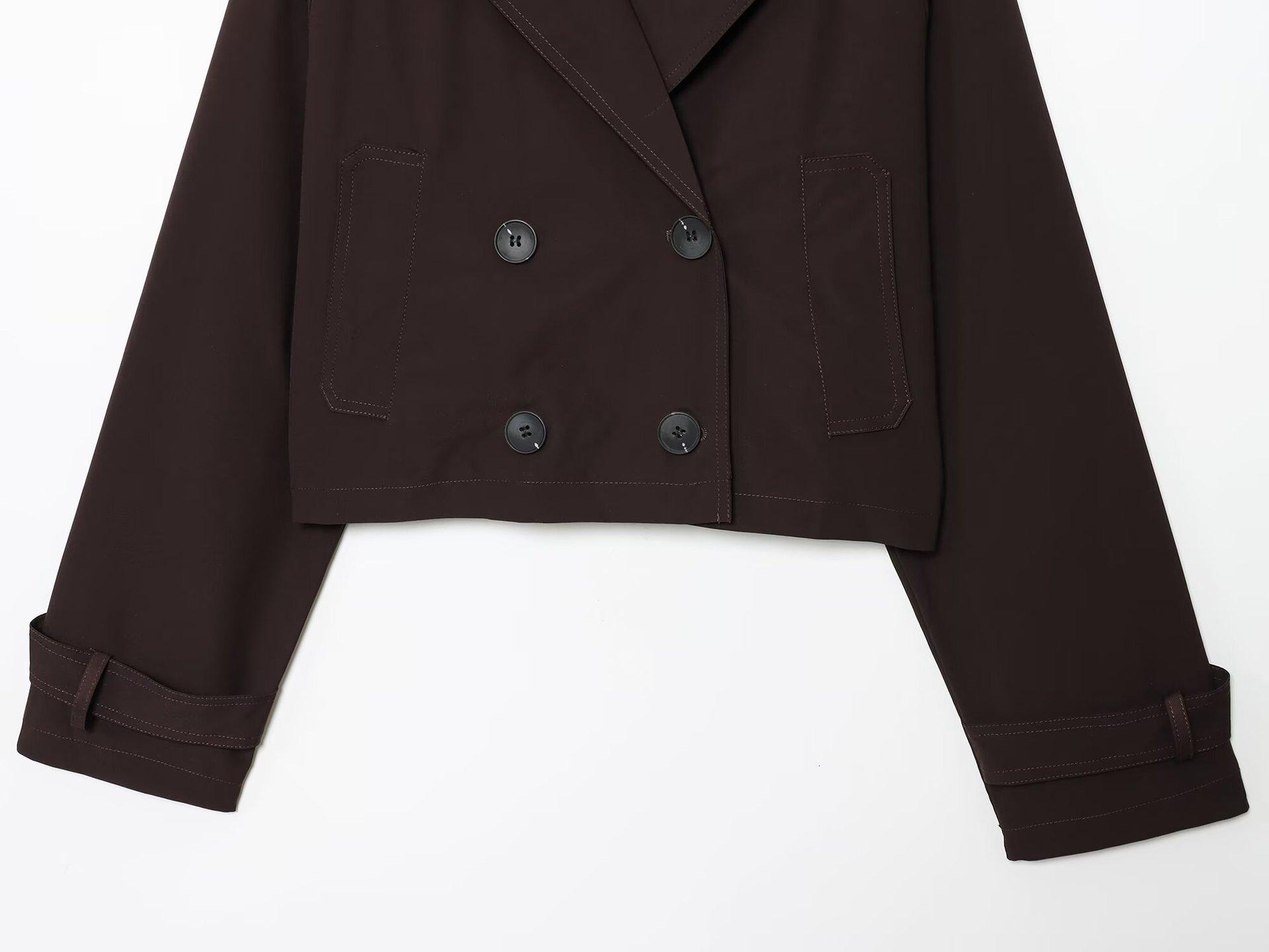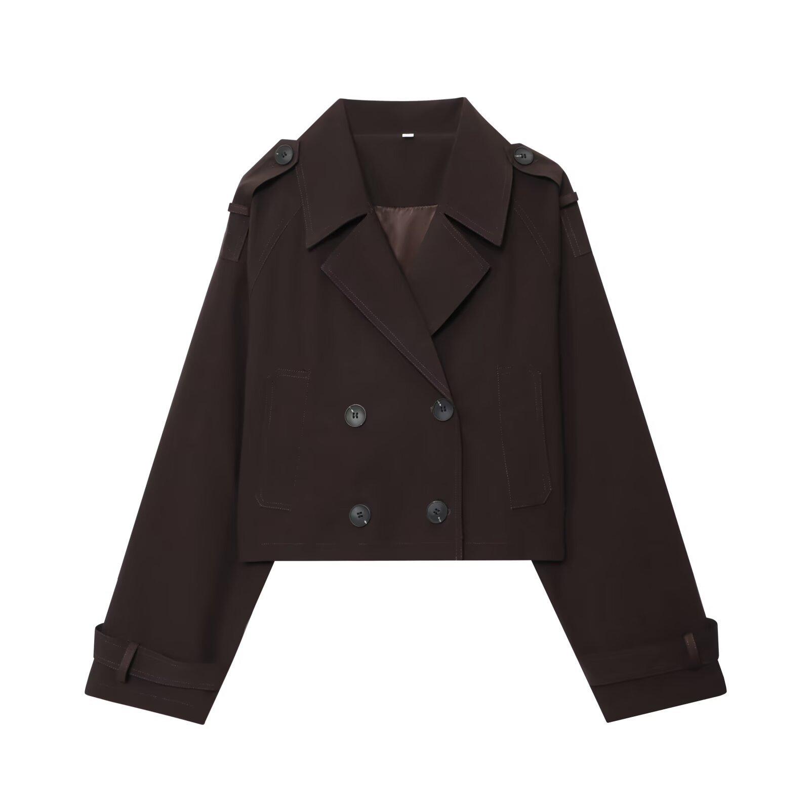Abrigo Trench Corto de Doble Botonadura Casual con Sentido del Diseño Versátil de Moda con Temperamento Ropa Nueva de Otoño 2025 para Mujer Transfronterizo Europeo y Americano