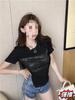 Camiseta de Encaje Crochet Hueca Estilo Europeo Moderna Única Top de Malla para Mujer, Nuevo Otoño Estilo Francés, Top Adelgazante en Capas
